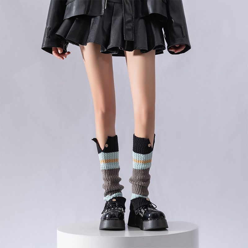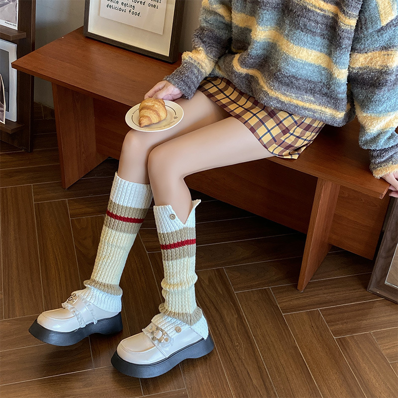 Maillard 컬러 스트라이프 콘트라스트 다리 양말 가을과 겨울 착용 JK 일본식 올 매치 버튼 스플릿 스택 양말스토어 가기