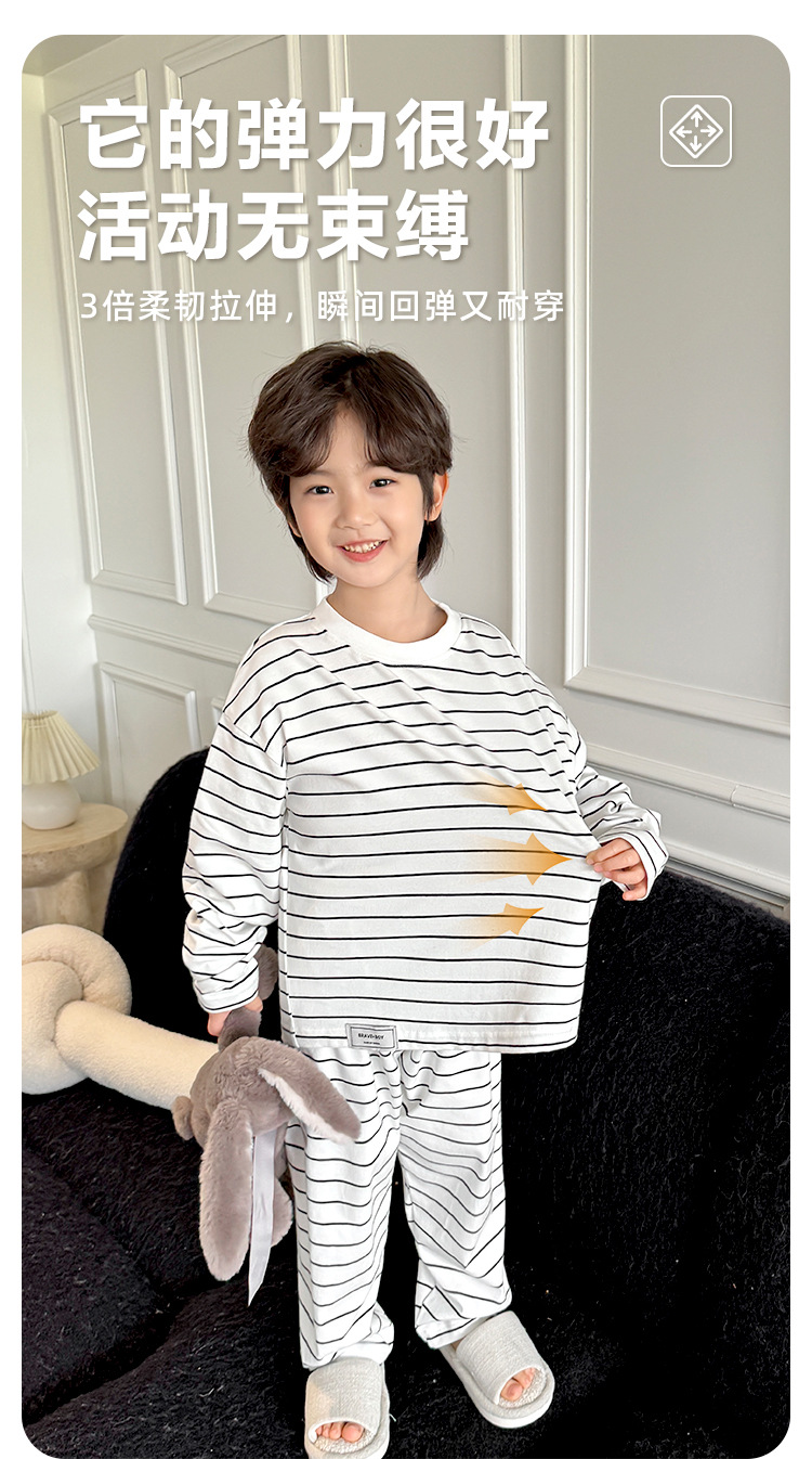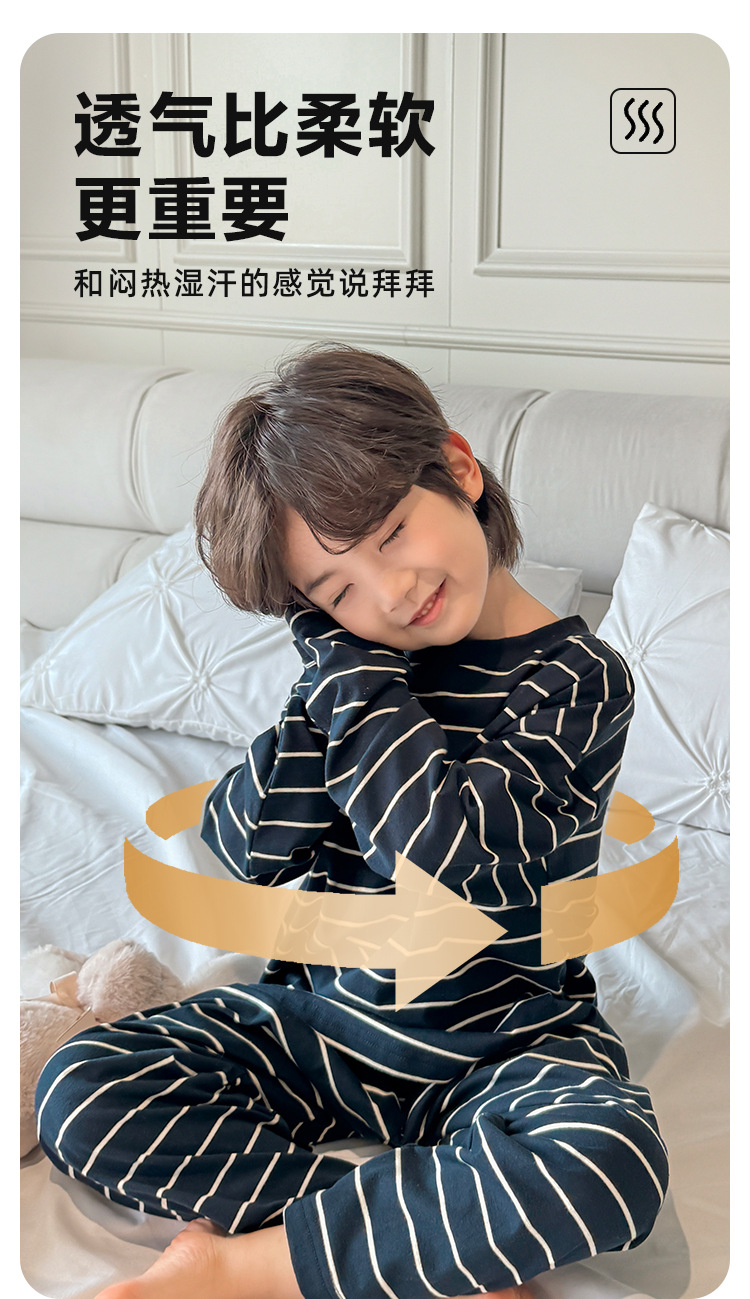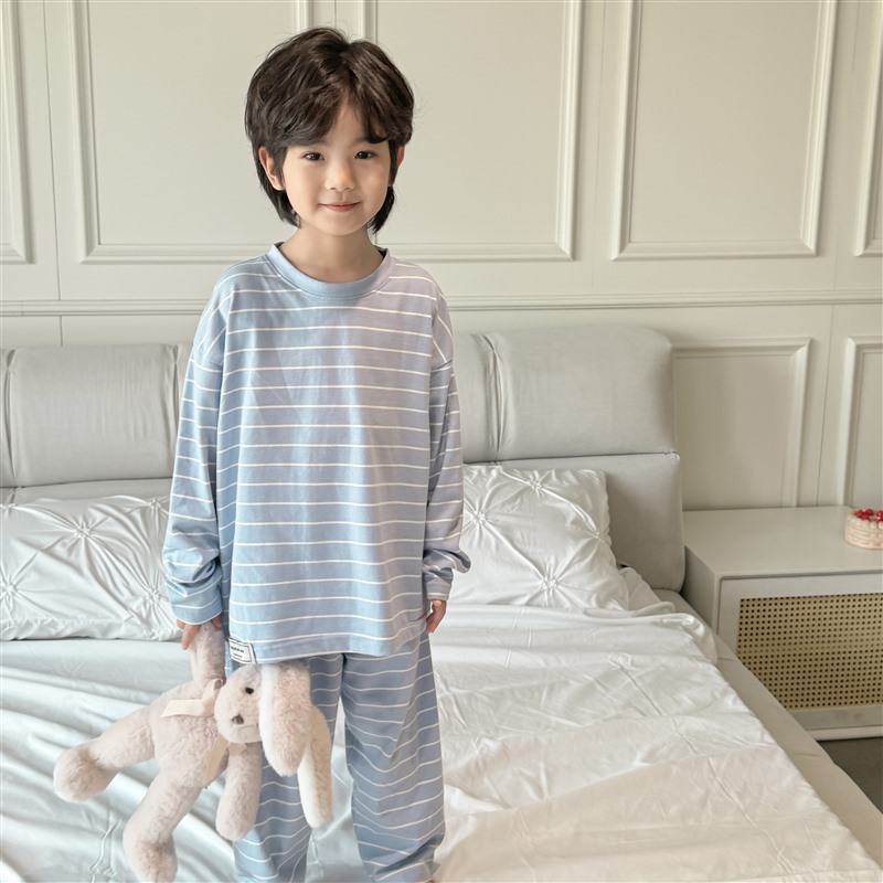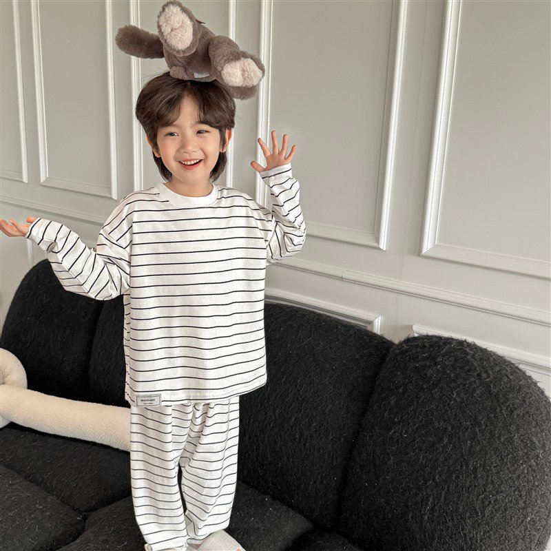 해마가족 2025 가을 겨울 신상 남아 스트라이프 순면 홈웨어 세트 가을옷 가을바지 보온 내의 아동복