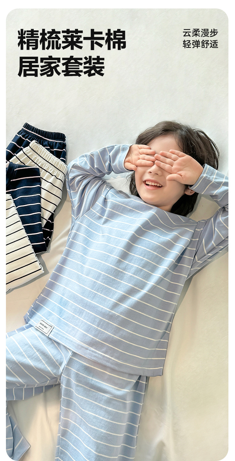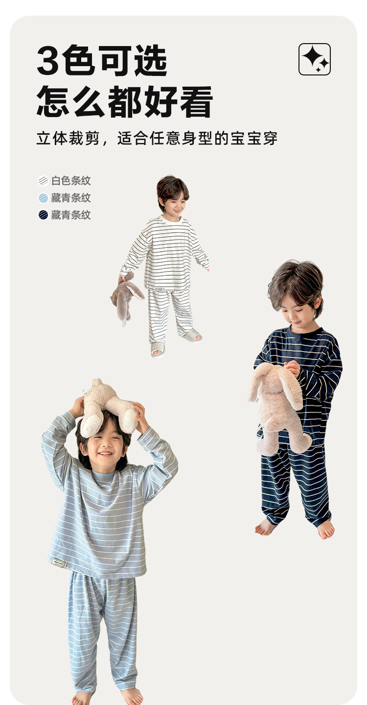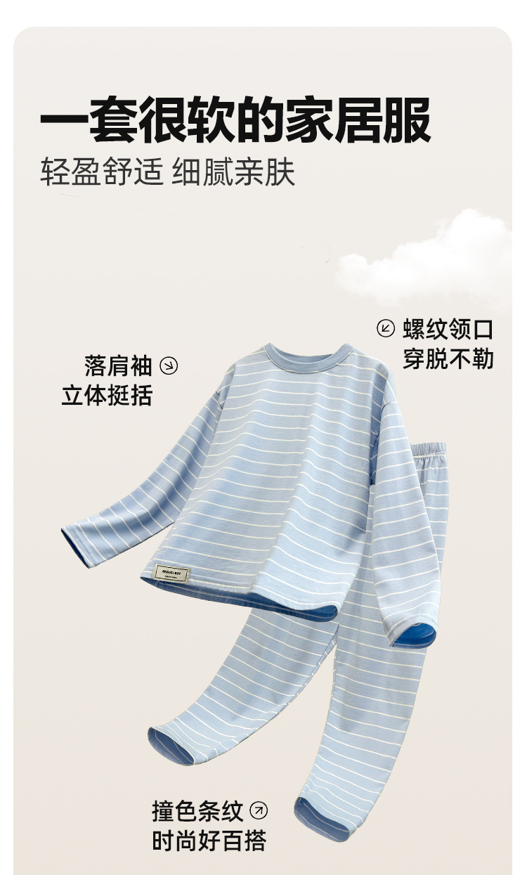 해마가족 2025 가을 겨울 신상 남아 스트라이프 순면 홈웨어 세트 가을옷 가을바지 보온 내의 아동복