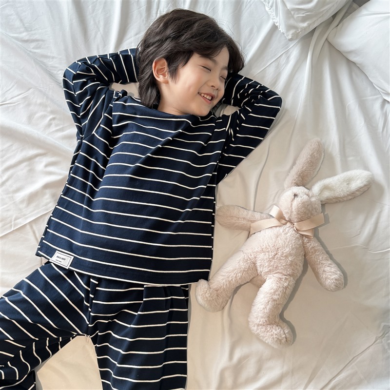 해마가족 2025 가을 겨울 신상 남아 스트라이프 순면 홈웨어 세트 가을옷 가을바지 보온 내의 아동복스토어 가기