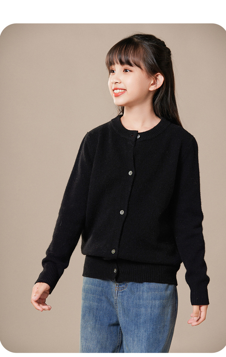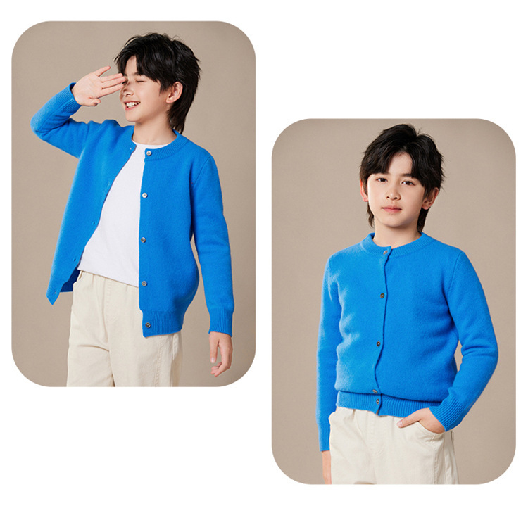가을과 겨울 새로운 어린이 니트 울 스웨터 크루 넥 카디건 남자와 여자 같은 스웨터 큰 어린이 코트 캐시미어 스웨터스토어 가기