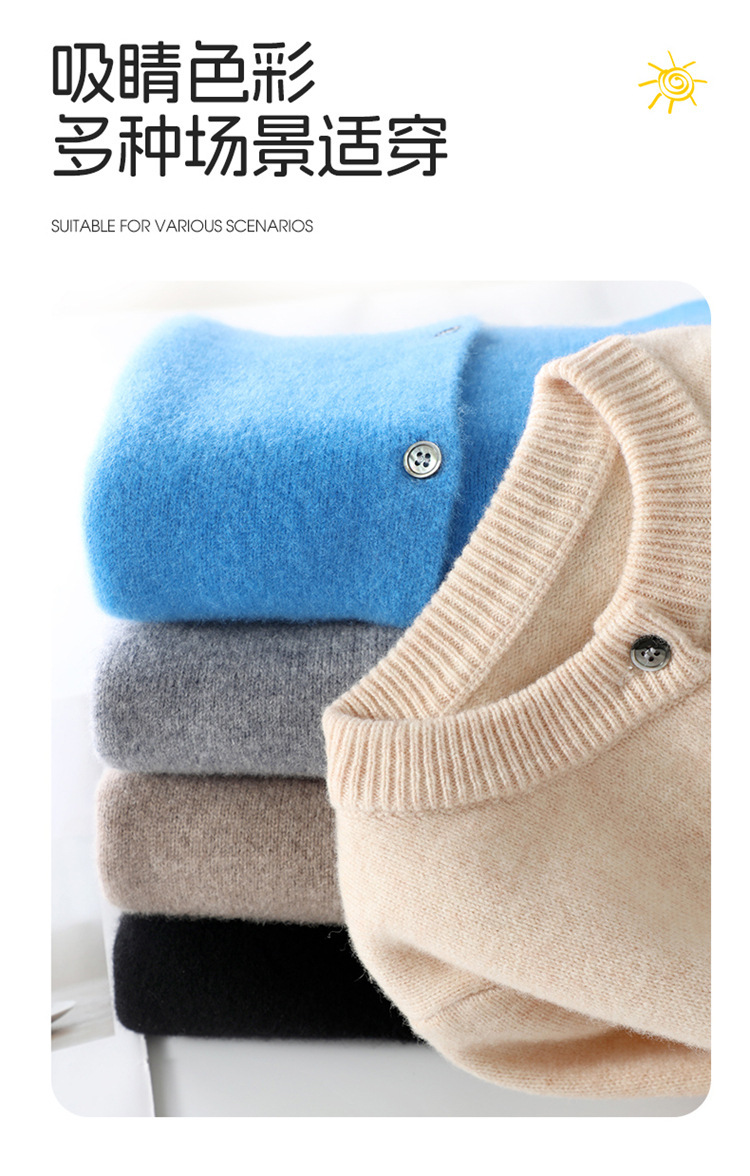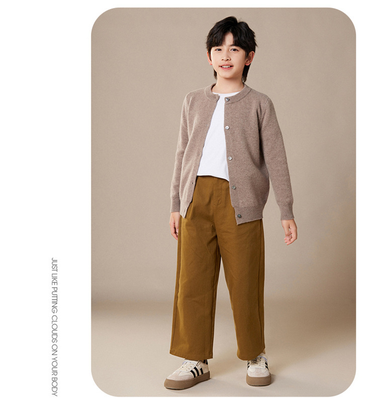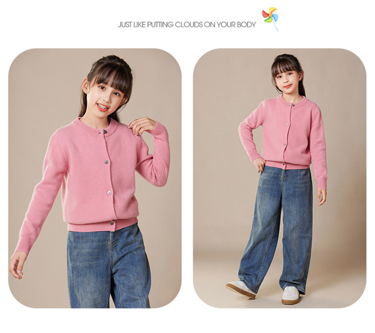 秋冬新款儿童针织羊毛衫圆领开衫男女童装毛衣中大童男外套羊绒衫
