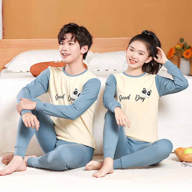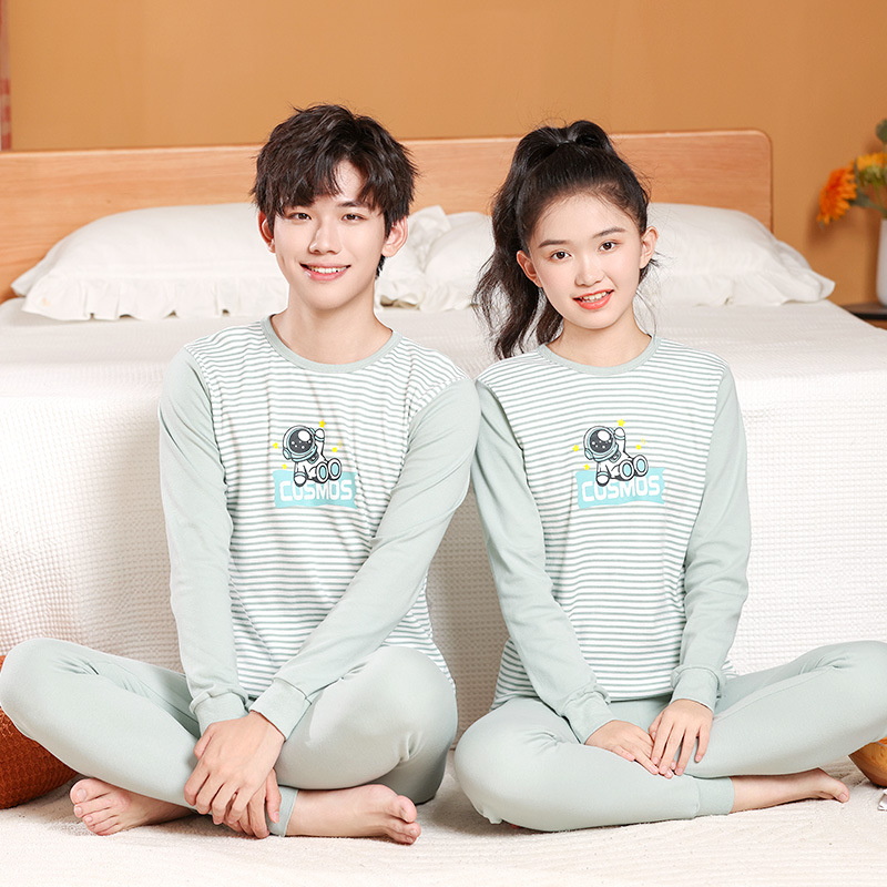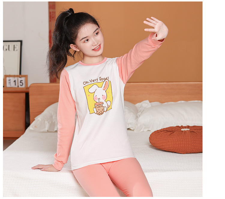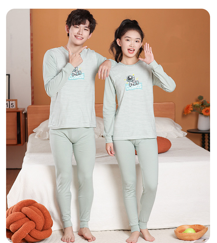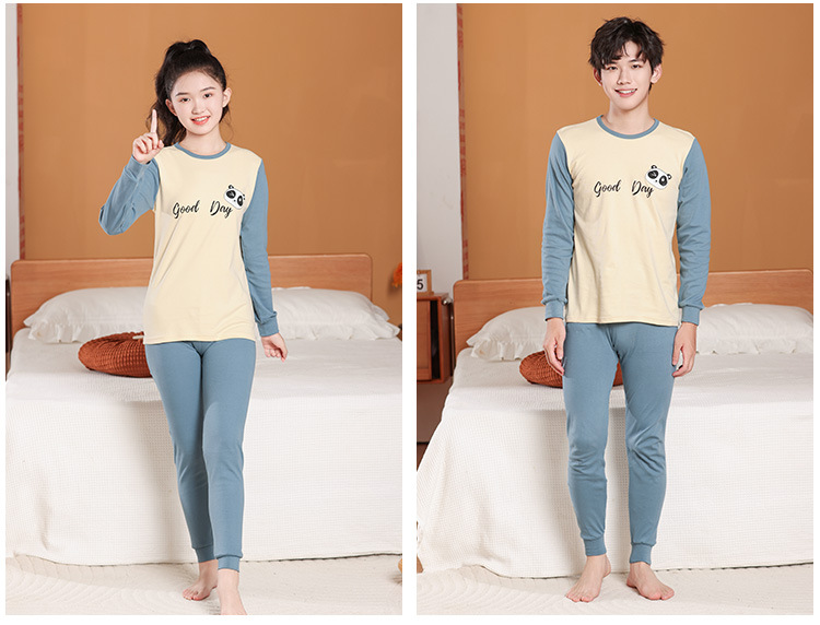 2024 가을과 겨울 어린이 면화 홈 의류 파자마 큰 소년과 소녀 만화 가을 의류 가을 바지 기본 속옷 세트