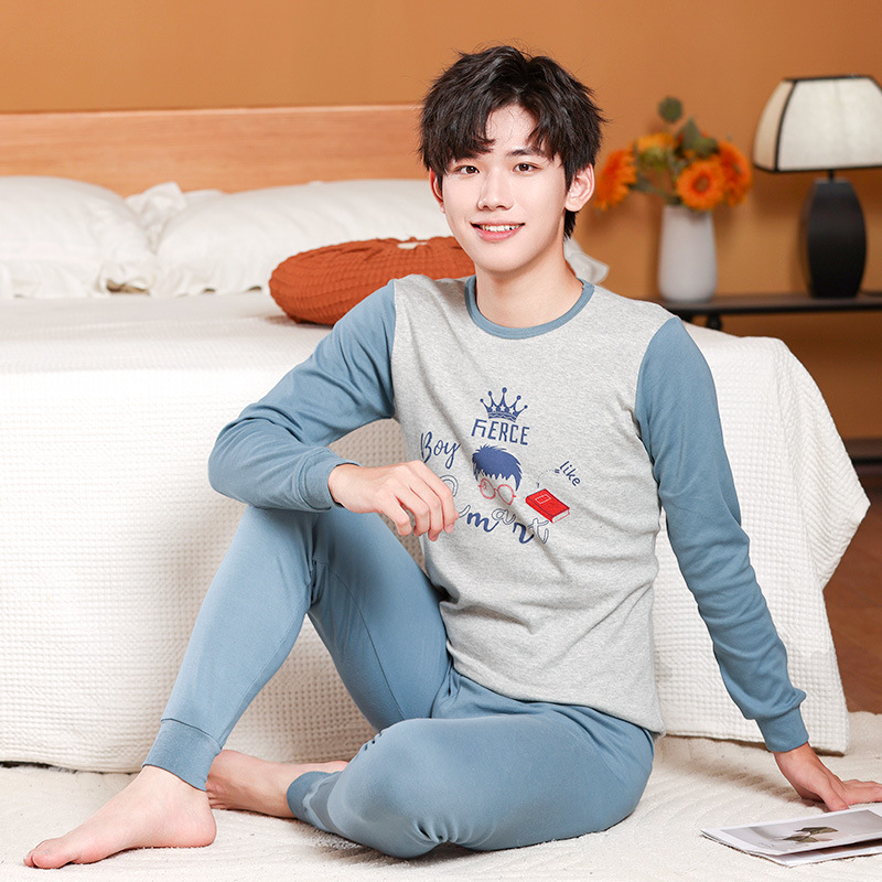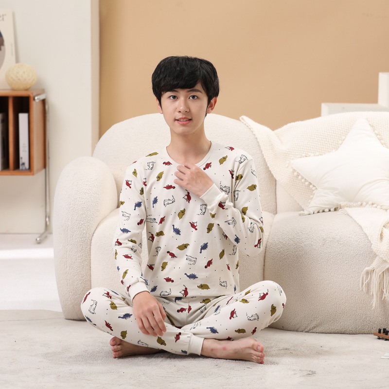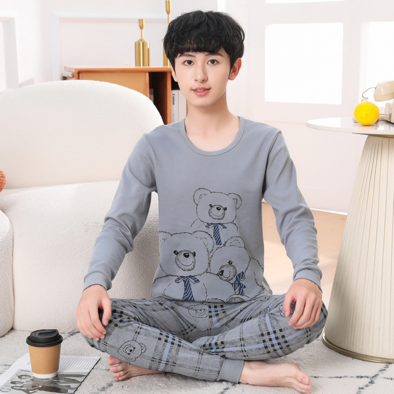 2024 가을과 겨울 어린이 면화 홈 의류 파자마 큰 소년과 소녀 만화 가을 의류 가을 바지 기본 속옷 세트스토어 가기