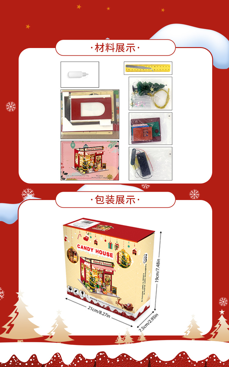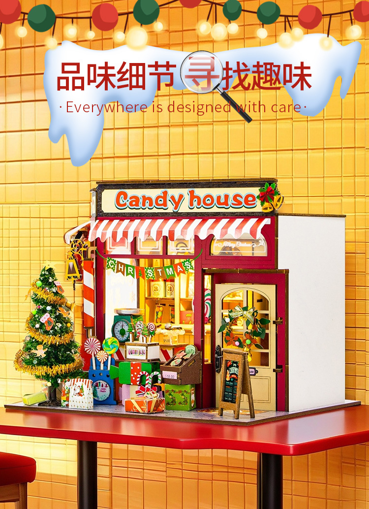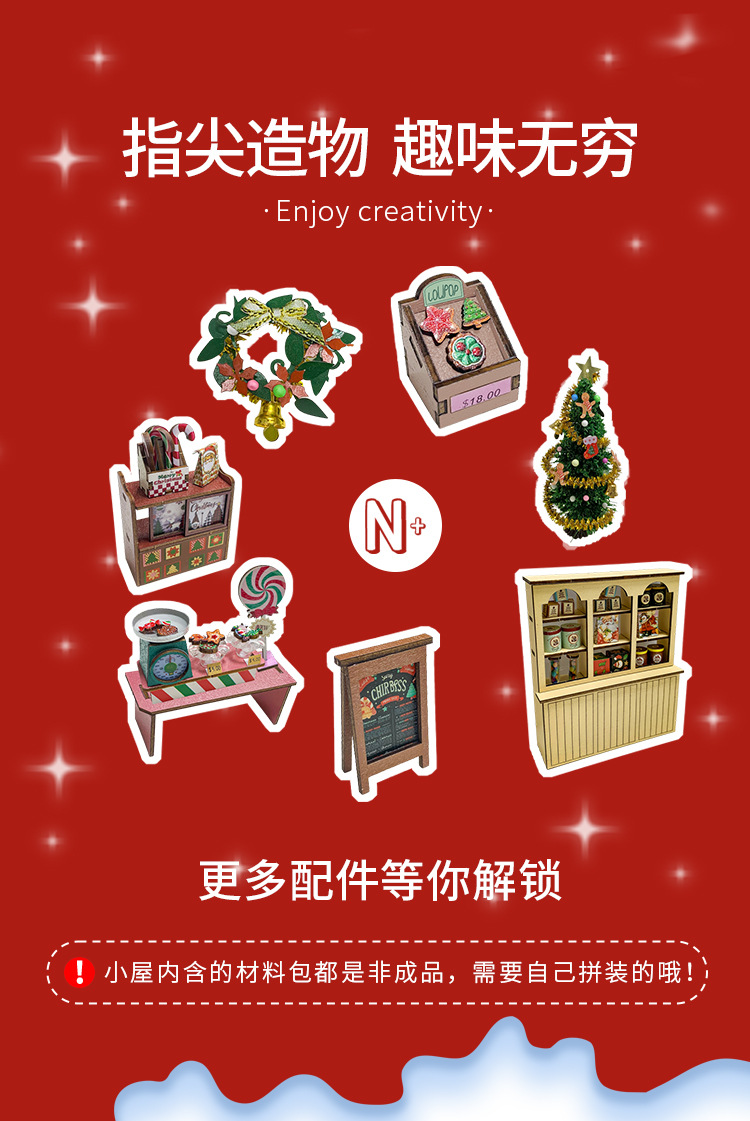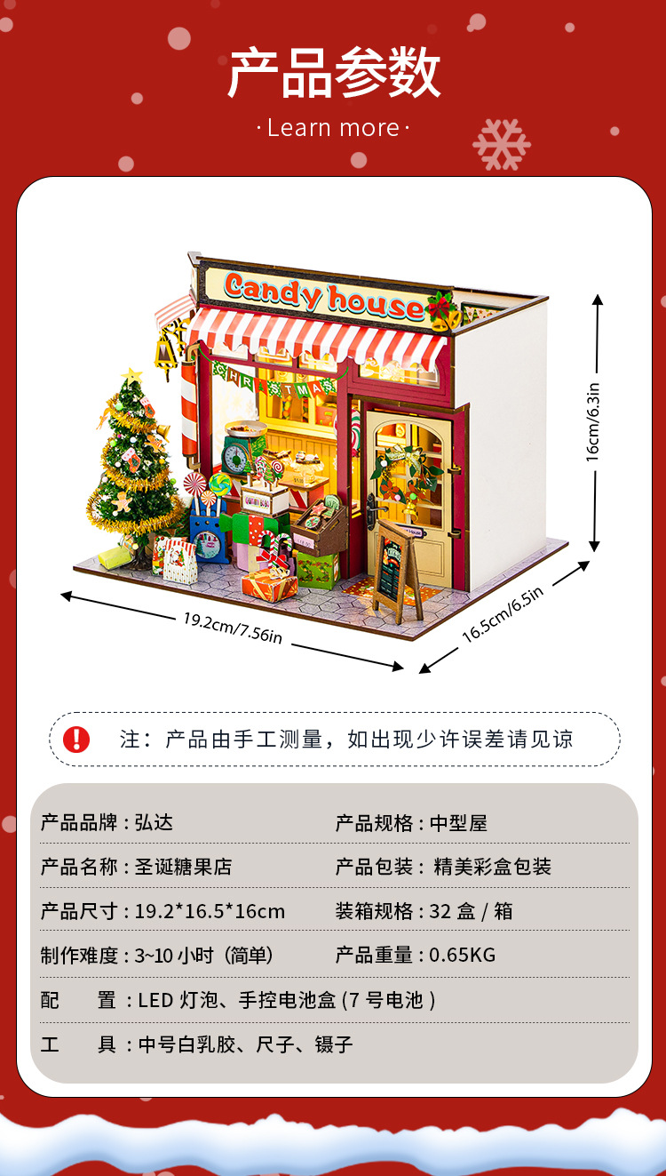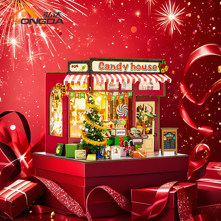 홍다 DIY 목조 오두막 크리스마스 선물 홈 장식 3D 퍼즐 미니어처 모델 전자상거래스토어 가기