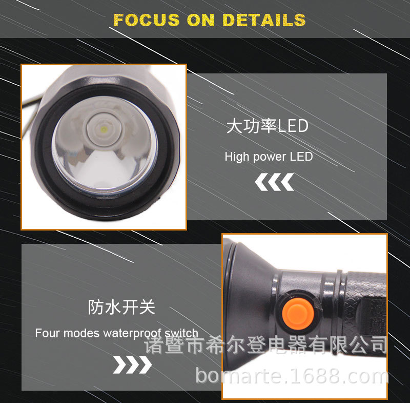 Beaume LED 방수 방폭 손전등 강한 빛 긴 배터리 수명 리튬 배터리 충전 순찰 야외 조명 휴대용스토어 가기