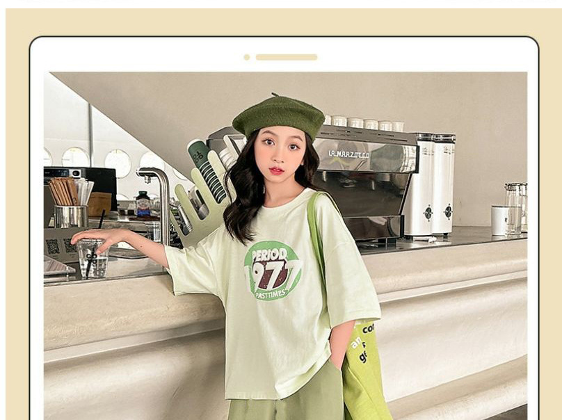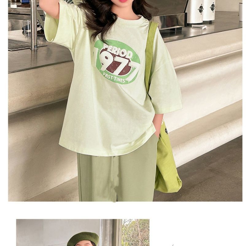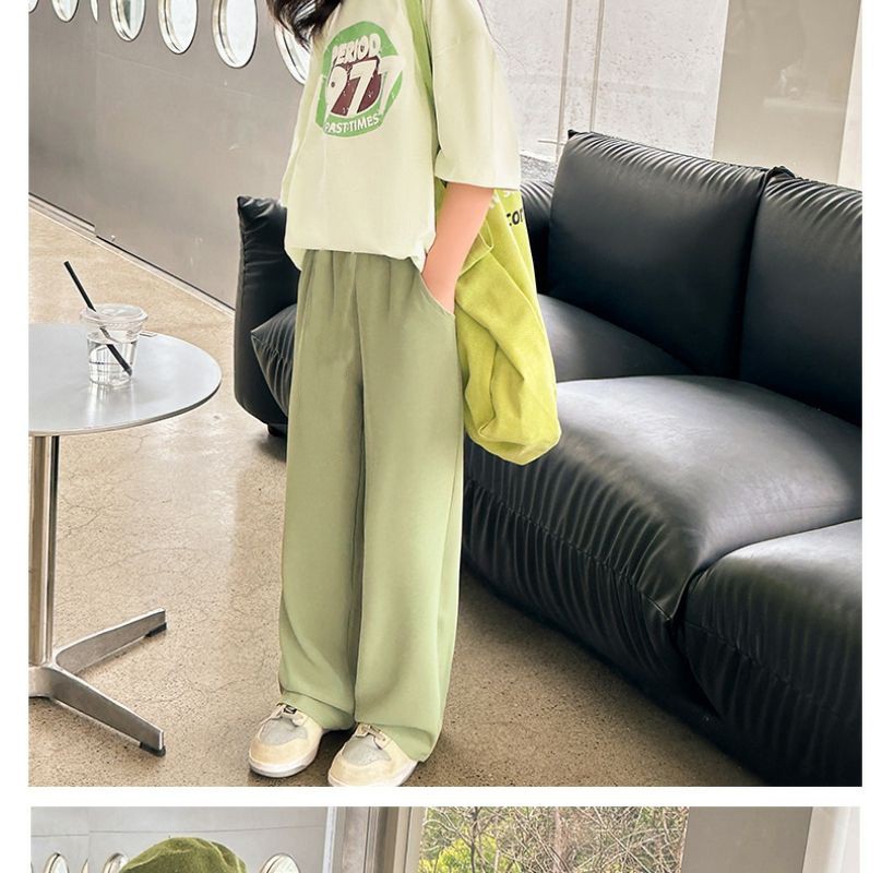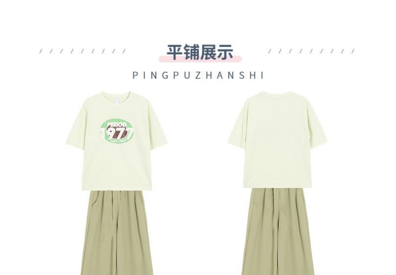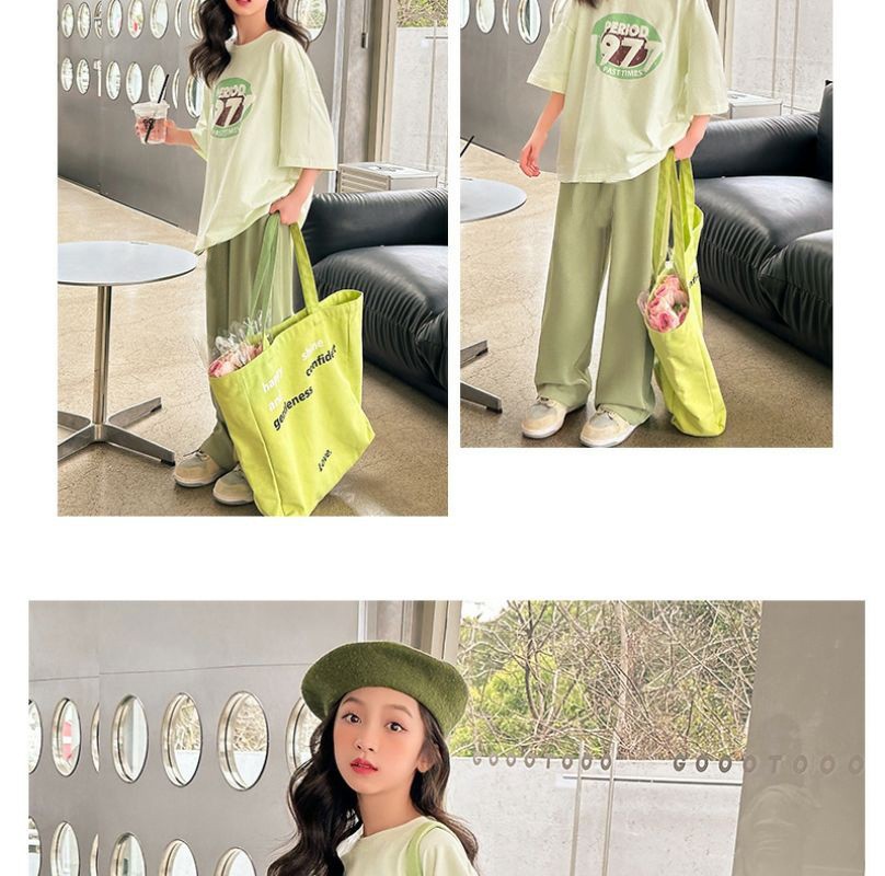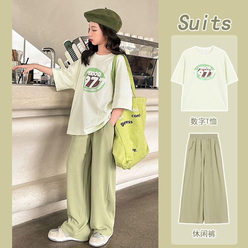 여름 아동 패션 트렌디 캐주얼 반팔 양복 여아 디지털 반팔 티셔츠 스트레이트 와이드 팬츠 투피스 세트스토어 가기