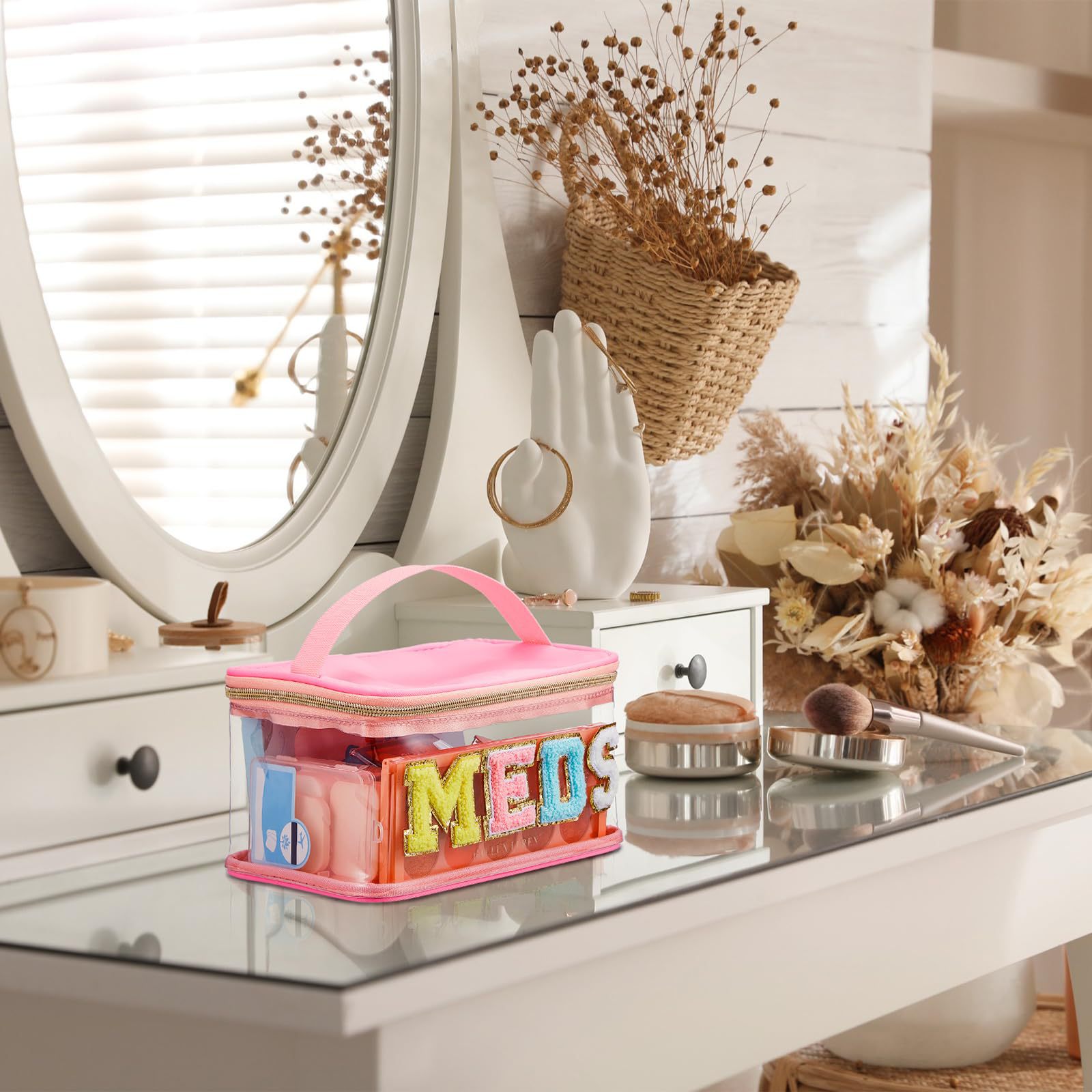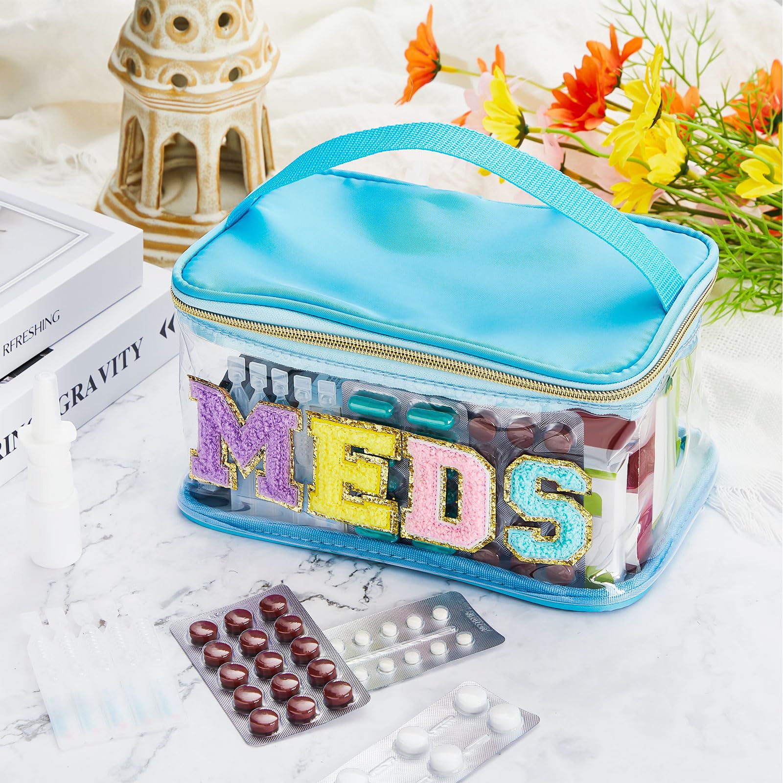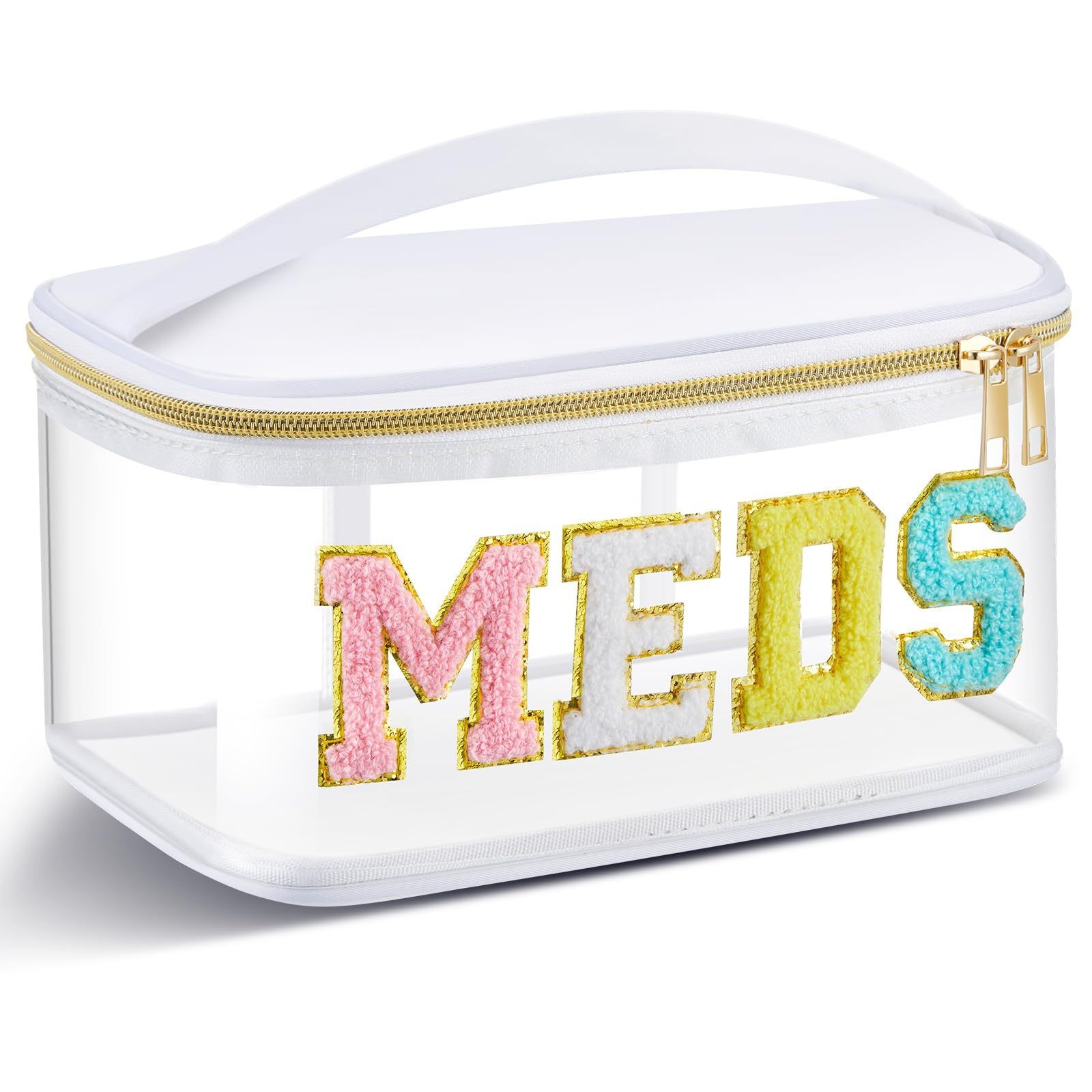아마존 크로스보더 PVC 투명 MEDS 약품 상자 자수 문자 화장품 가방 휴대용 수납 가방 여행 세면도구 가방스토어 가기