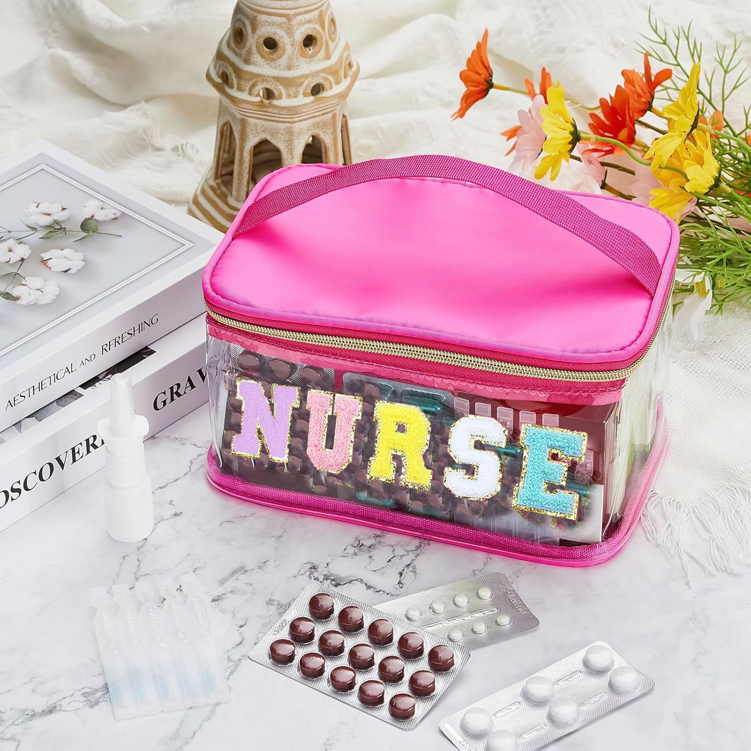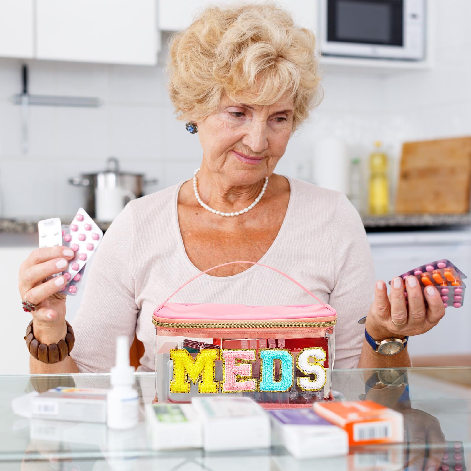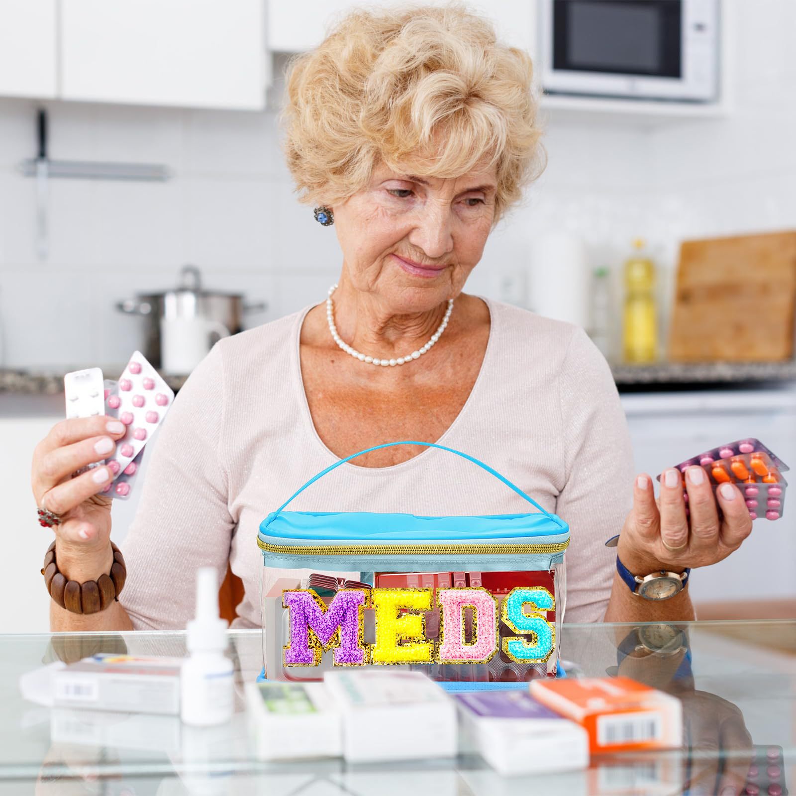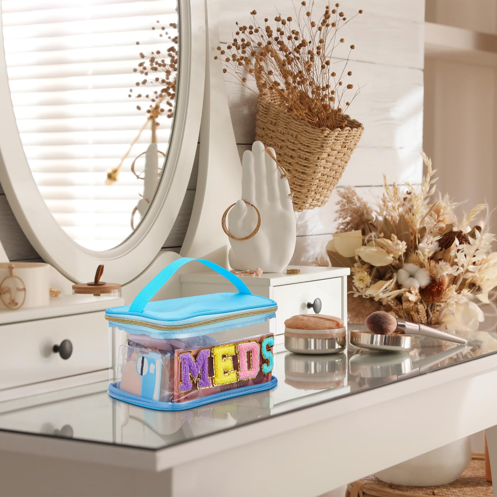 아마존 크로스보더 PVC 투명 MEDS 약품 상자 자수 문자 화장품 가방 휴대용 수납 가방 여행 세면도구 가방스토어 가기