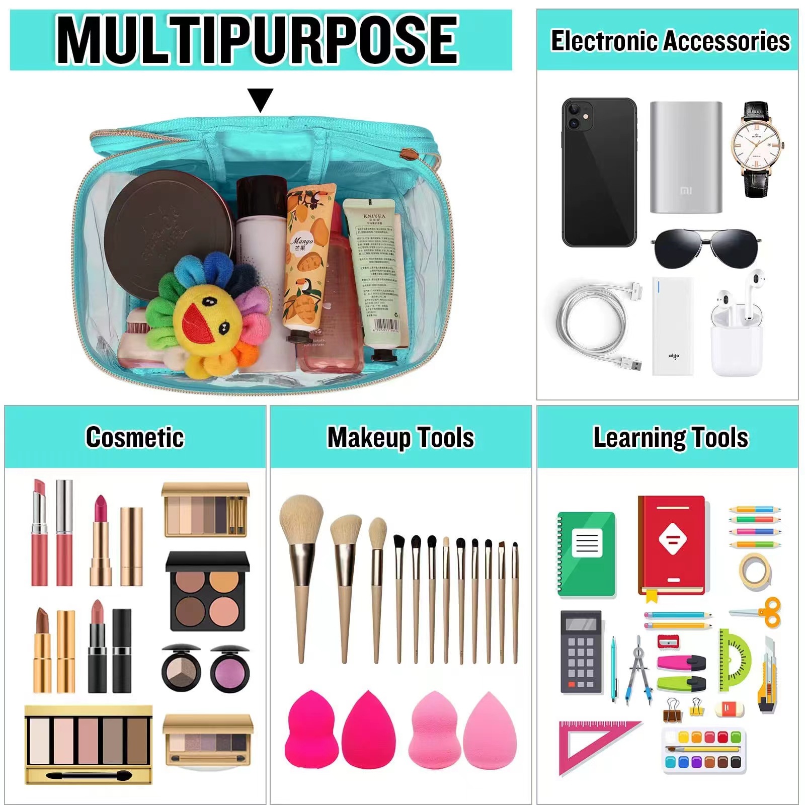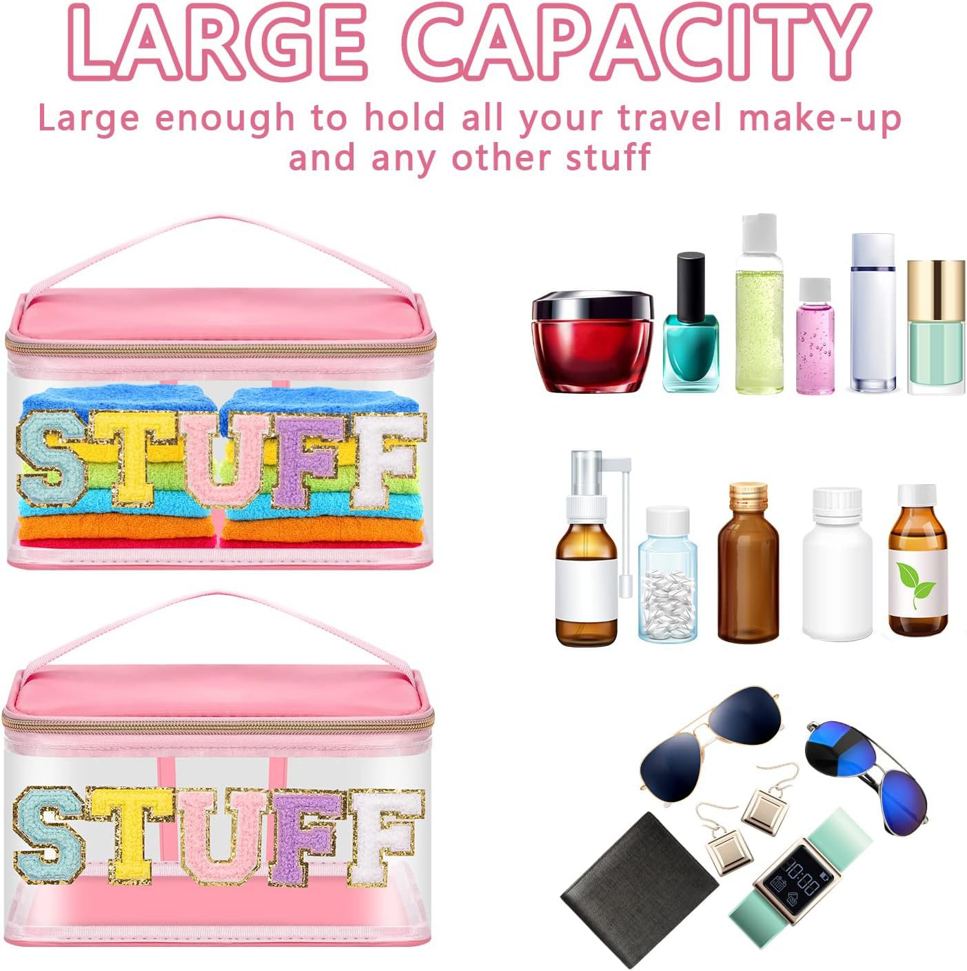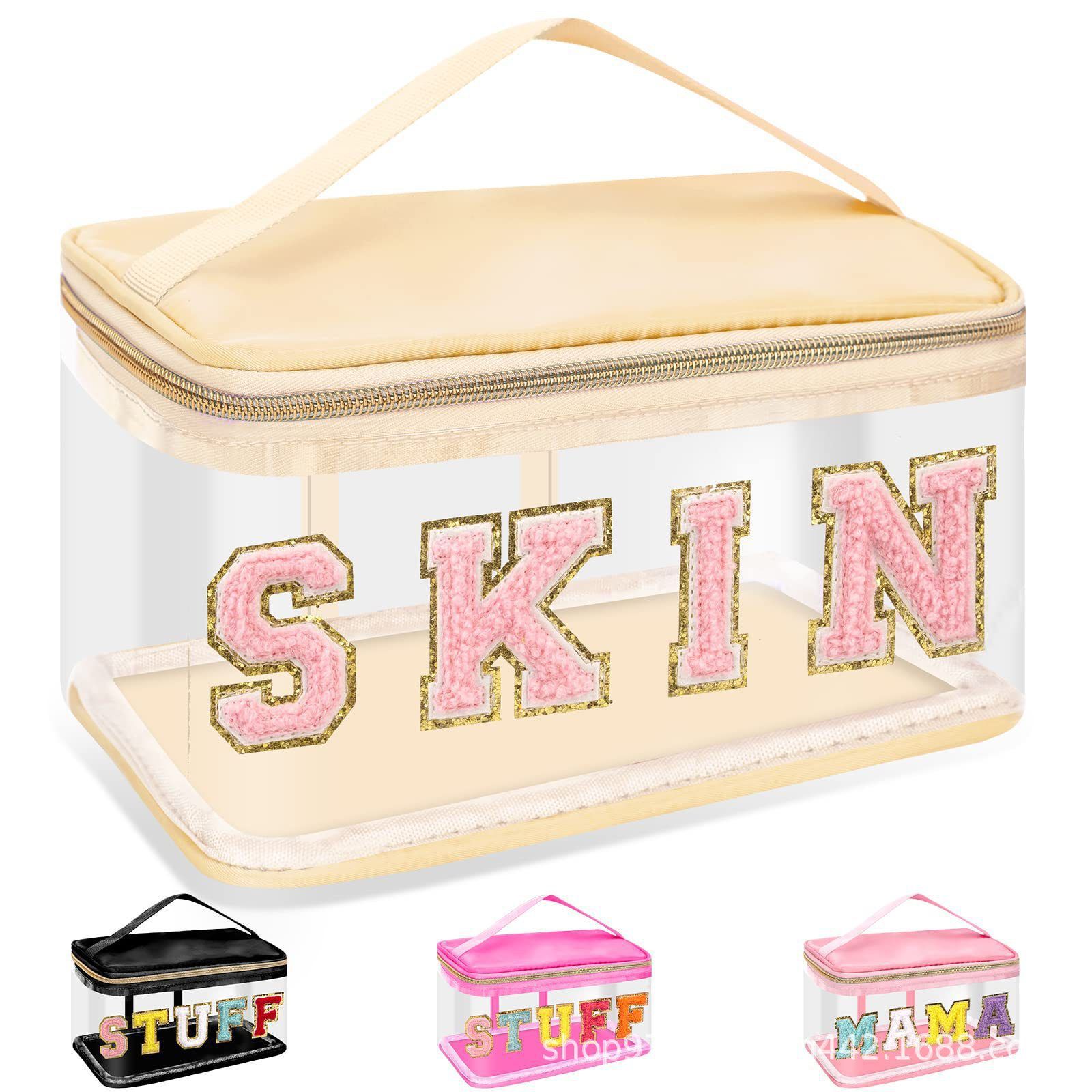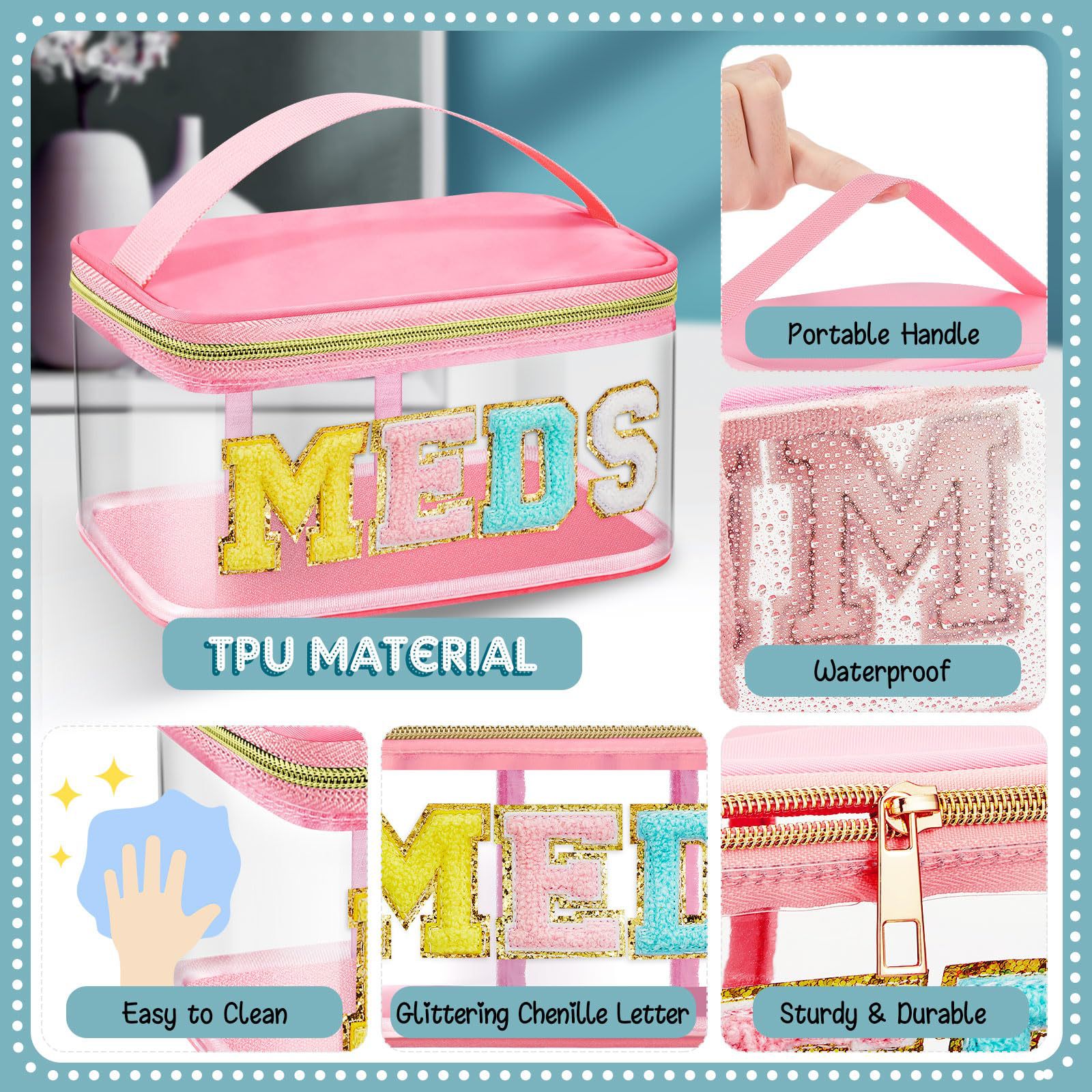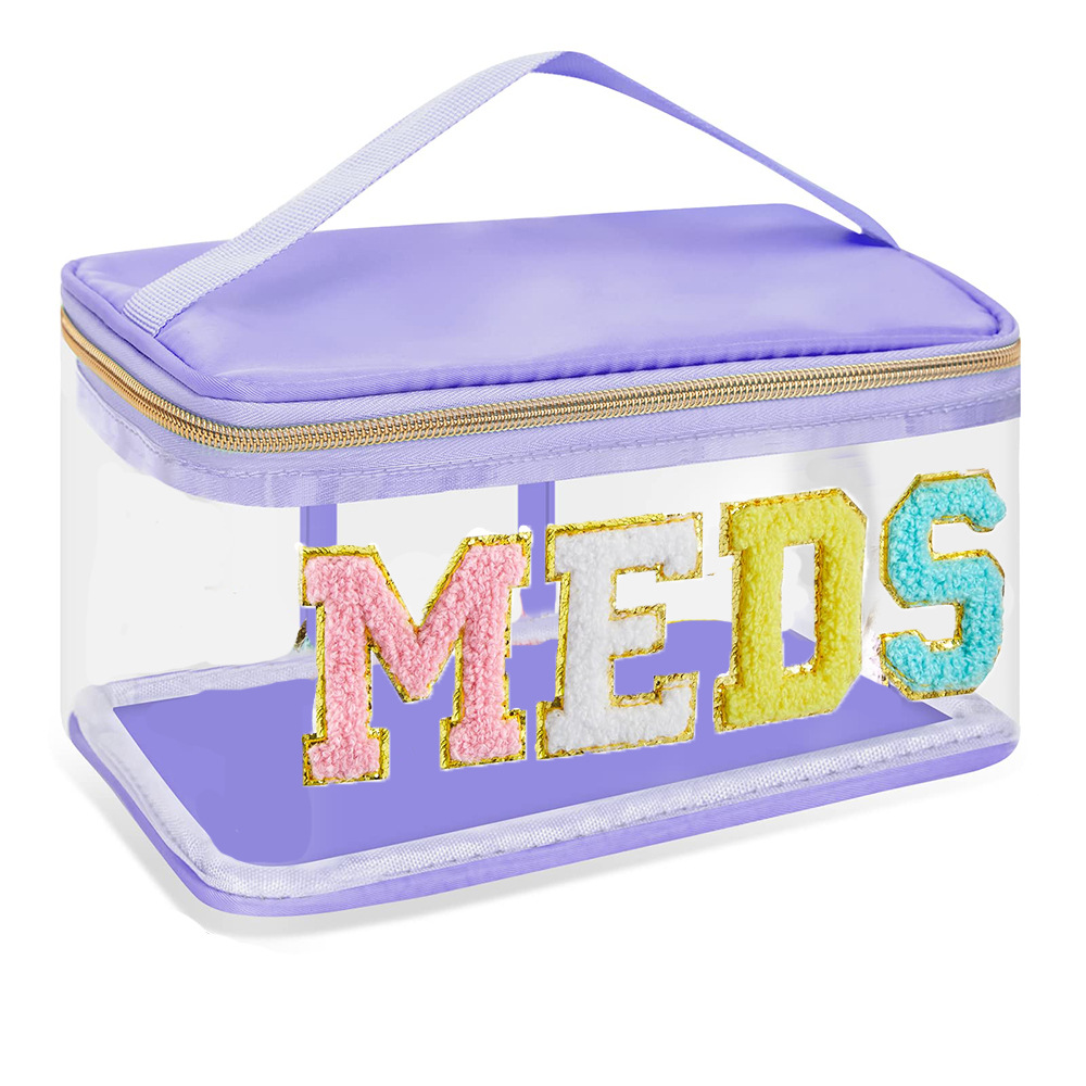 아마존 크로스보더 PVC 투명 MEDS 약품 상자 자수 문자 화장품 가방 휴대용 수납 가방 여행 세면도구 가방