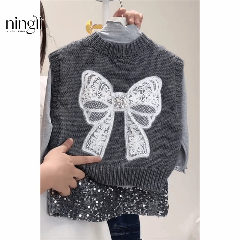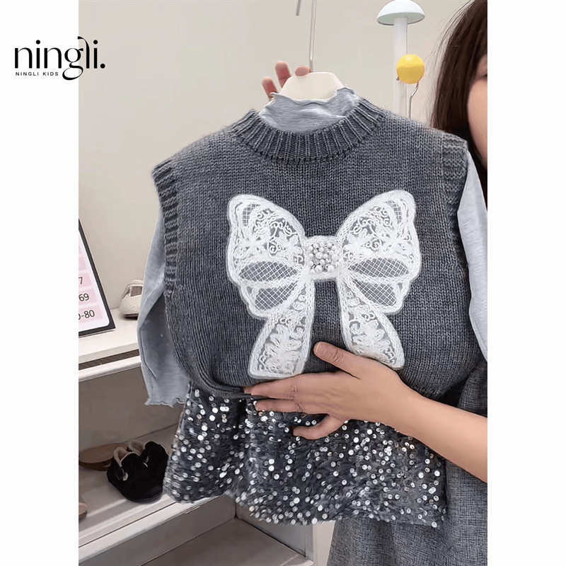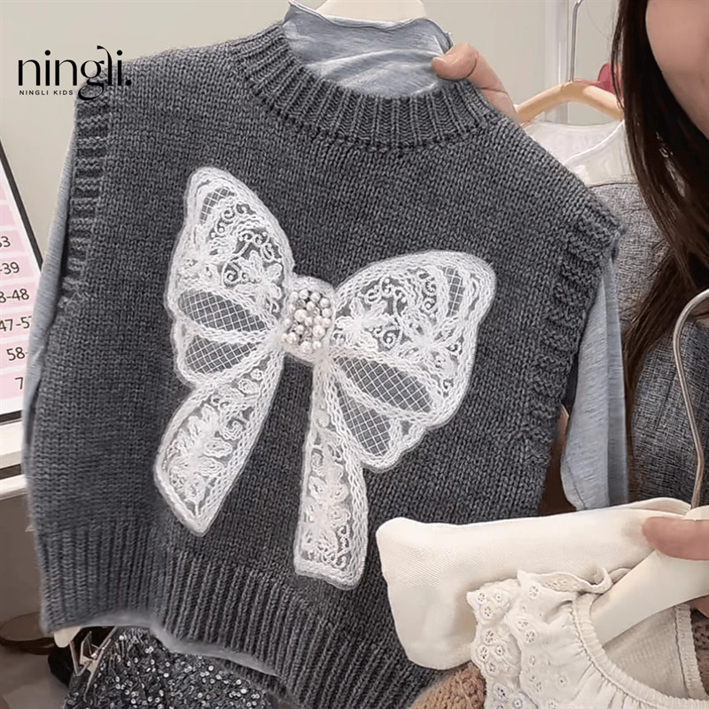 라임 소녀의 조끼 새로운 가을과 겨울 아이들의 세련된 니트 조끼 아기의 외부 왁스 코트 스웨터 코트스토어 가기