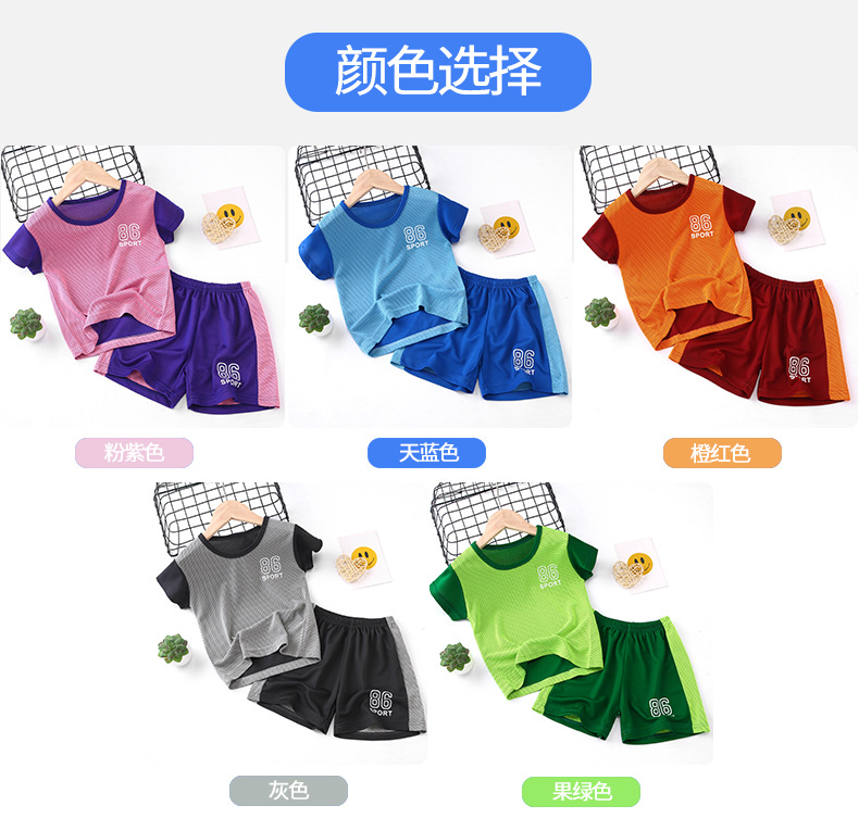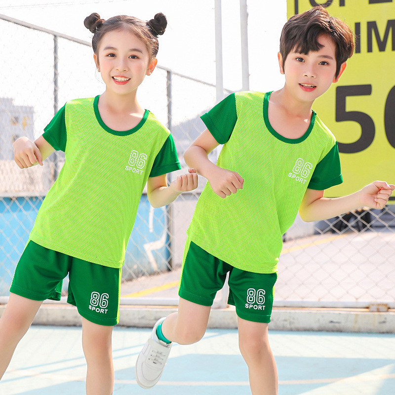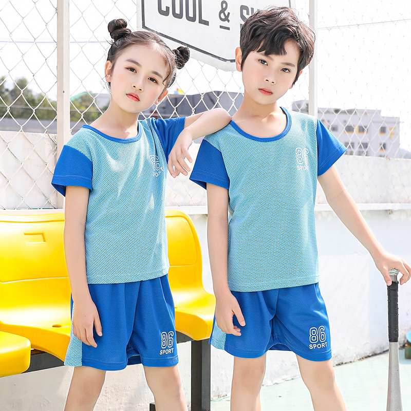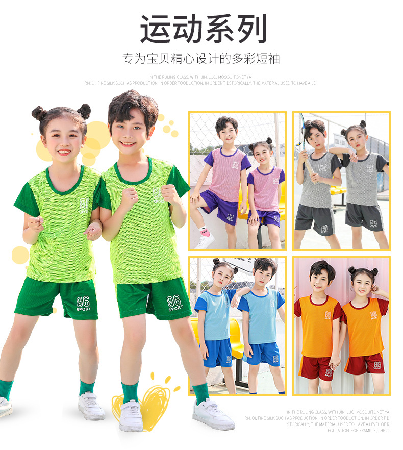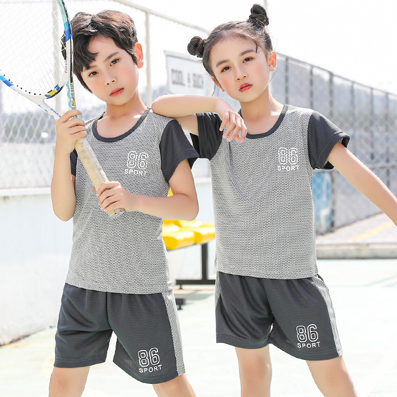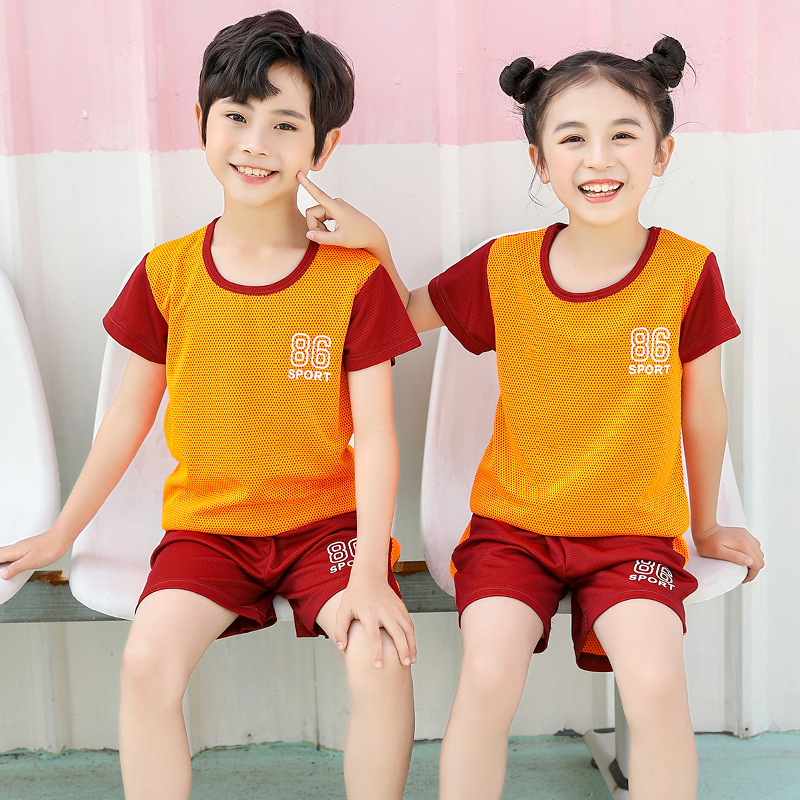 2021 여름 얇은 어린이 반팔 세트 소년 소녀 스포츠 홈 투피스 세트 어린이 컬러 농구 세트스토어 가기