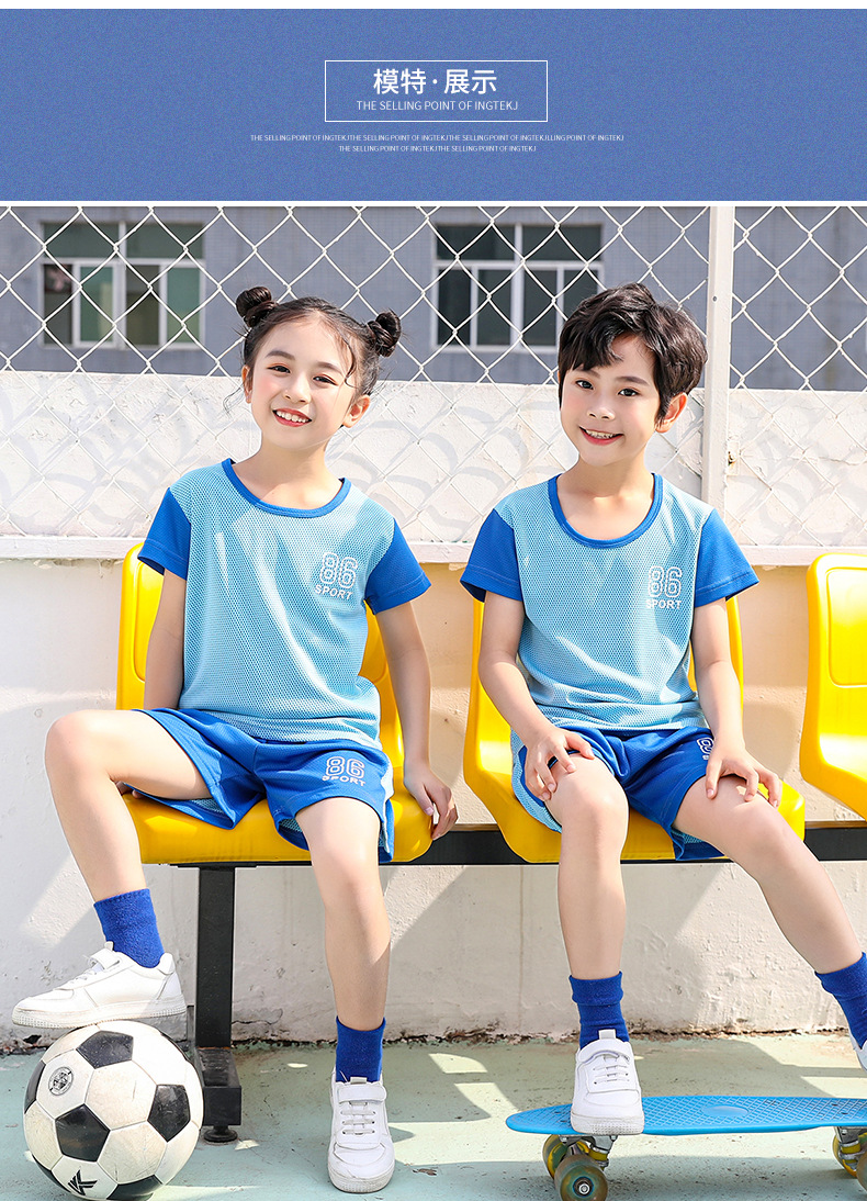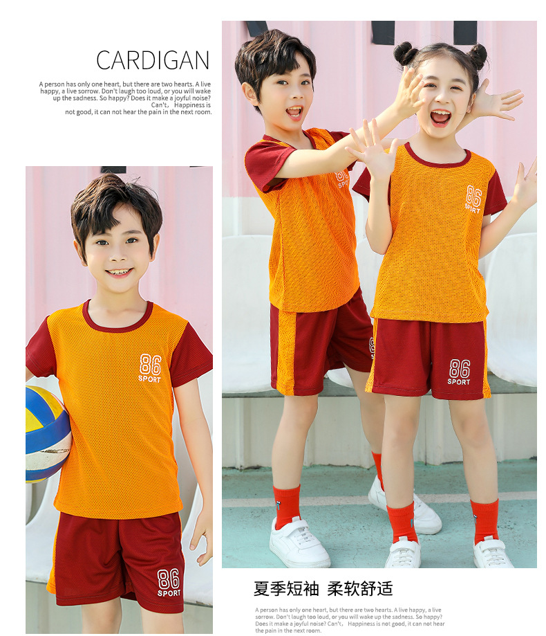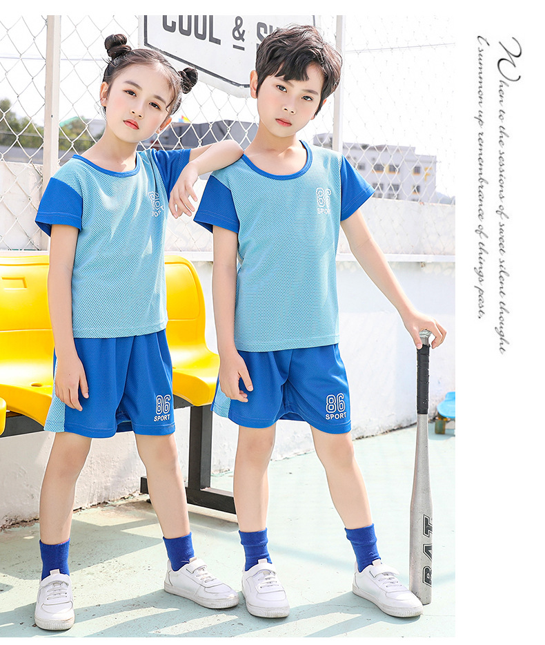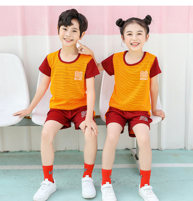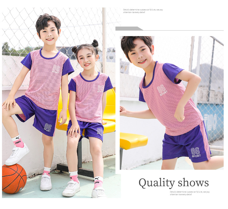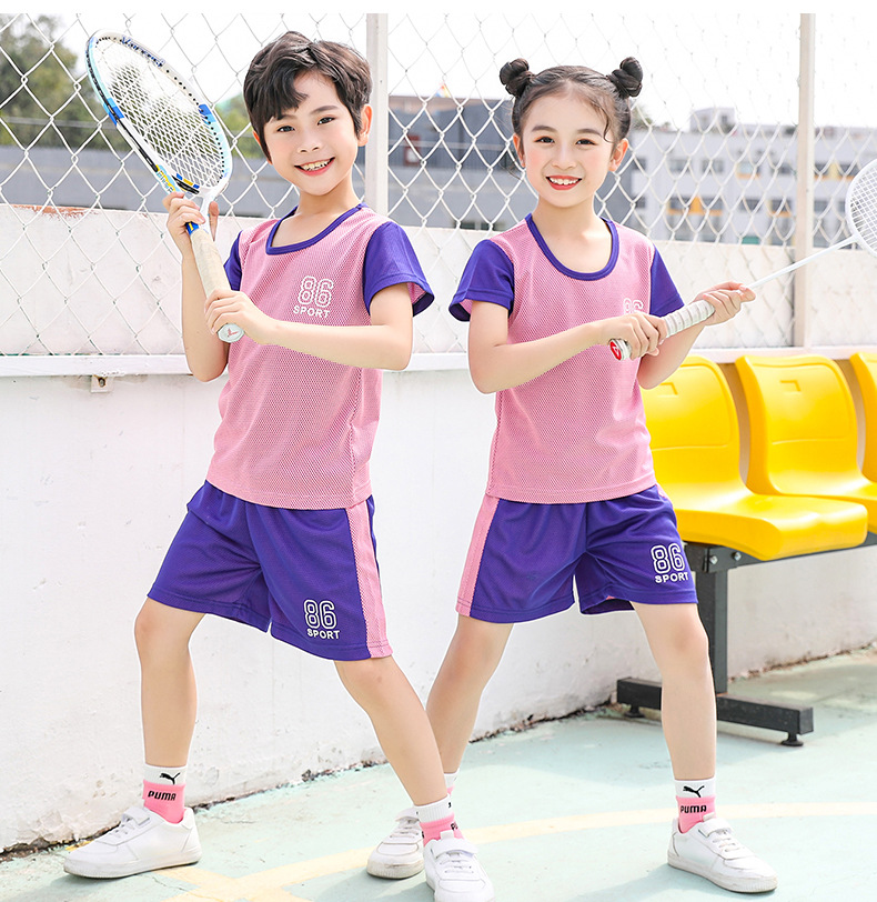 2021 여름 얇은 어린이 반팔 세트 소년 소녀 스포츠 홈 투피스 세트 어린이 컬러 농구 세트스토어 가기