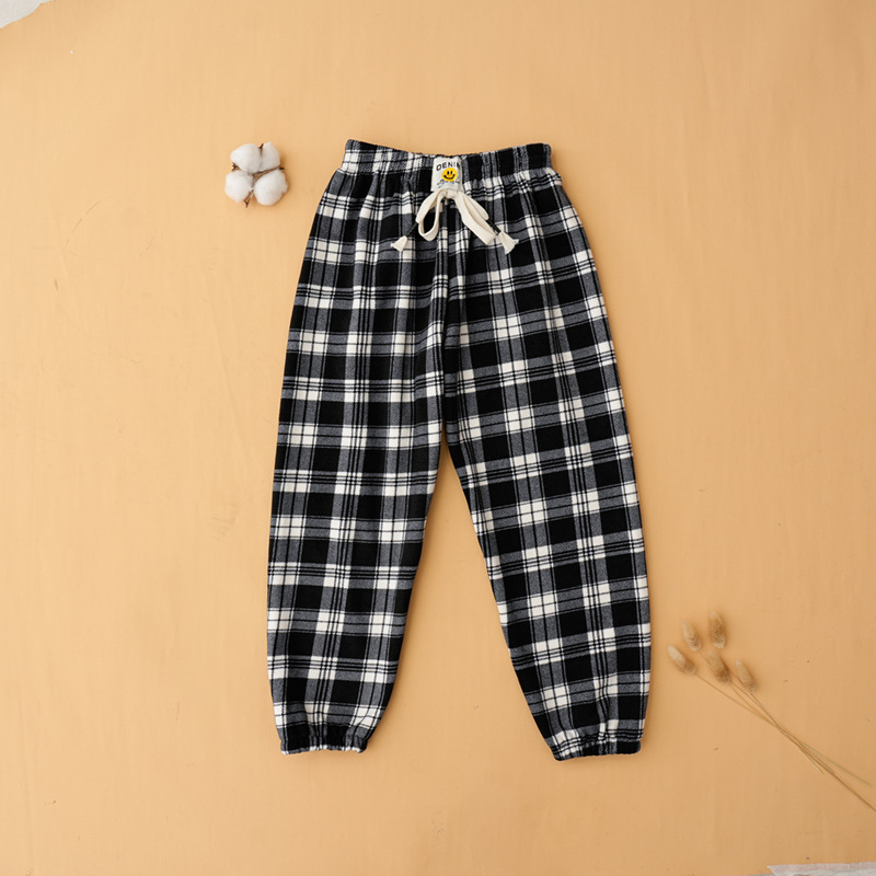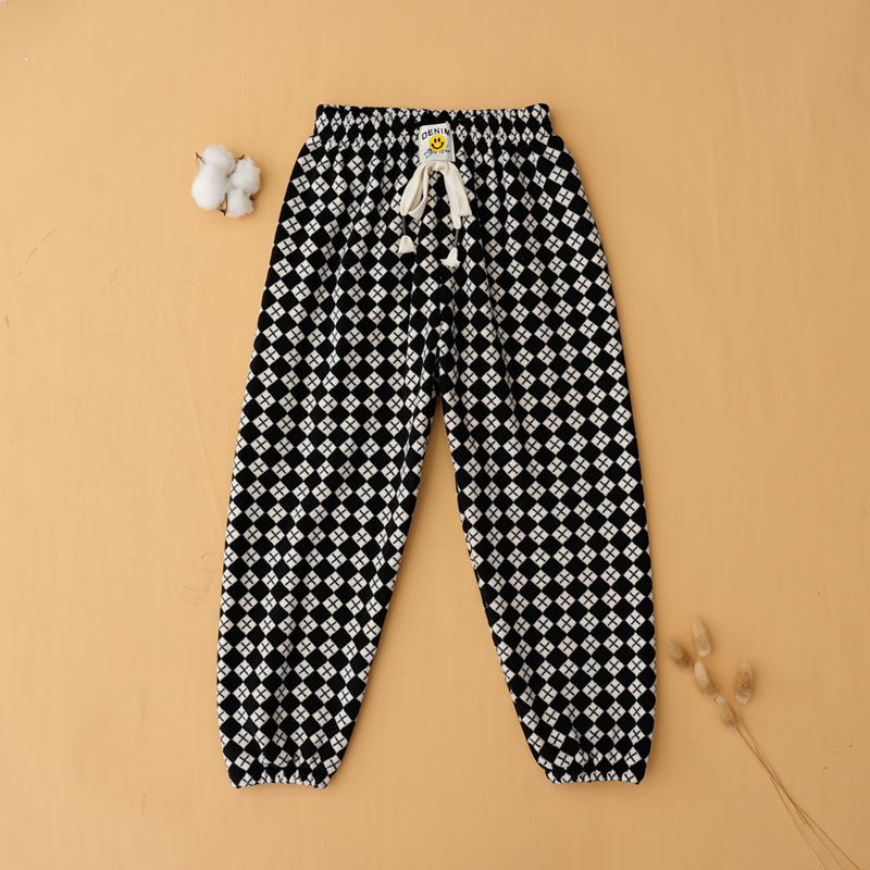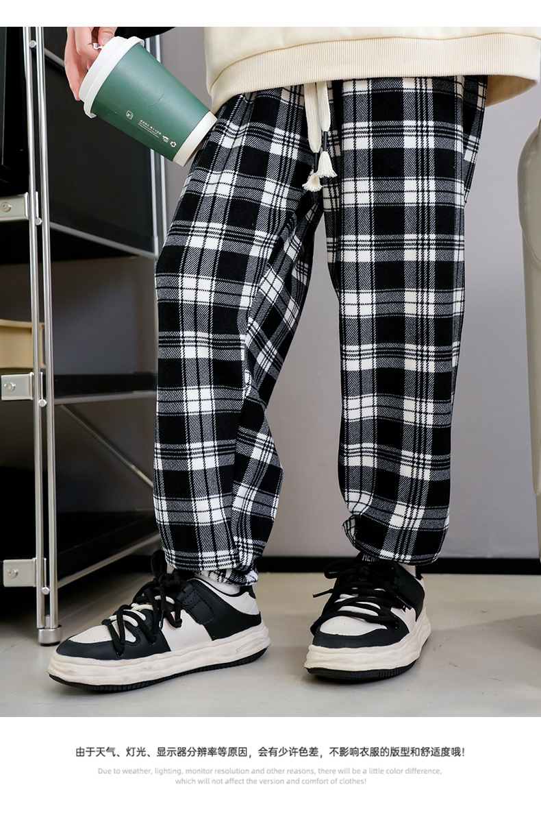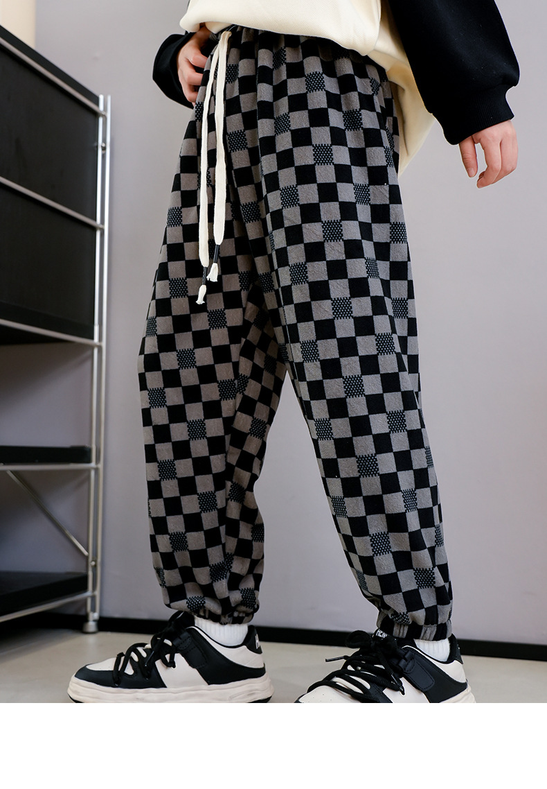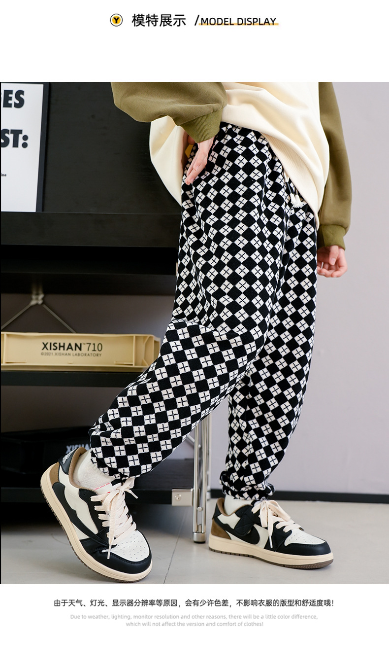 가을과 겨울 어린이 유행 격자 무늬 기모 두꺼운 느슨한 스포츠 캐주얼 바지 소년 소녀 줄무늬 따뜻한 바지