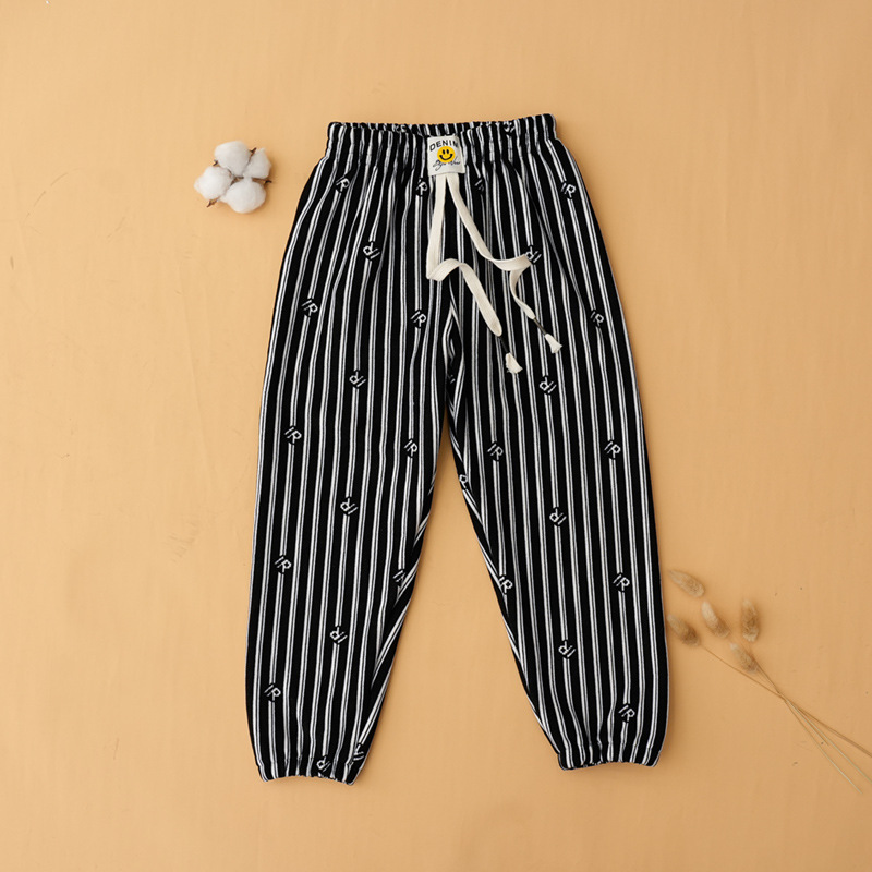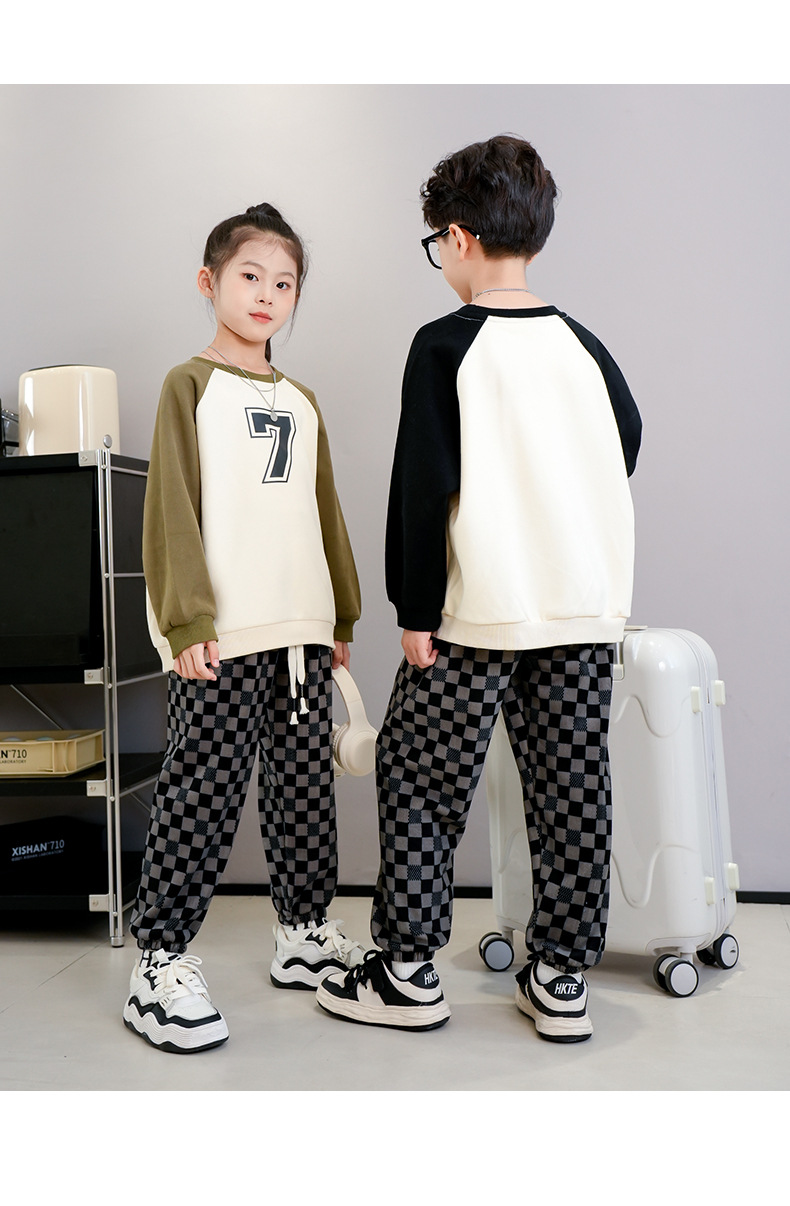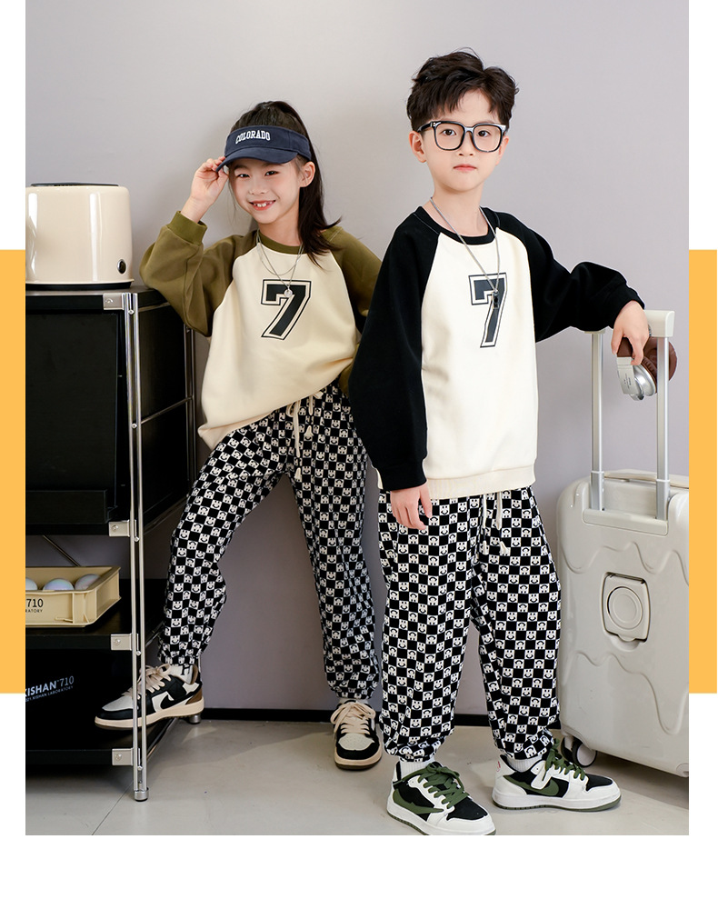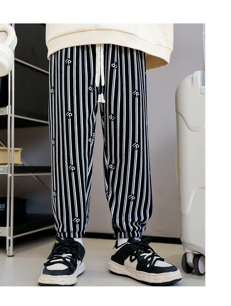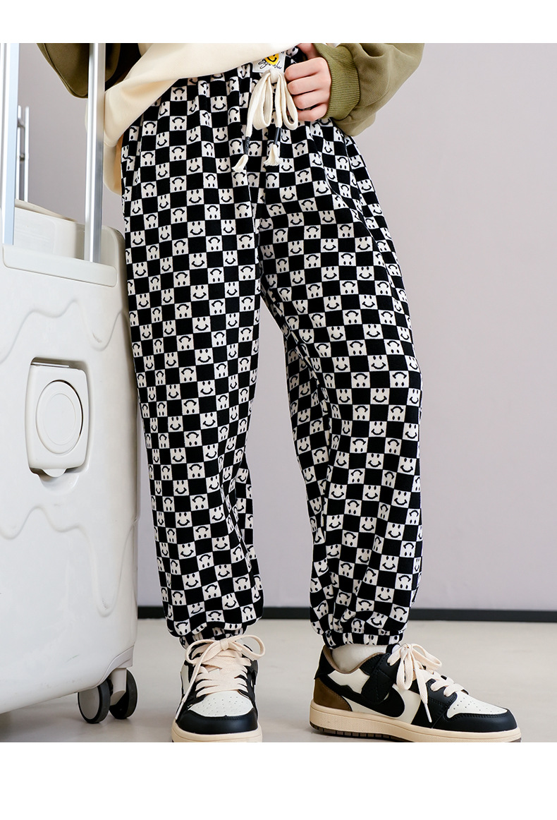 가을과 겨울 어린이 유행 격자 무늬 기모 두꺼운 느슨한 스포츠 캐주얼 바지 소년 소녀 줄무늬 따뜻한 바지