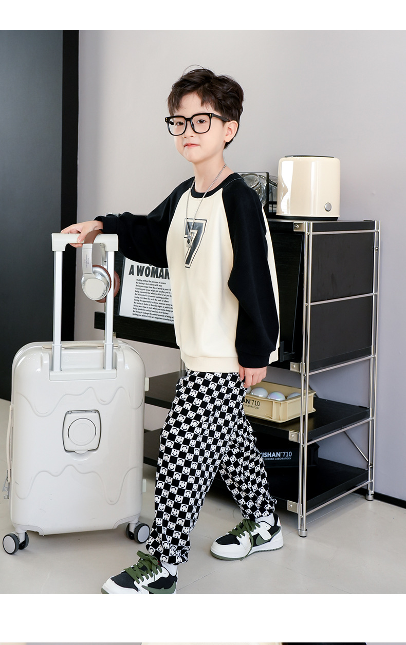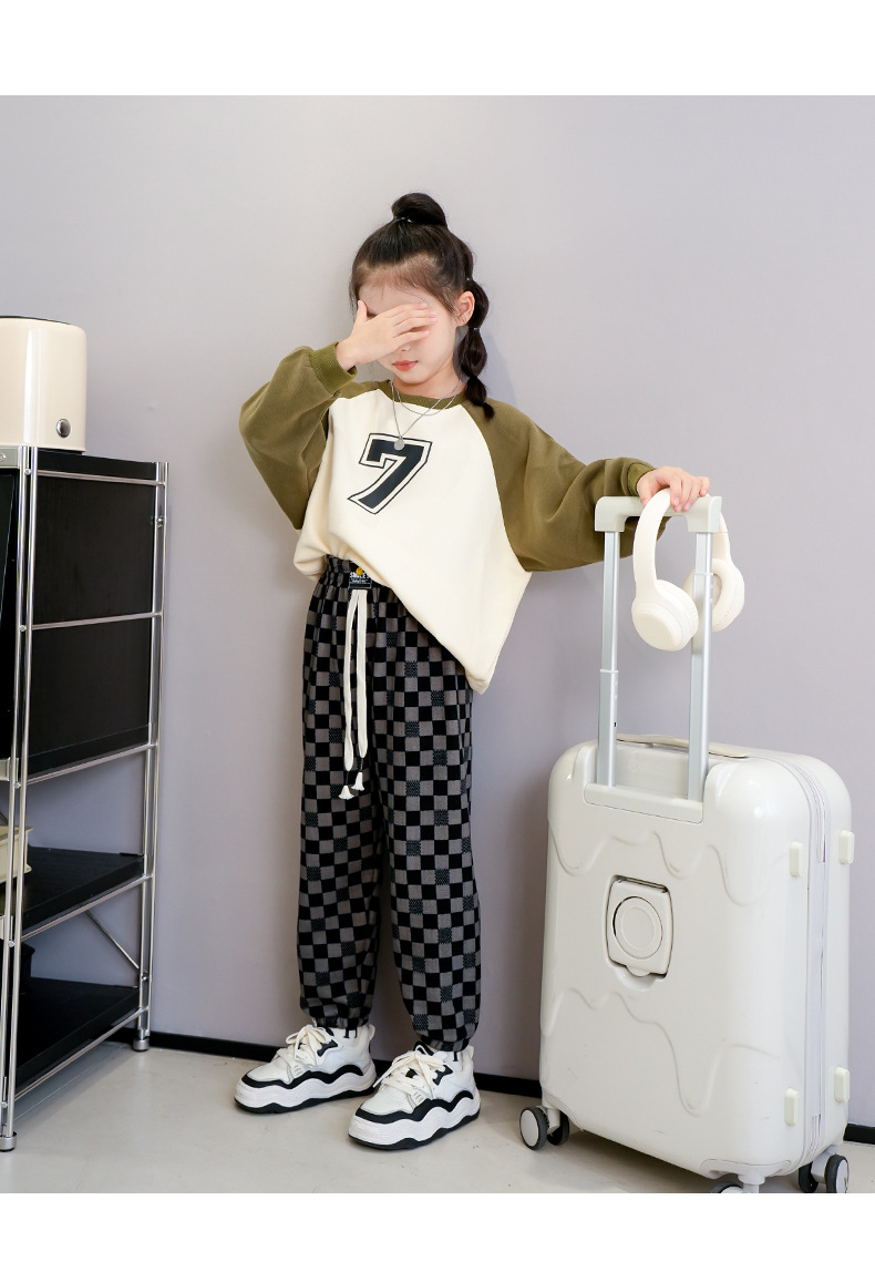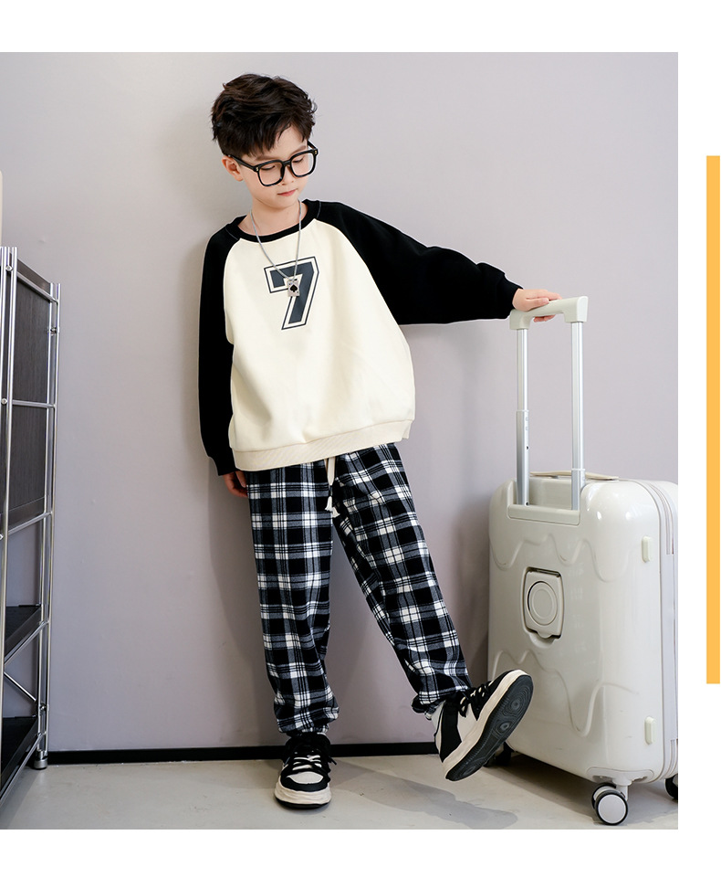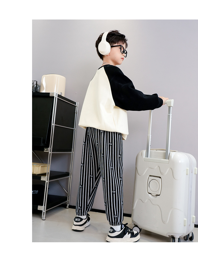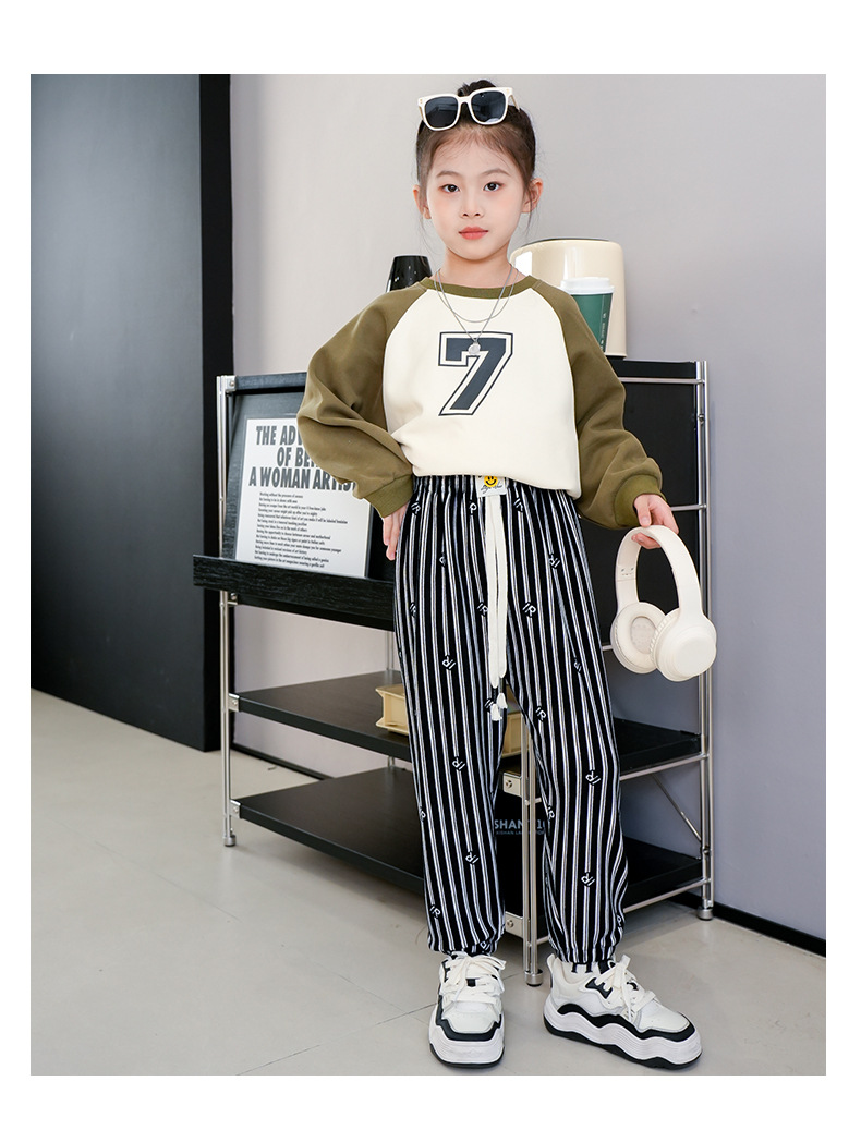 가을과 겨울 어린이 유행 격자 무늬 기모 두꺼운 느슨한 스포츠 캐주얼 바지 소년 소녀 줄무늬 따뜻한 바지