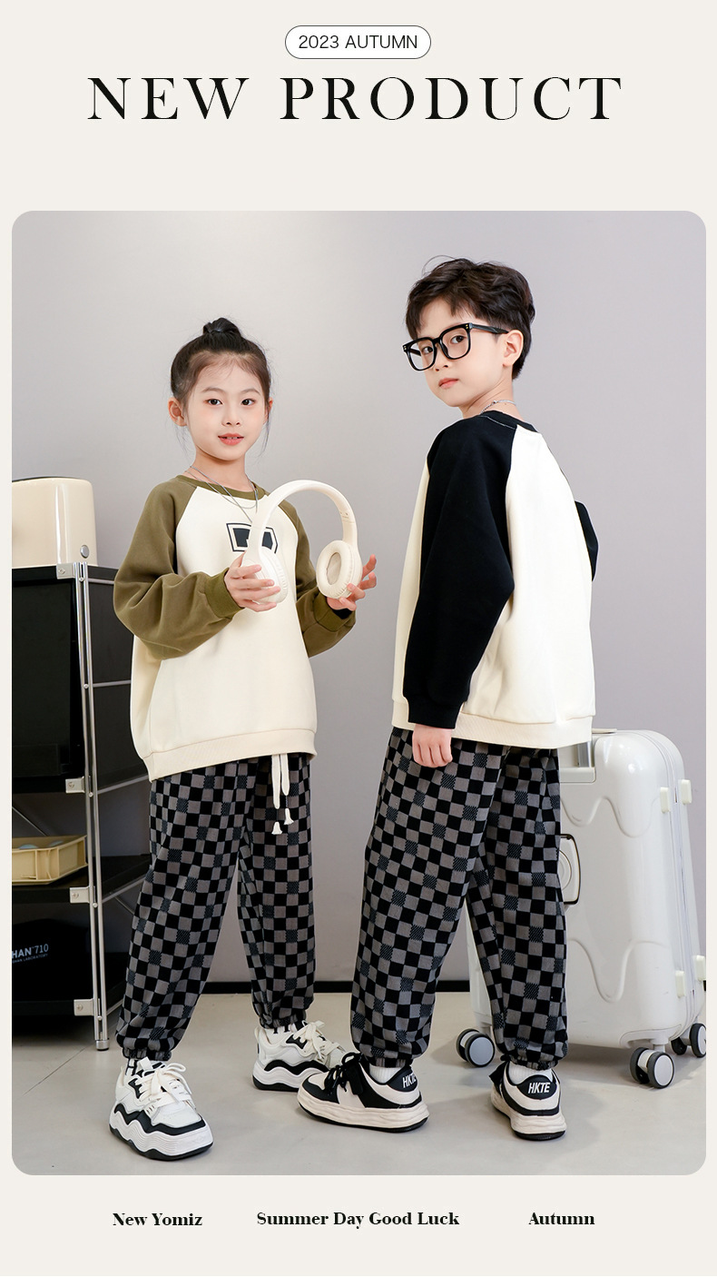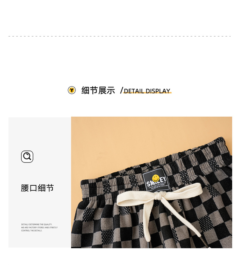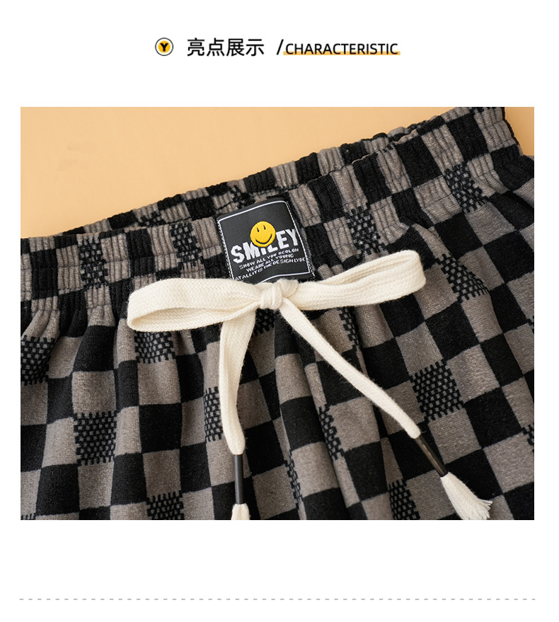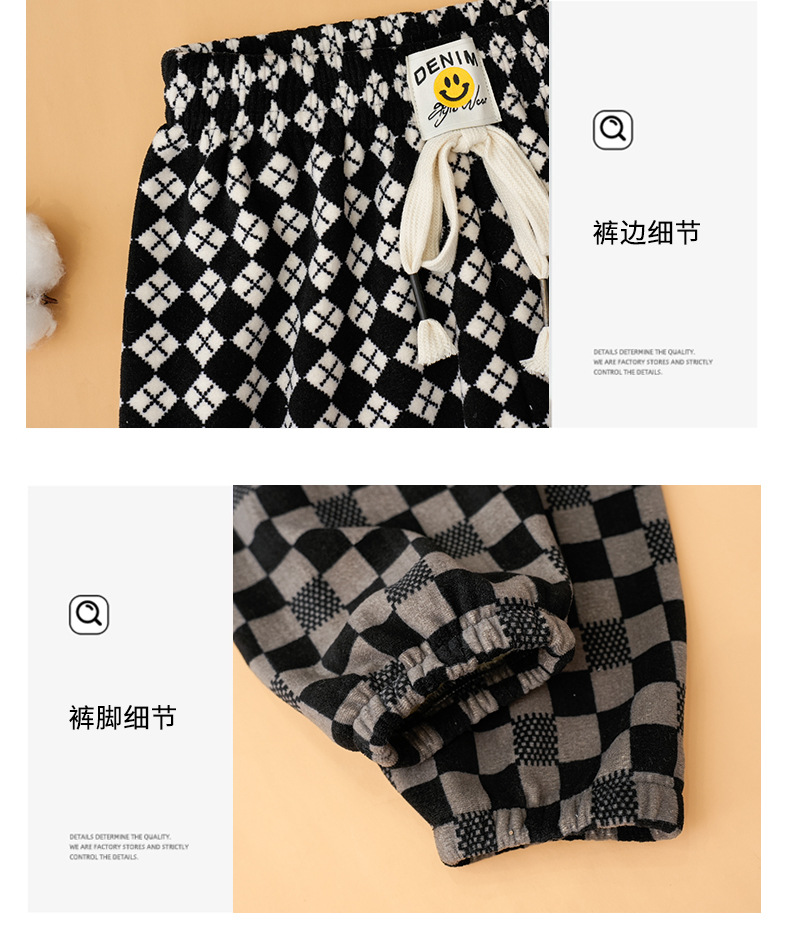 가을과 겨울 어린이 유행 격자 무늬 기모 두꺼운 느슨한 스포츠 캐주얼 바지 소년 소녀 줄무늬 따뜻한 바지스토어 가기