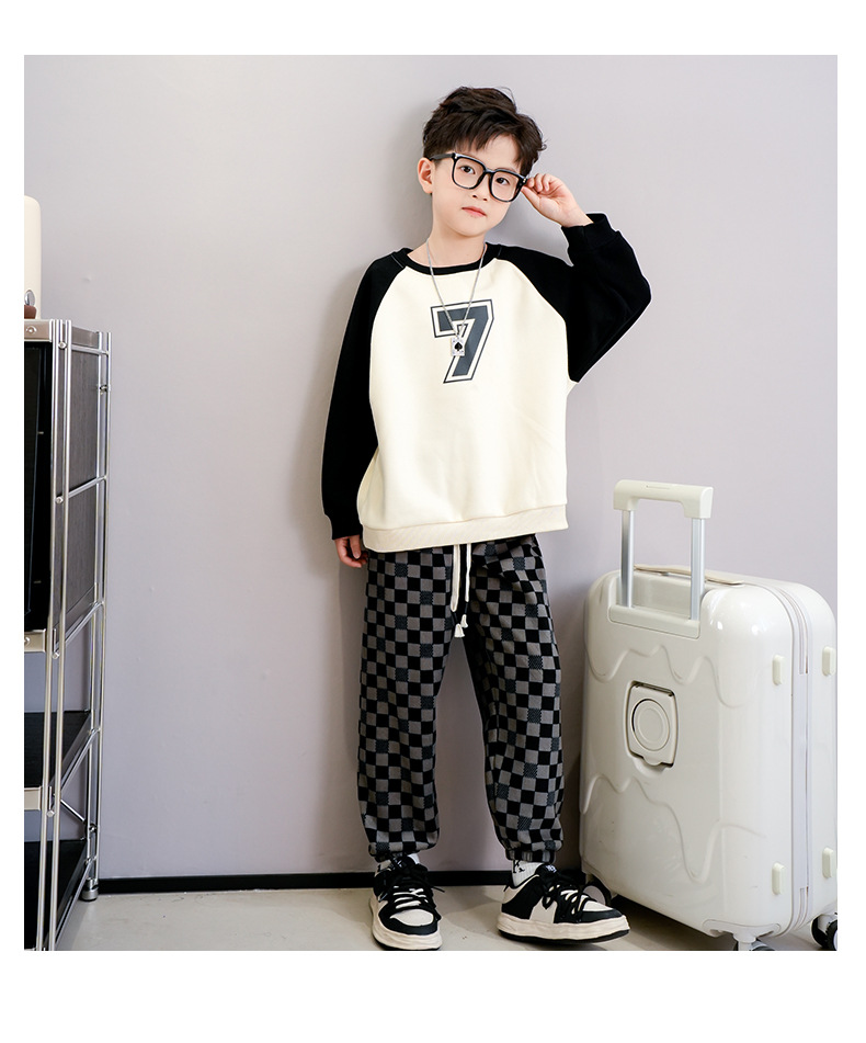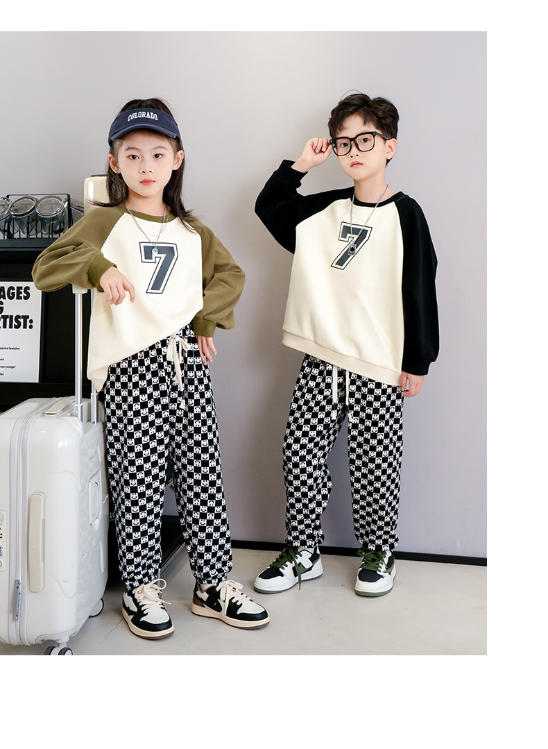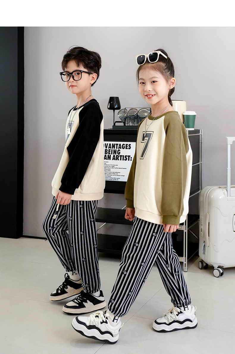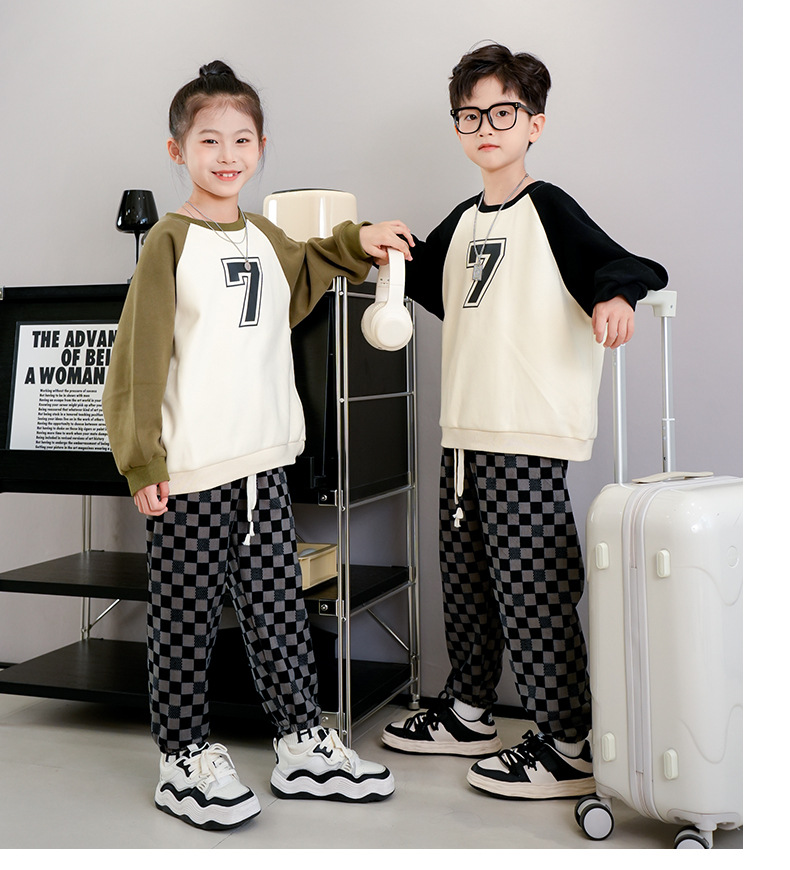 가을과 겨울 어린이 유행 격자 무늬 기모 두꺼운 느슨한 스포츠 캐주얼 바지 소년 소녀 줄무늬 따뜻한 바지스토어 가기