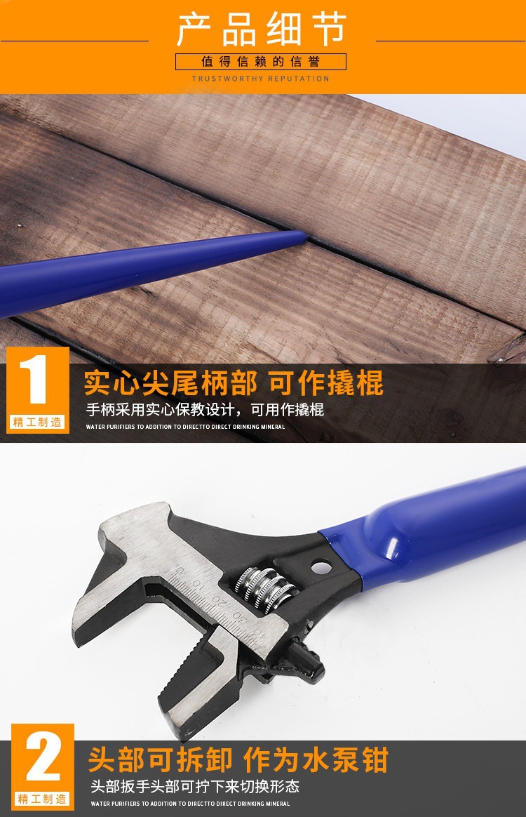대형 오픈 엔드 조정 가능한 렌치 8 인치 크라우바 뾰족한 테일 타악기 4 대 1 다기능 12 인치 파이프 렌치 해머 지렛대