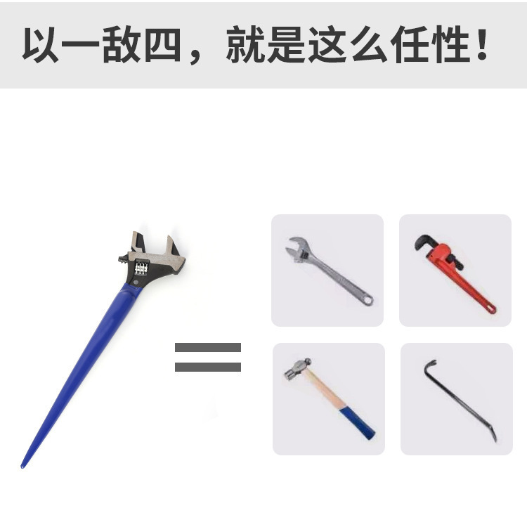 대형 오픈 엔드 조정 가능한 렌치 8 인치 크라우바 뾰족한 테일 타악기 4 대 1 다기능 12 인치 파이프 렌치 해머 지렛대스토어 가기
