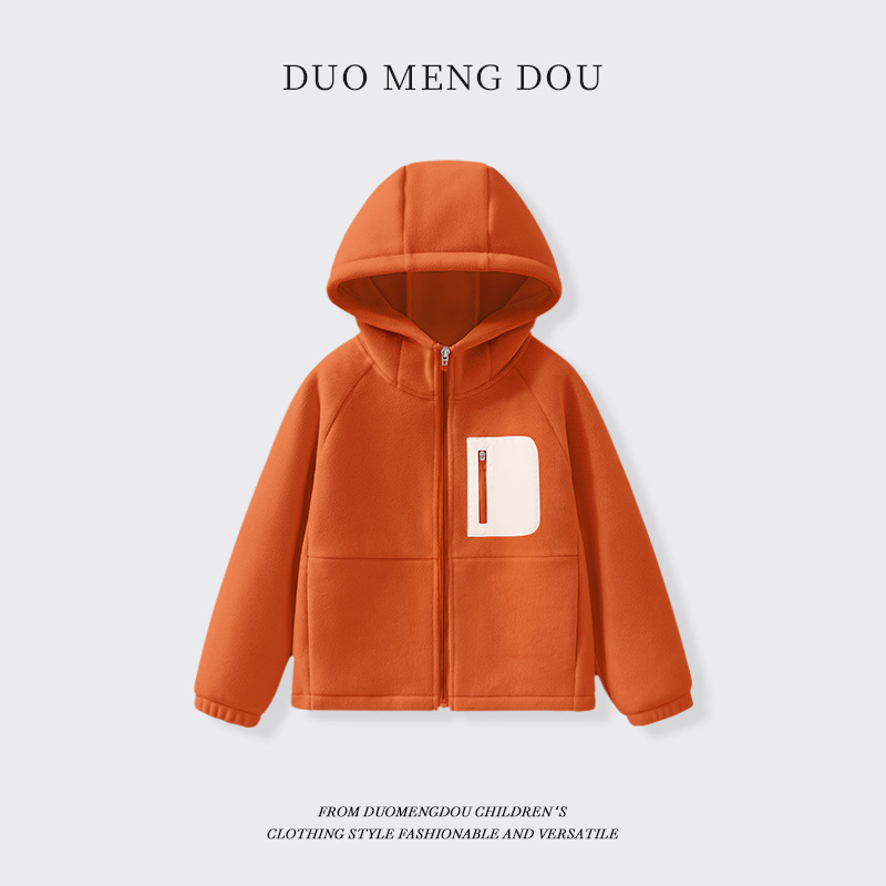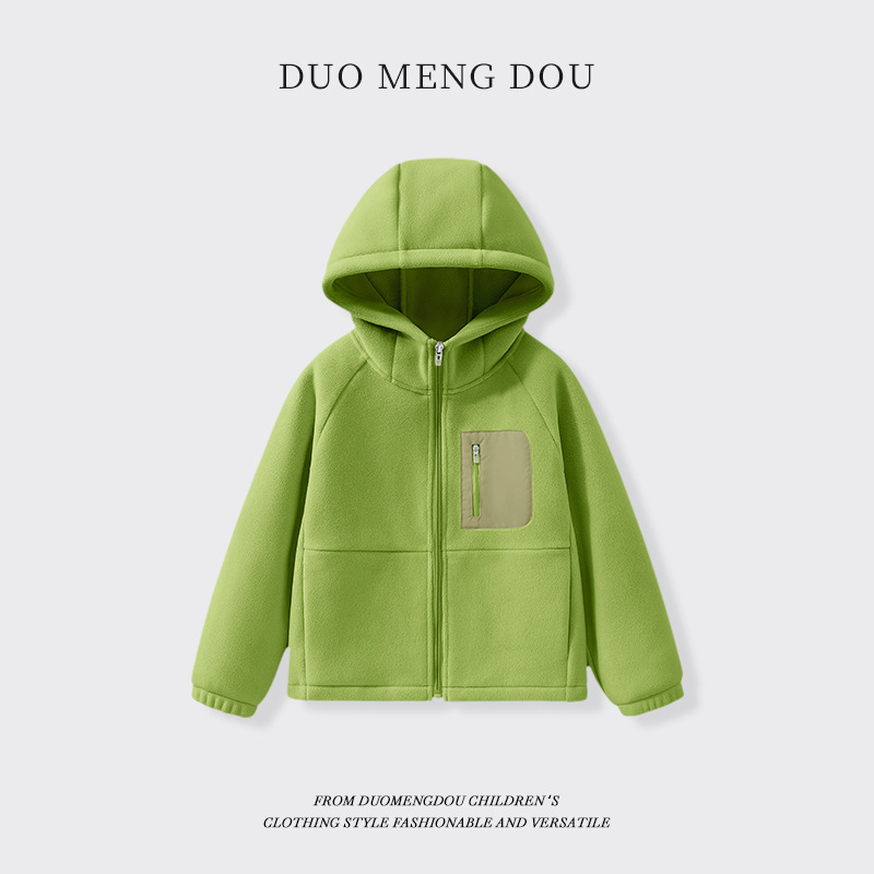 어린이 후드 재킷 소년의 기모 지퍼 카디건 2024 겨울 새 스타일 빅 보이 올림픽 그레인 벨벳 탑