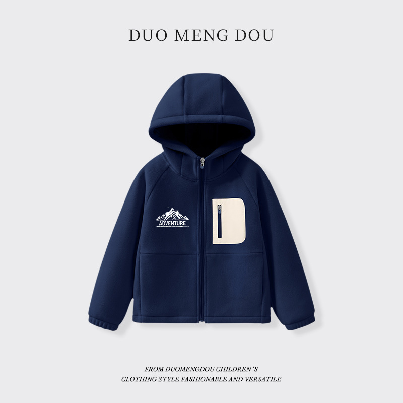 어린이 후드 재킷 소년의 기모 지퍼 카디건 2024 겨울 새 스타일 빅 보이 올림픽 그레인 벨벳 탑스토어 가기