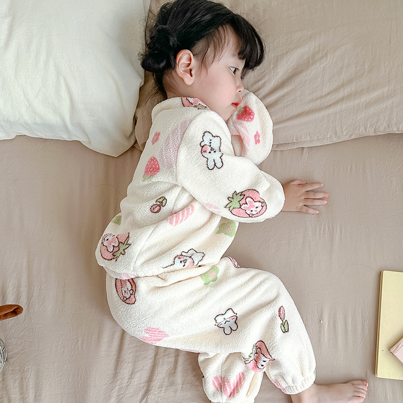 2025년 신상 스노우 벨벳 여아 잠옷 세트 어린이 산호 벨벳 홈웨어 아기 플란넬 따뜻한 얇은 벨벳스토어 가기
