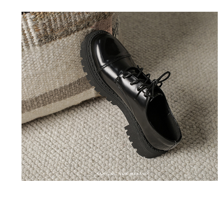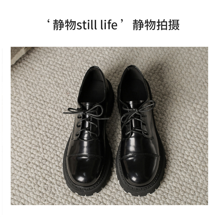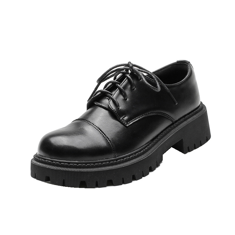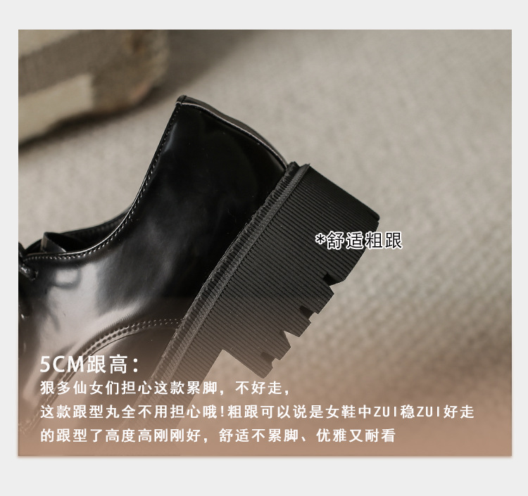 두꺼운 밑창 강화 로퍼 2022 가을 검은 레이스 업 학생 부드러운 밑창 조커 JK Mary Jane 청키 힐 싱글 레이어 신발스토어 가기