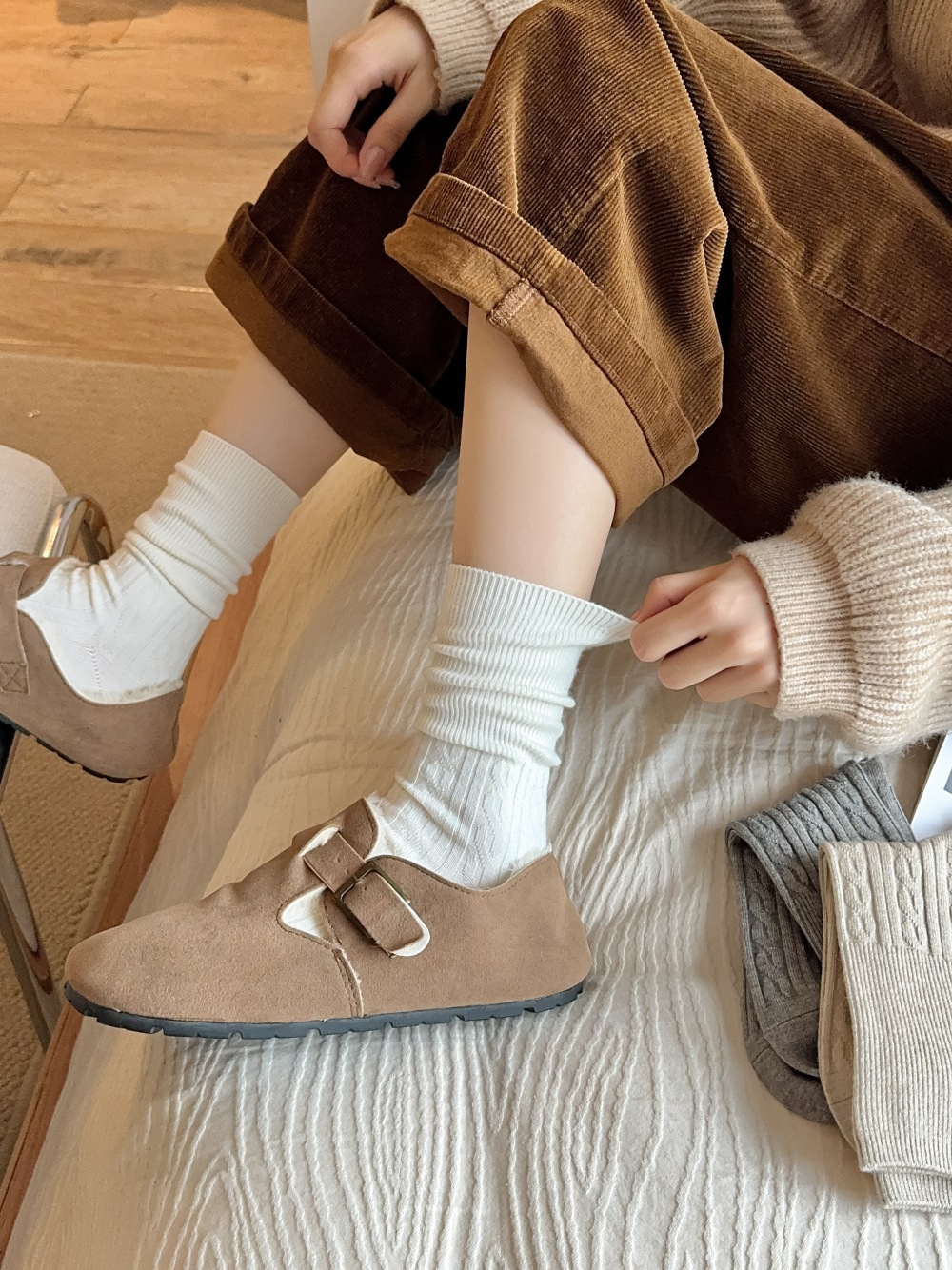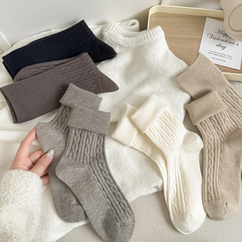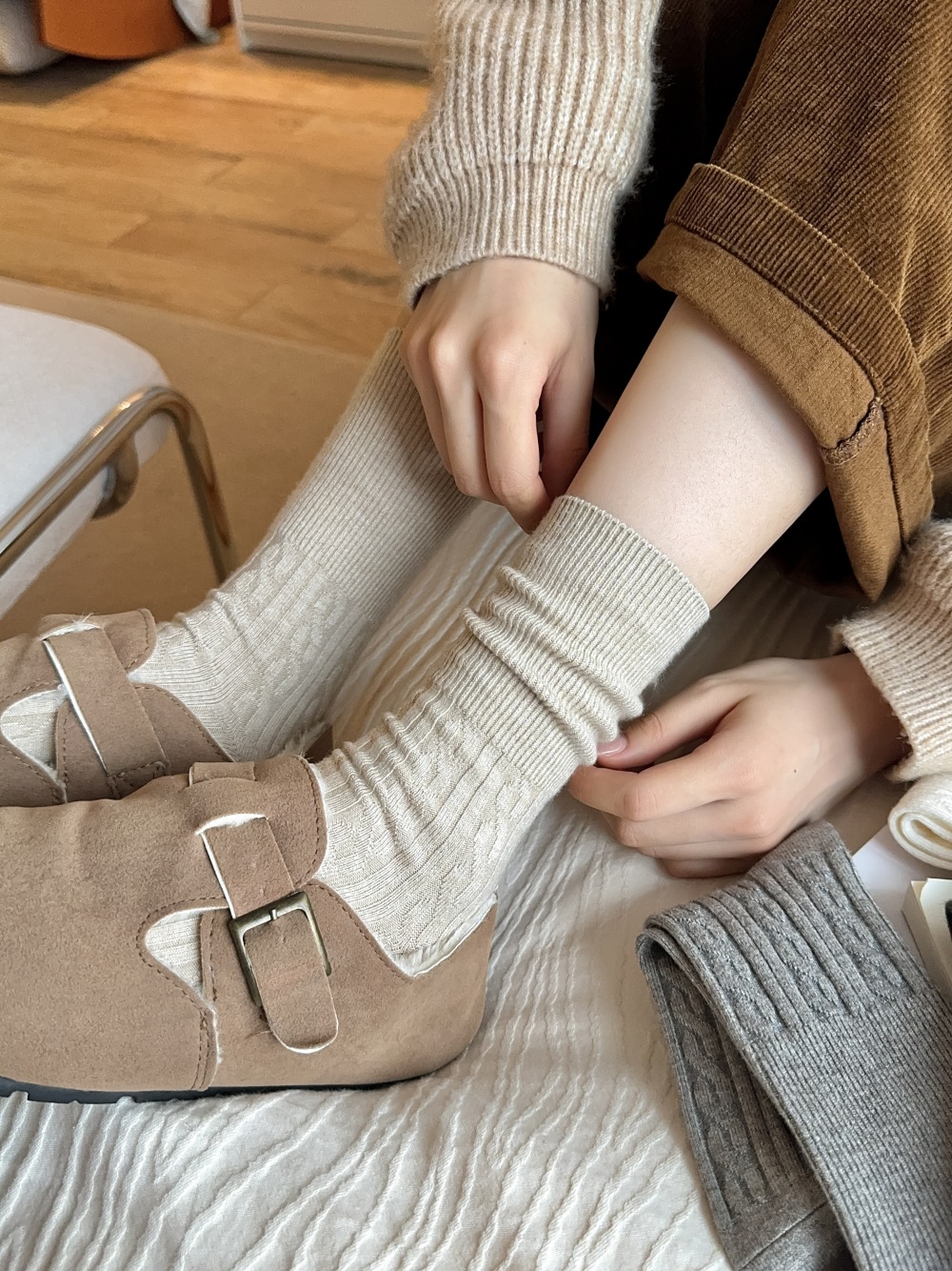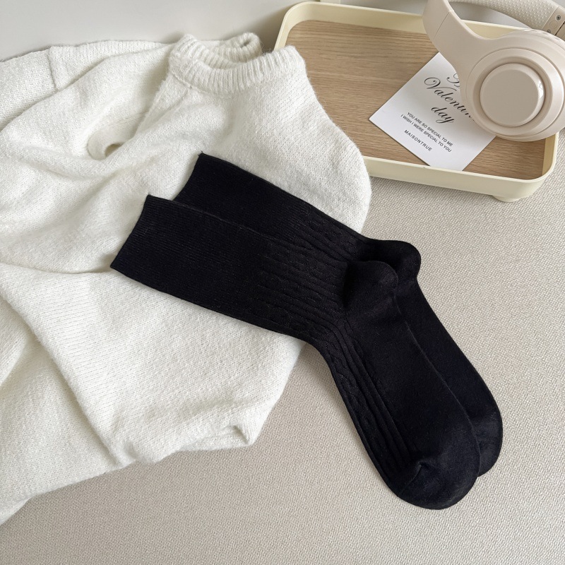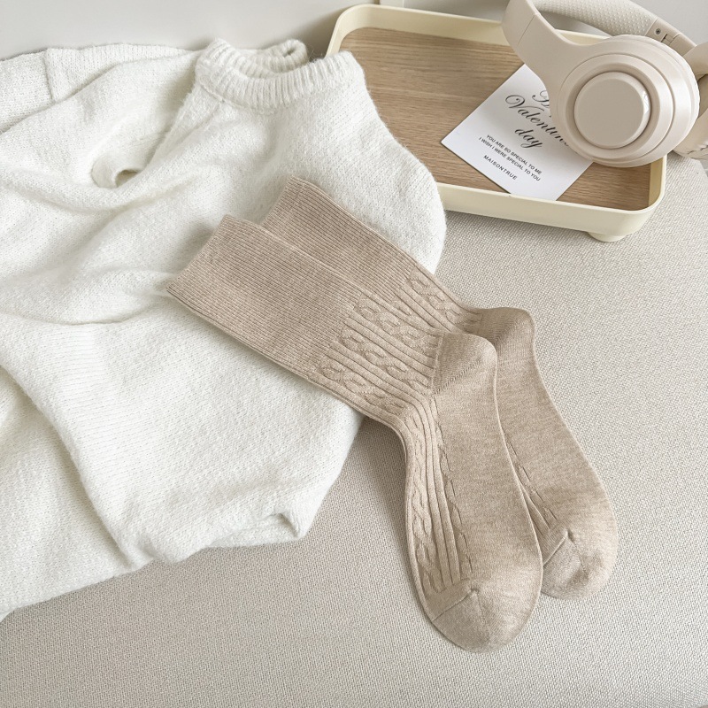 여성용 양말 가을 겨울 중간 길이 양말 단색 일본식 모조 캐시미어 꽈배기 무늬 롱 양말 인스 스타일 심플 고급스러운 소녀용