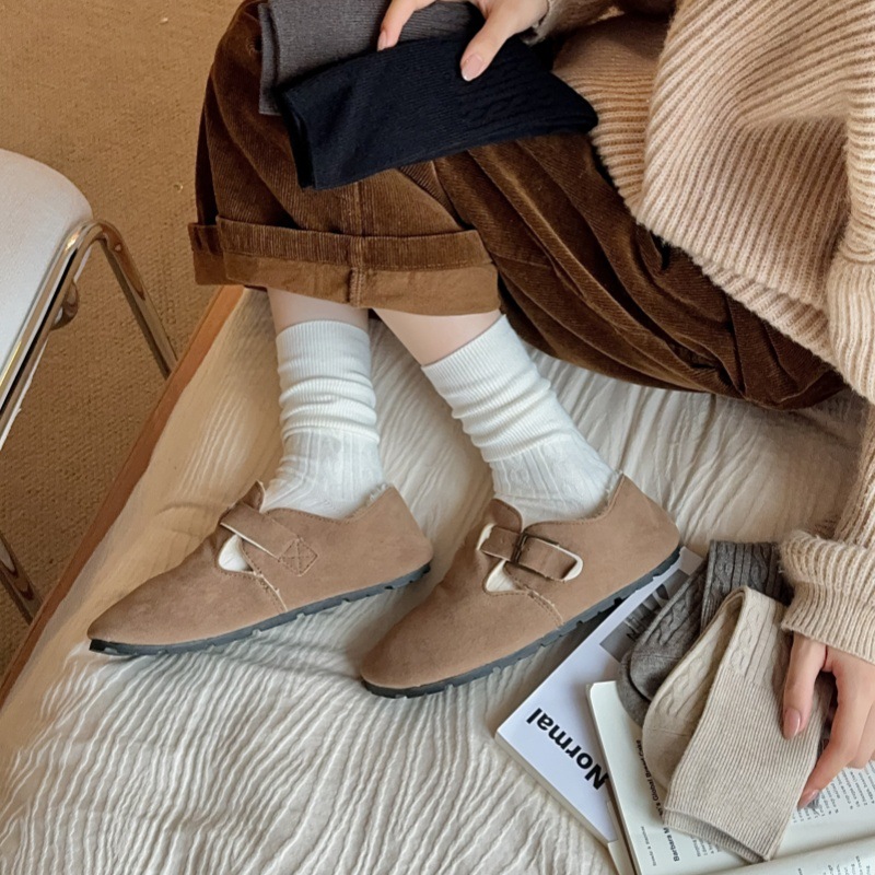 여성용 양말 가을 겨울 중간 길이 양말 단색 일본식 모조 캐시미어 꽈배기 무늬 롱 양말 인스 스타일 심플 고급스러운 소녀용스토어 가기