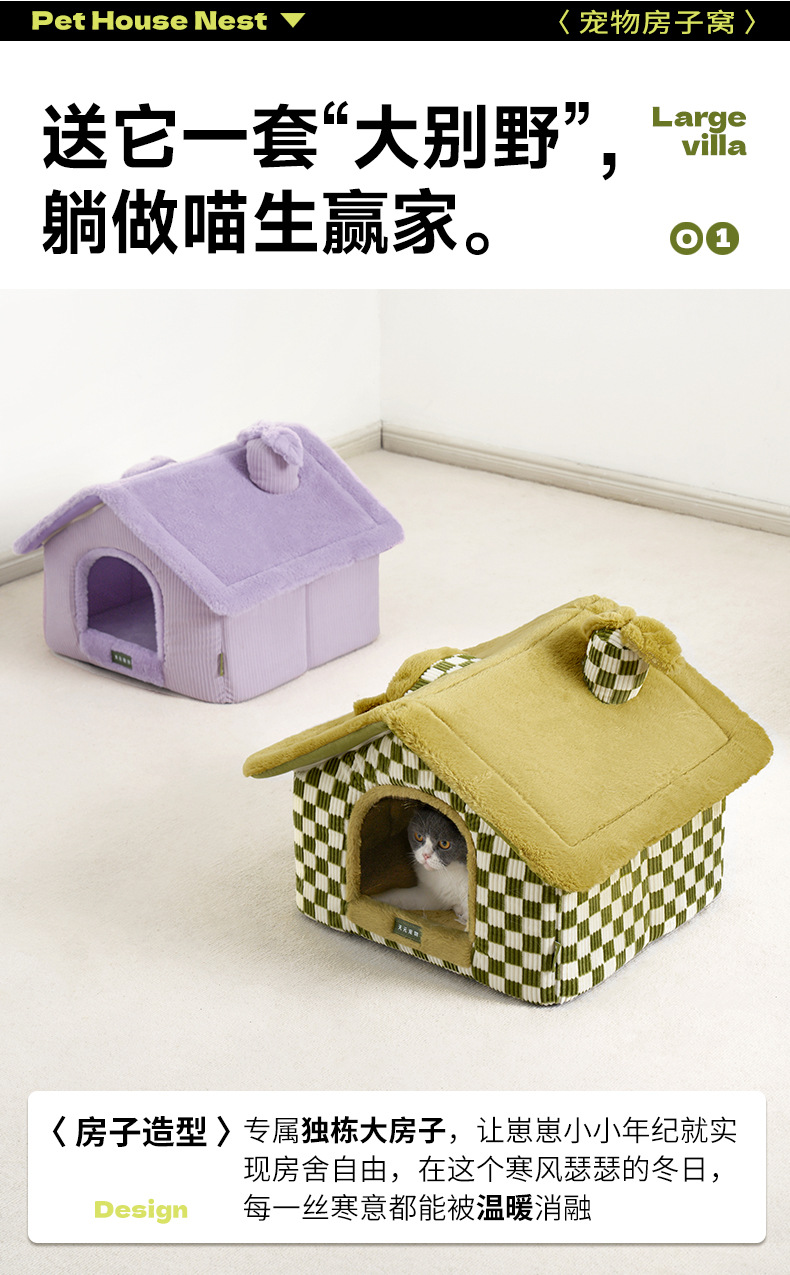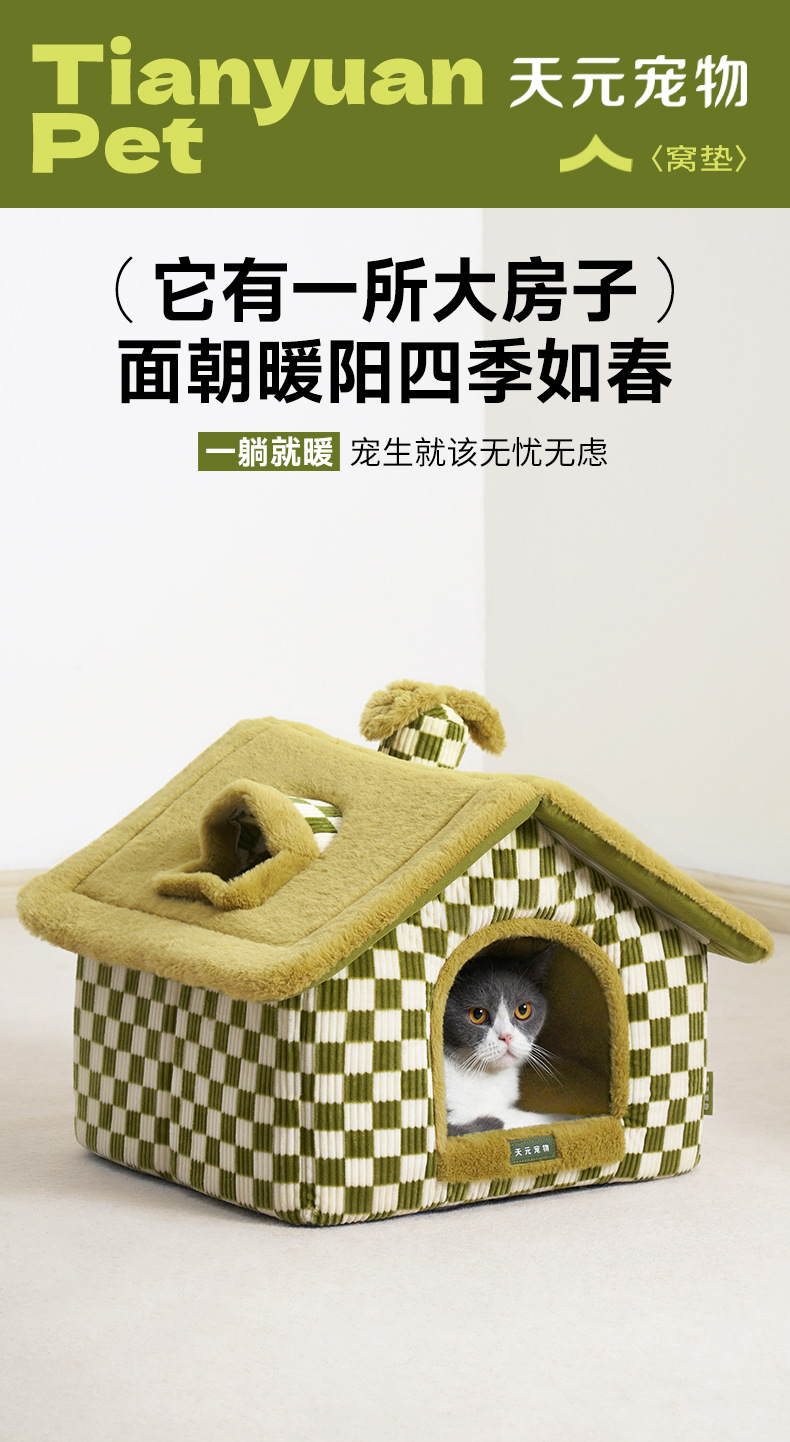 천원 애완동물 집 고양이 둥지 겨울 따뜻하고 안전한 밀폐형 개집 초대형 고양이 침대 수면용스토어 가기