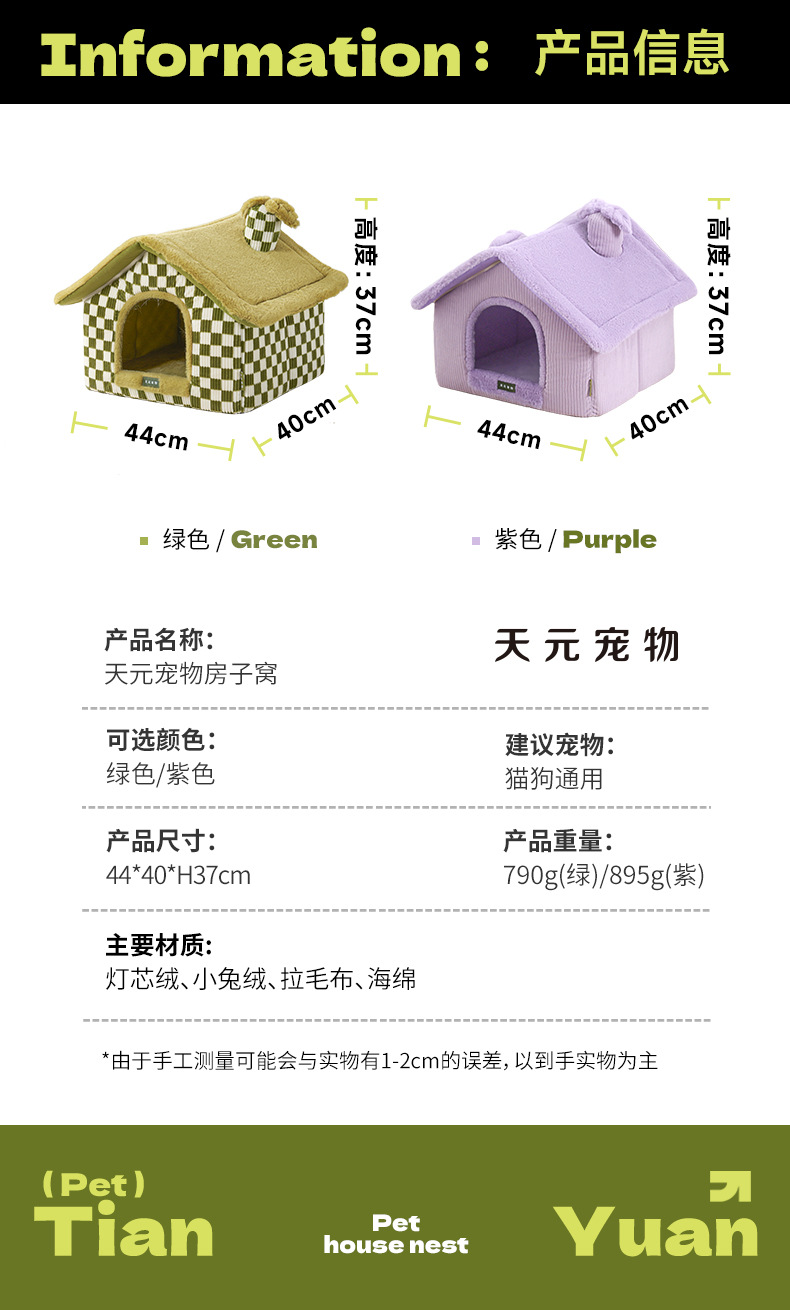 천원 애완동물 집 고양이 둥지 겨울 따뜻하고 안전한 밀폐형 개집 초대형 고양이 침대 수면용