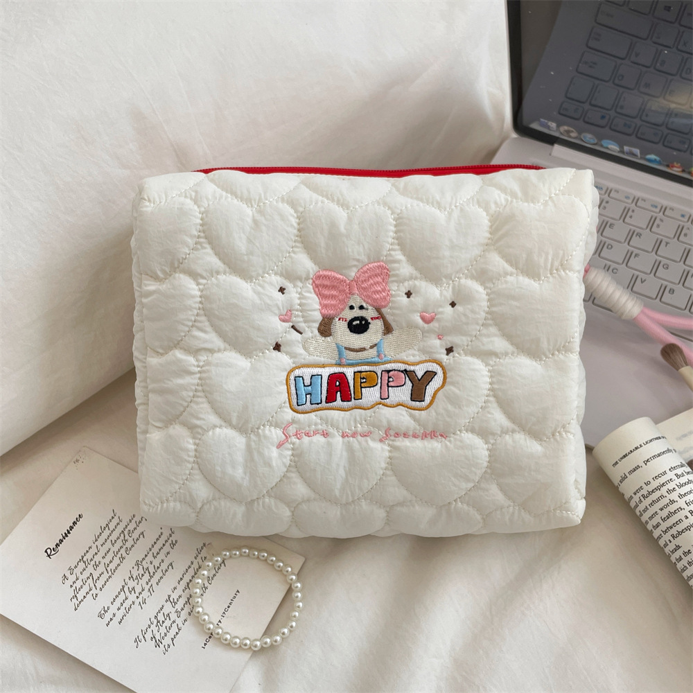 49211 귀여운 개 화장품 가방 새로운 자수 만화 저장 가방 적합 가방 손 가방 쇼핑 손 가방