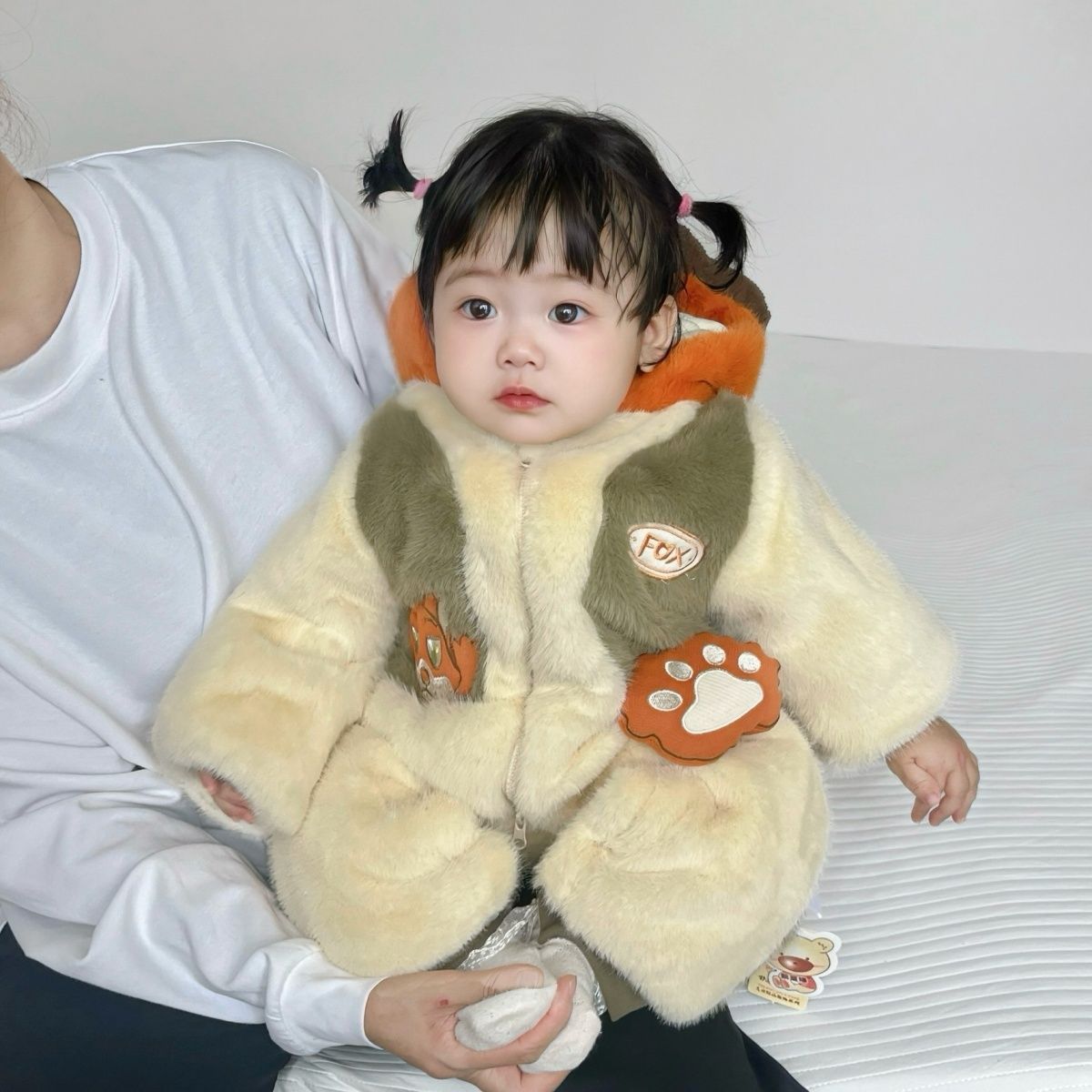 아기 폭스 만화 슈퍼 귀여운 따뜻한 외국 스타일 3 층 두꺼운 가을과 겨울 스타일 오버슈트 모자 유행 외투