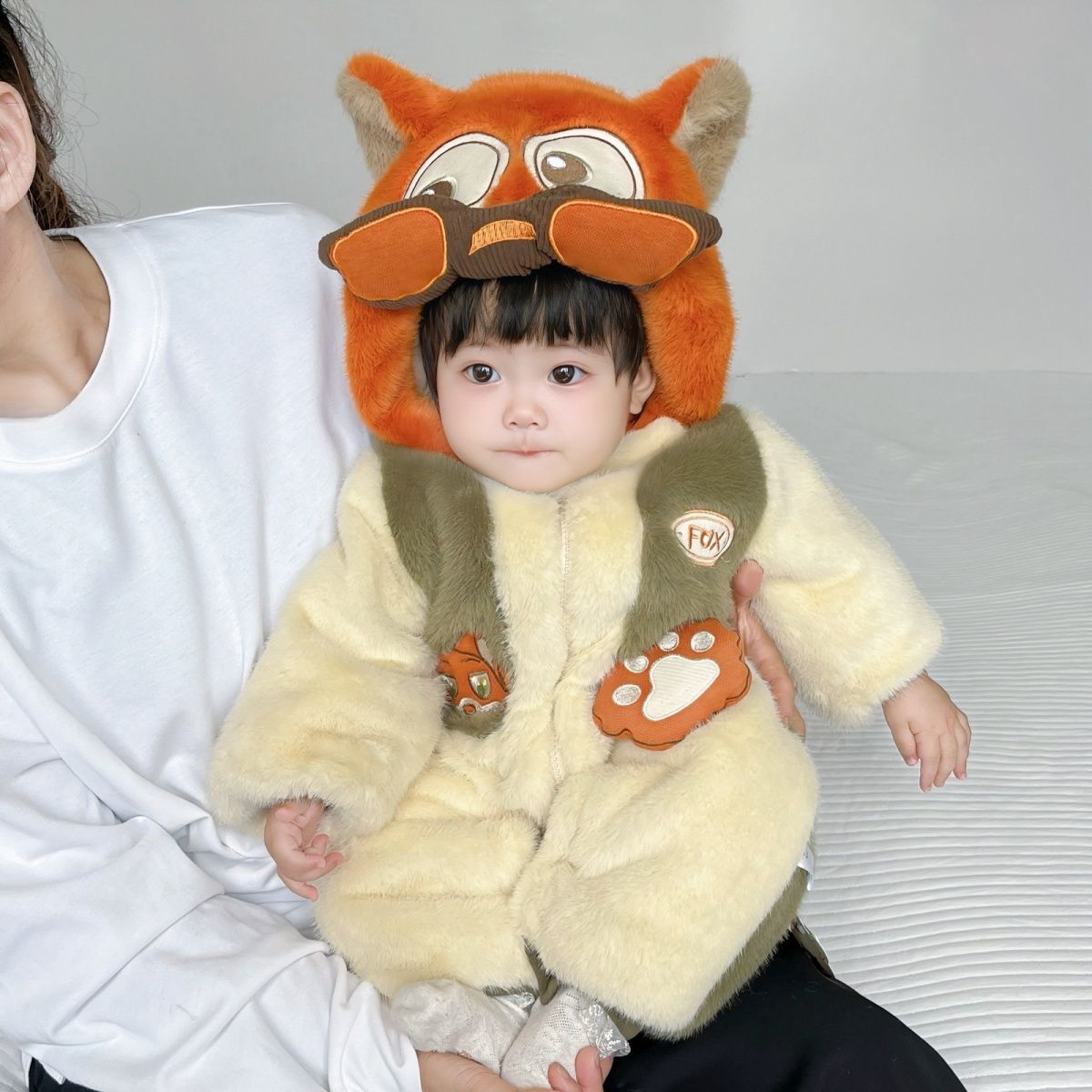 아기 폭스 만화 슈퍼 귀여운 따뜻한 외국 스타일 3 층 두꺼운 가을과 겨울 스타일 오버슈트 모자 유행 외투스토어 가기