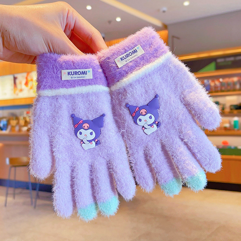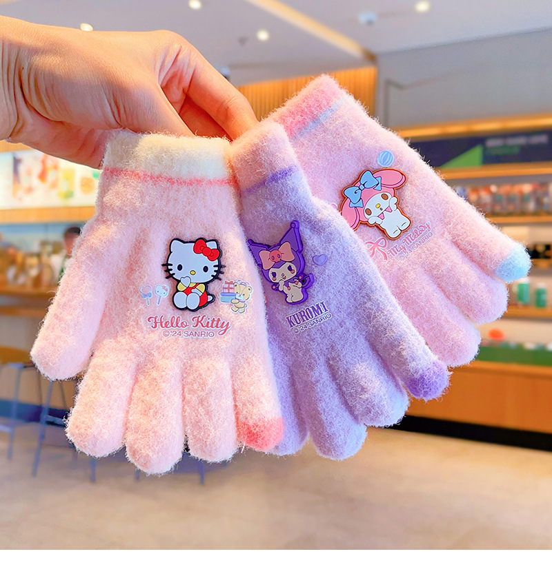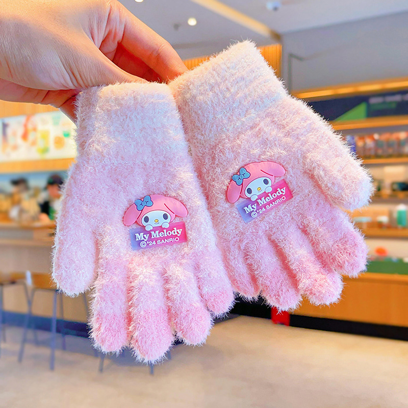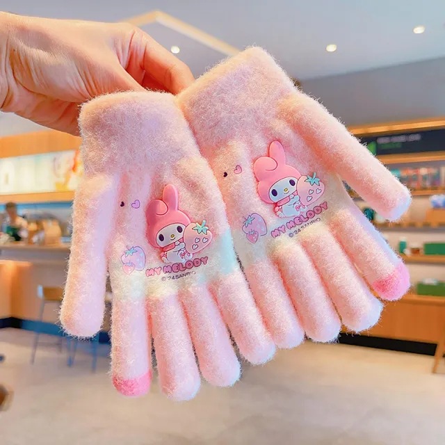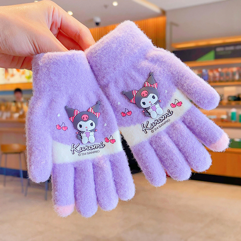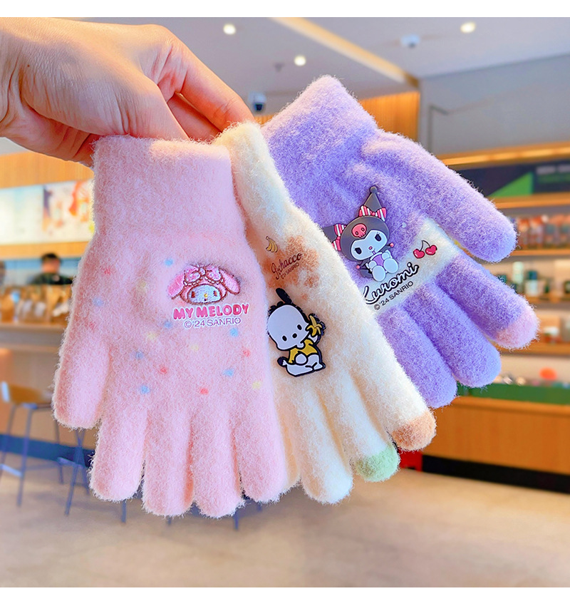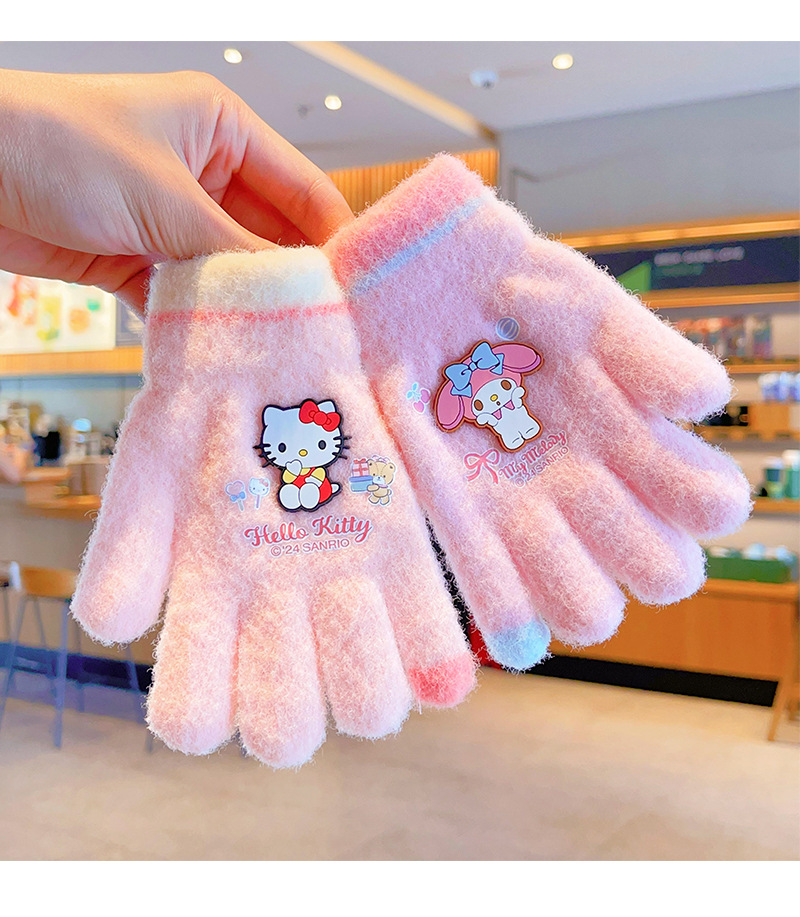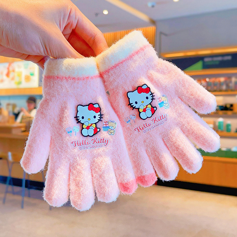 산리오 어린이 장갑 냉장 따뜻한 보관 두꺼운 귀여운 만화 다섯 손가락 야외 아기 봉제 소년 소녀를위한 니트스토어 가기