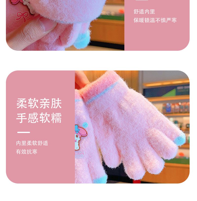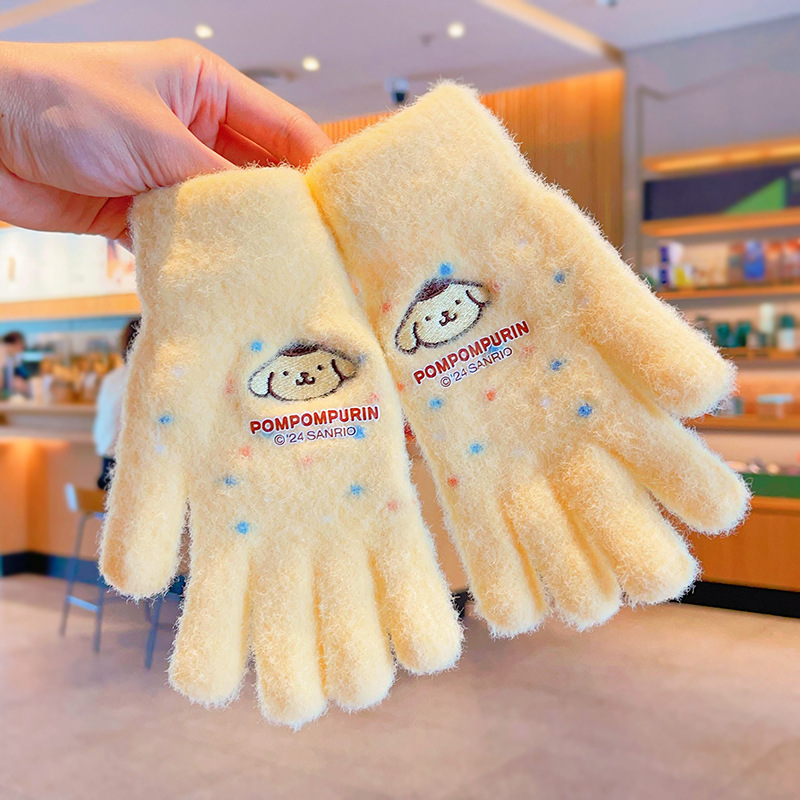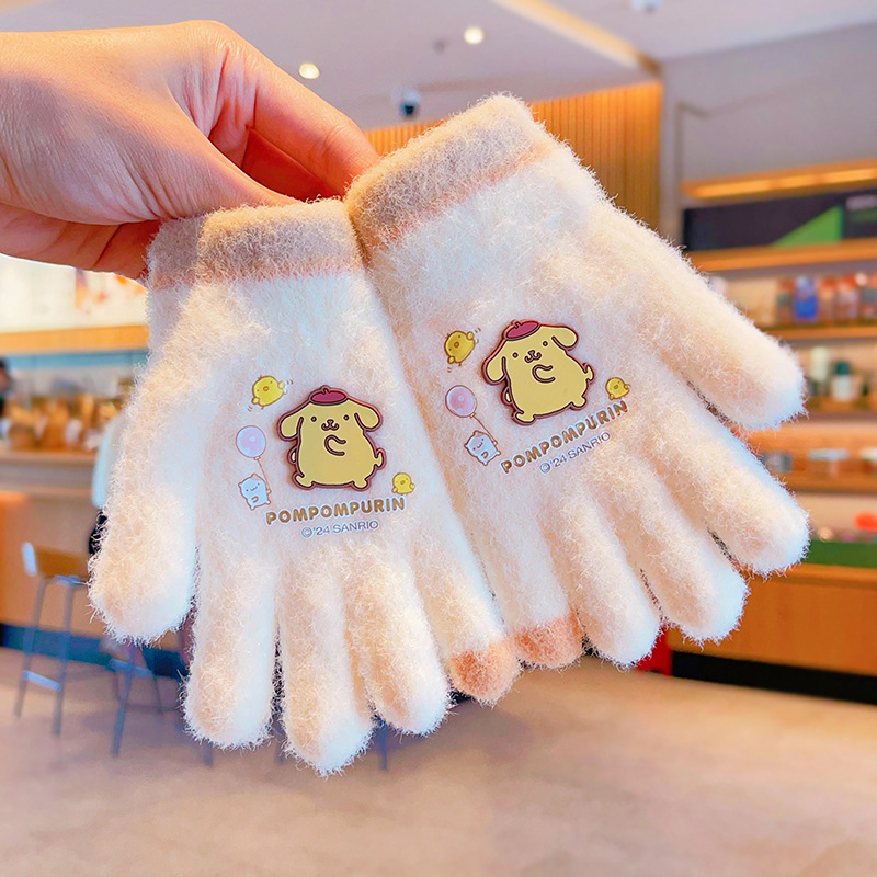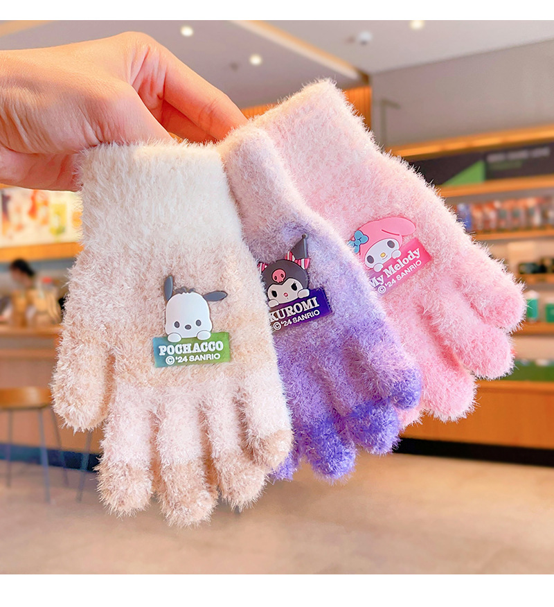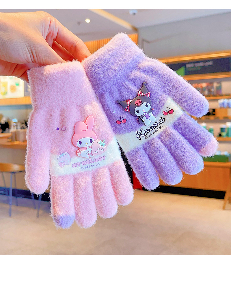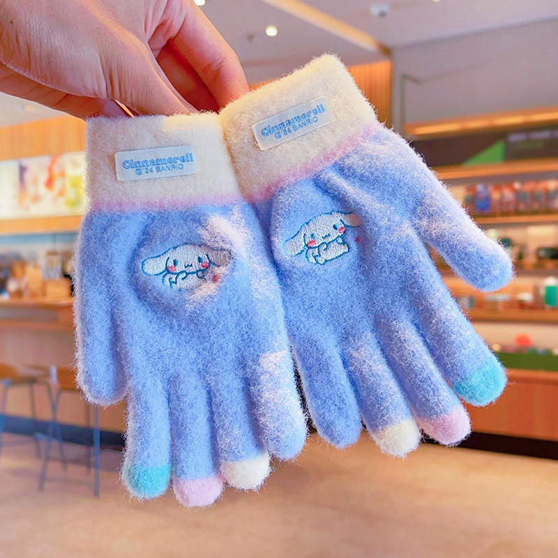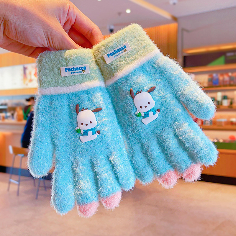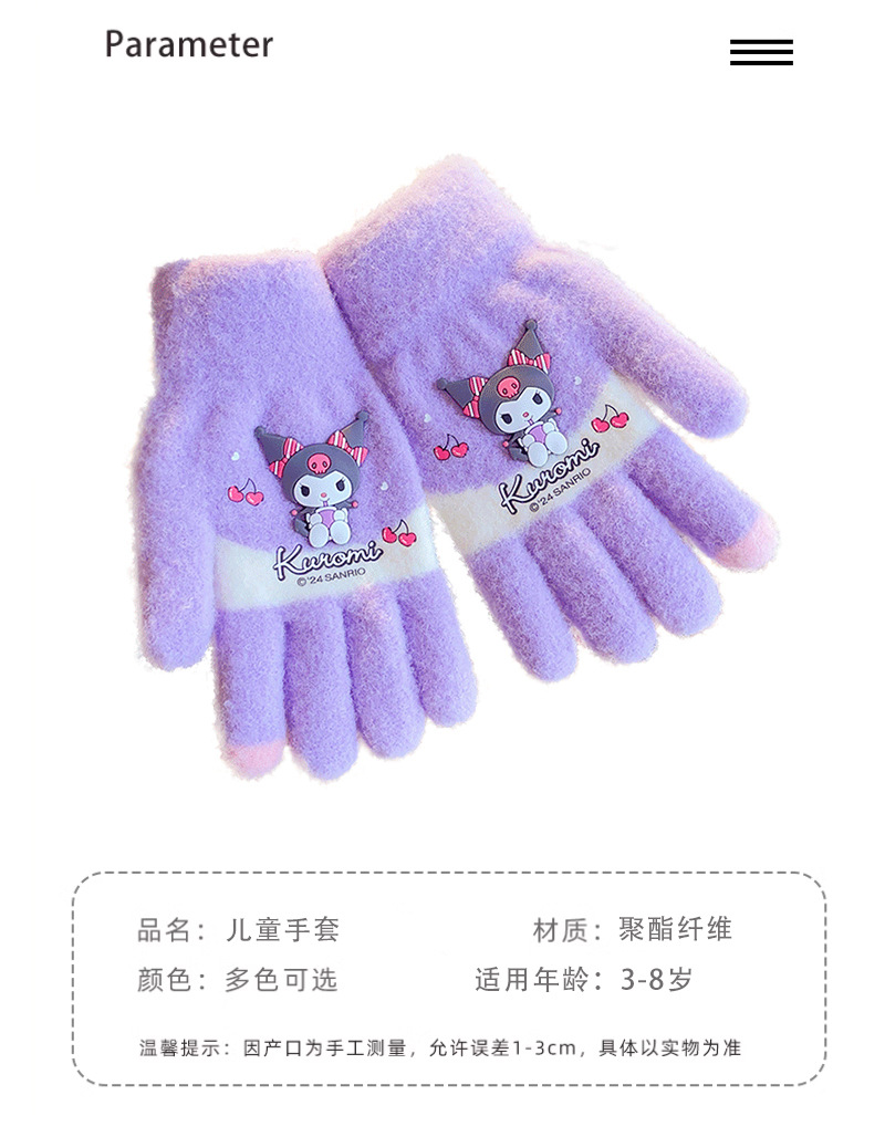산리오 어린이 장갑 냉장 따뜻한 보관 두꺼운 귀여운 만화 다섯 손가락 야외 아기 봉제 소년 소녀를위한 니트스토어 가기