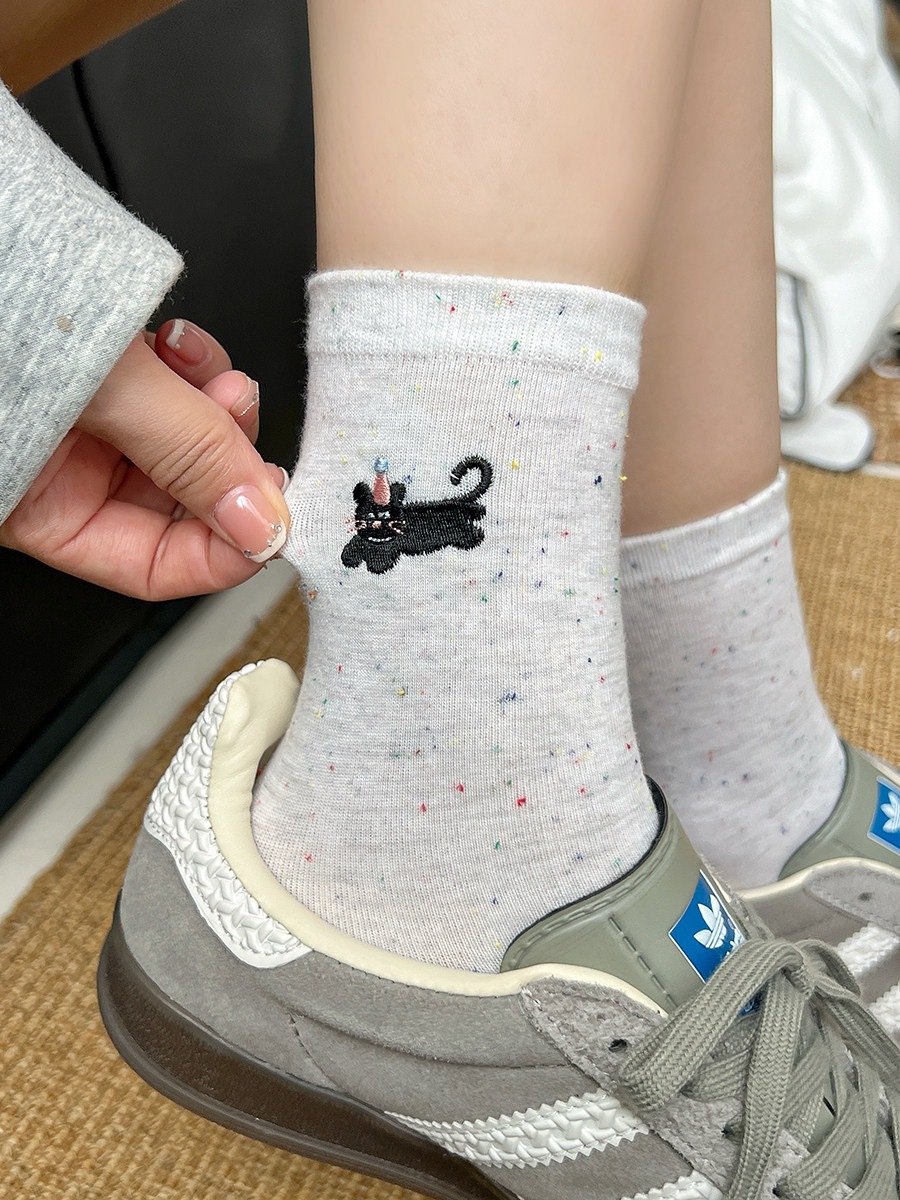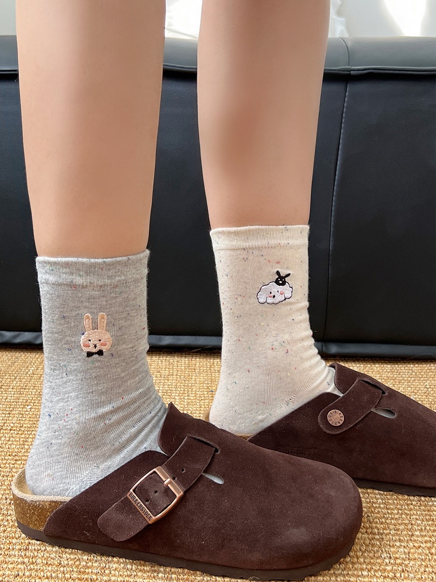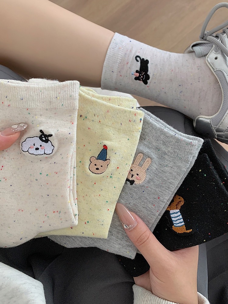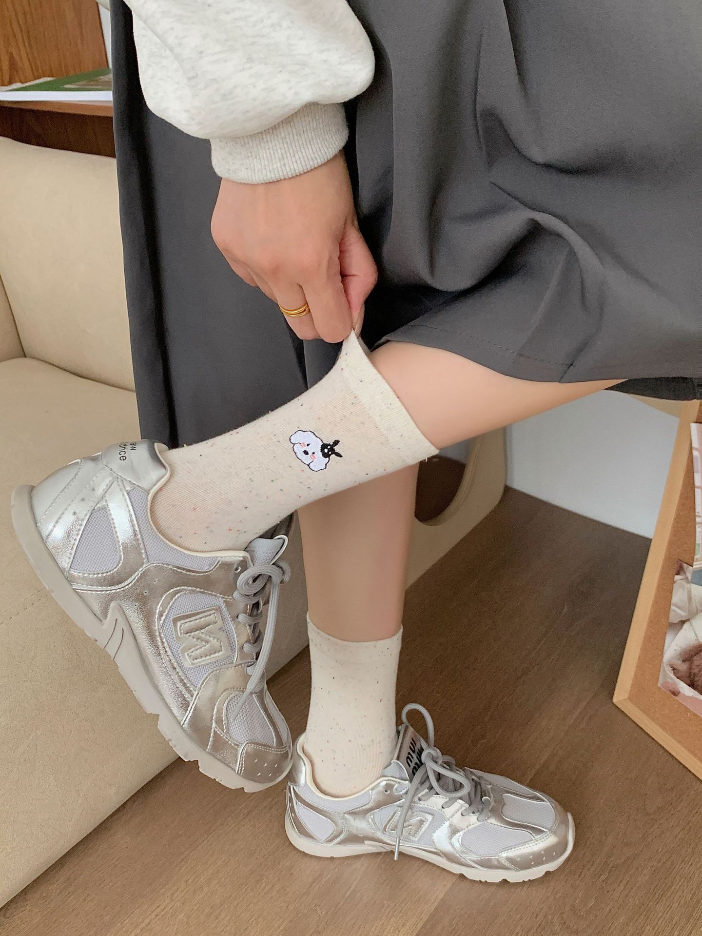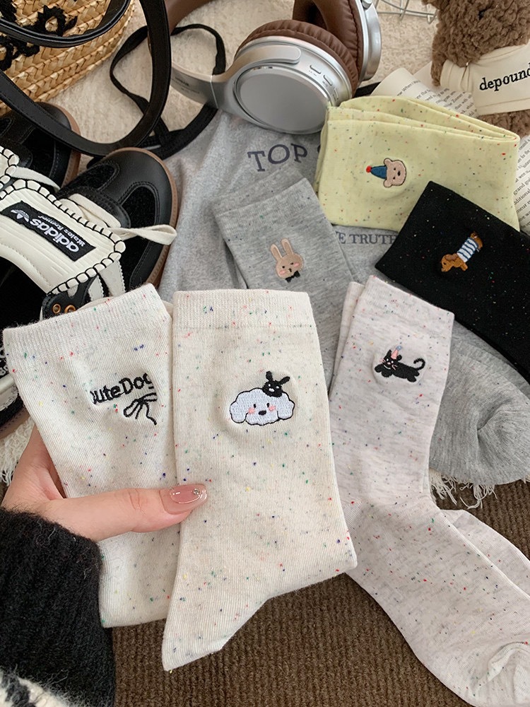 도트 원사 그레이 양말 여성 중간 길이 양말 봄과 가을 새로운 도착 만화 자수 일본 스타일 귀여운 가을과 겨울 포장 스타킹 스타킹스토어 가기