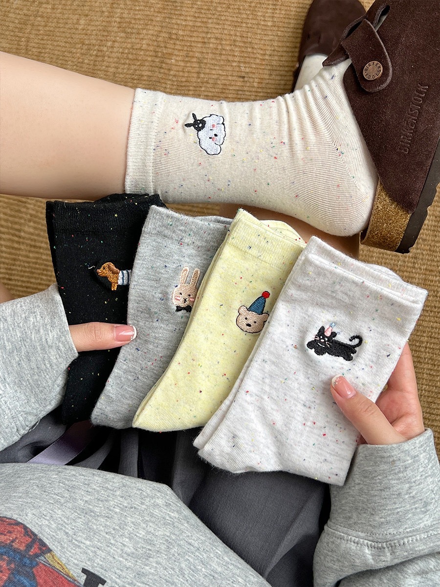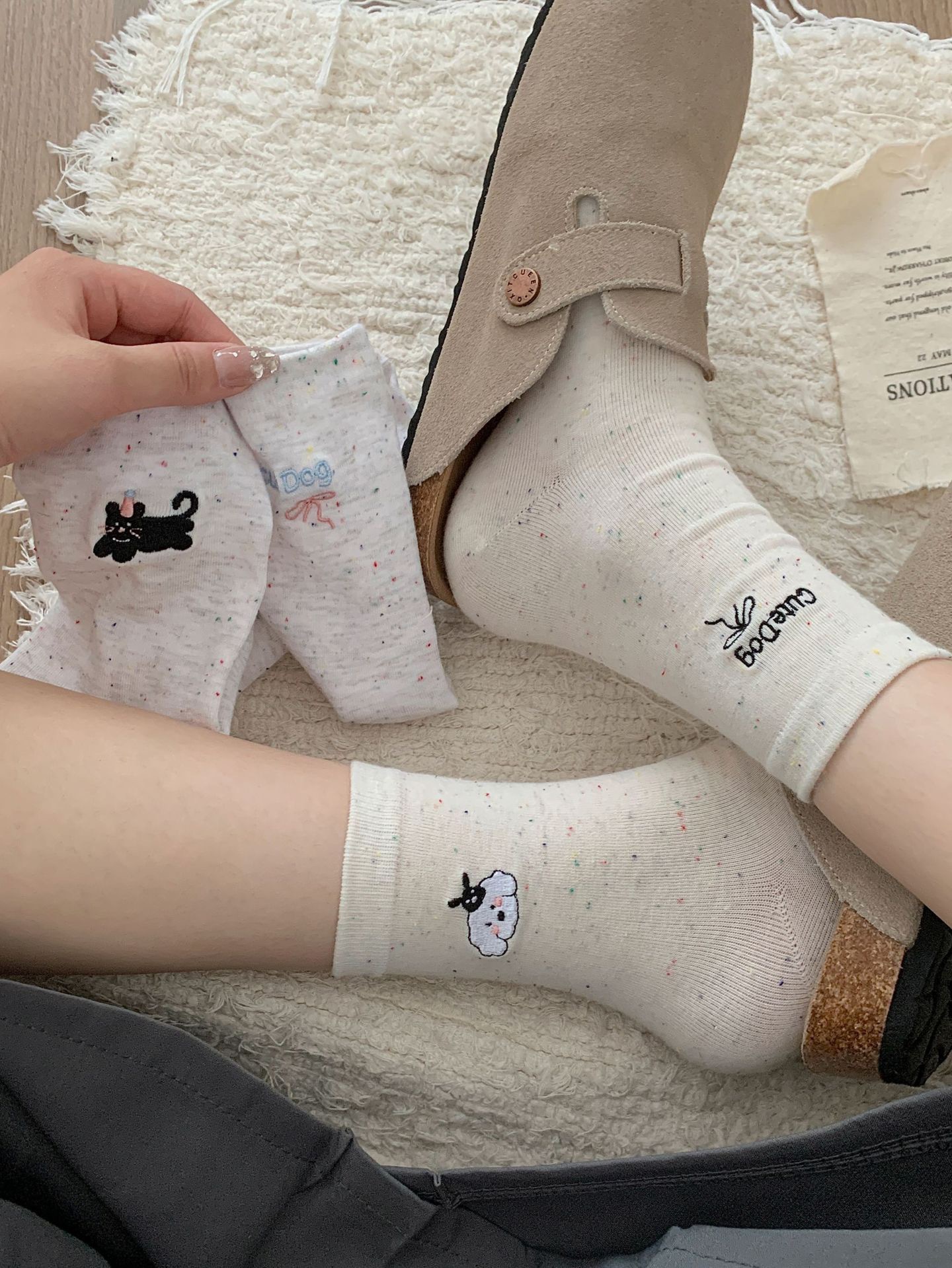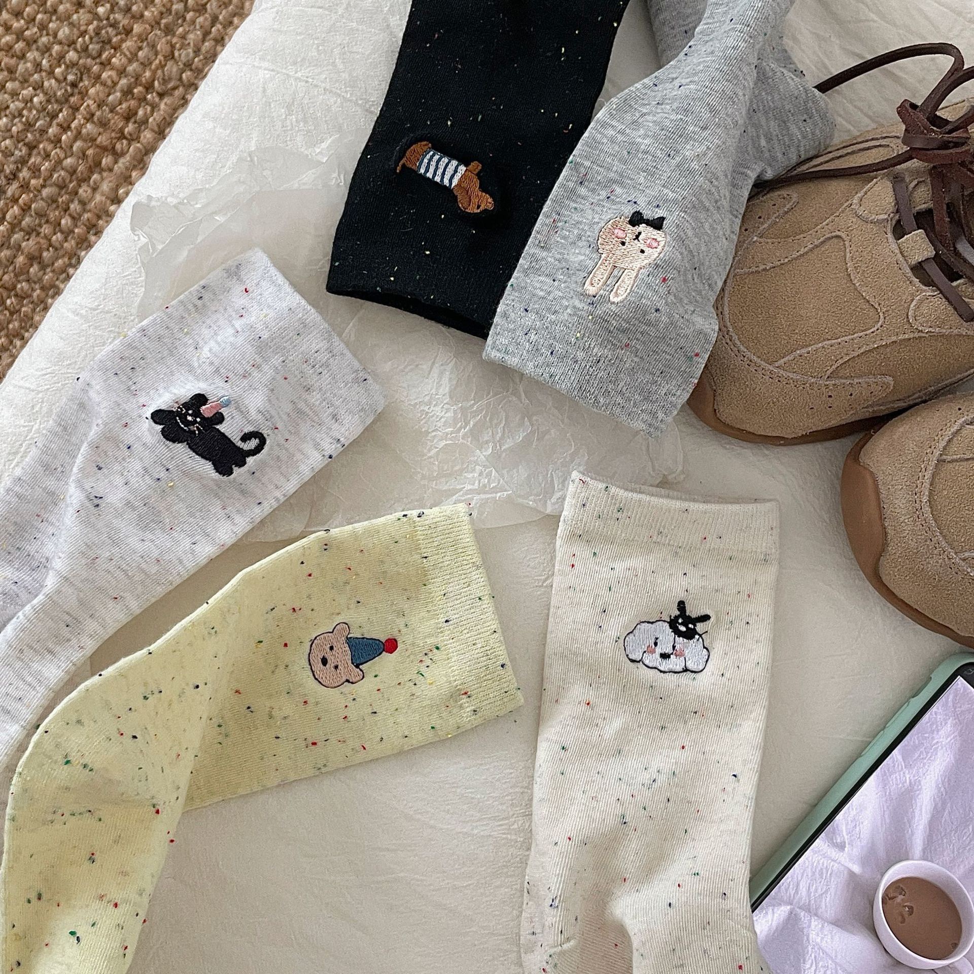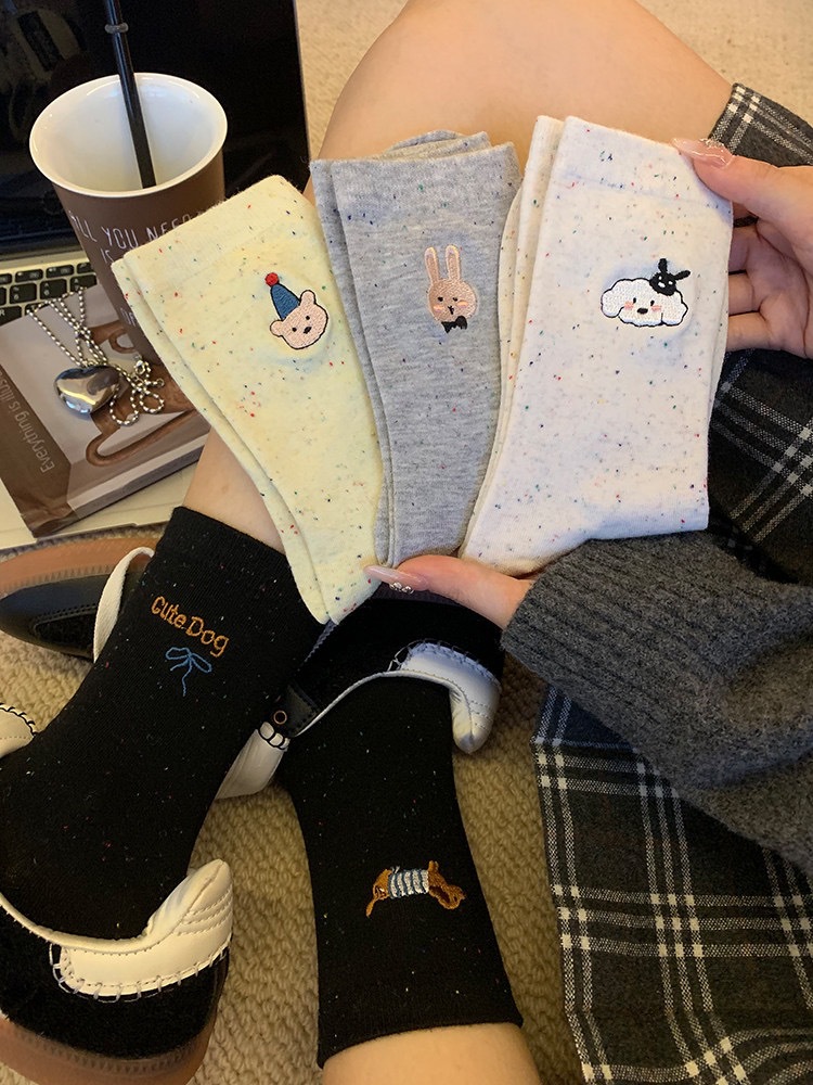 도트 원사 그레이 양말 여성 중간 길이 양말 봄과 가을 새로운 도착 만화 자수 일본 스타일 귀여운 가을과 겨울 포장 스타킹 스타킹스토어 가기