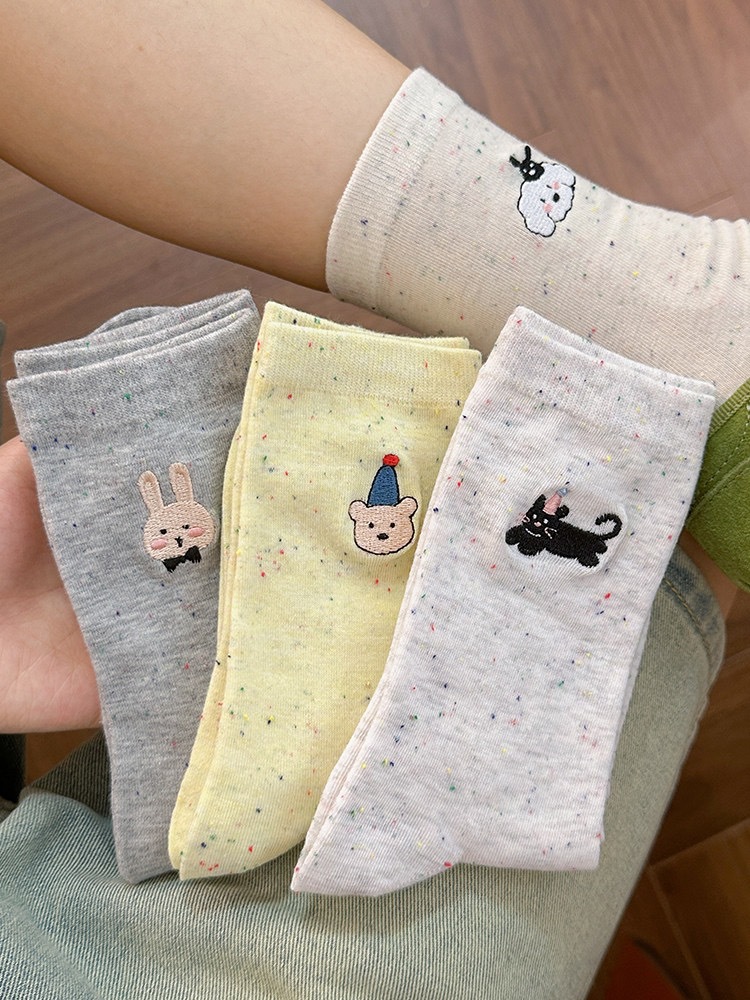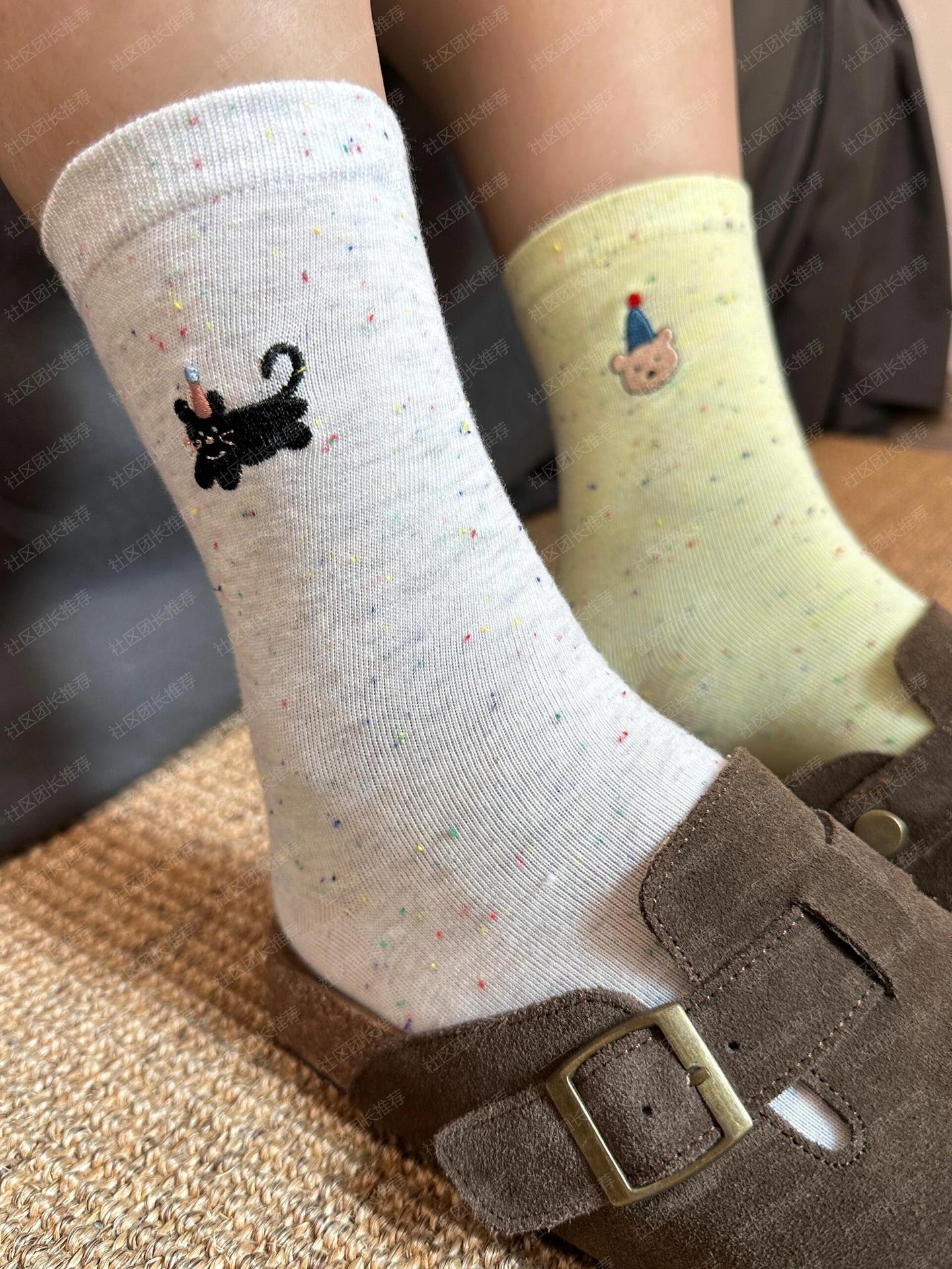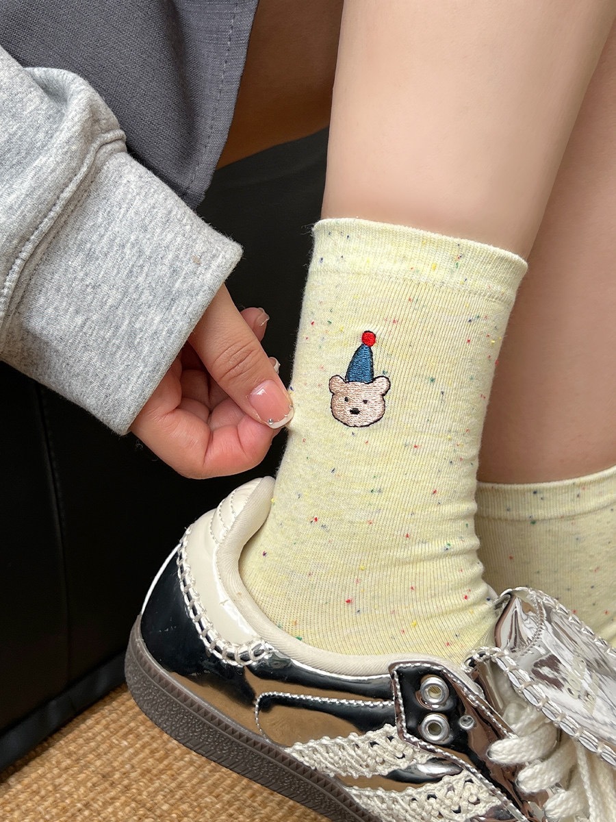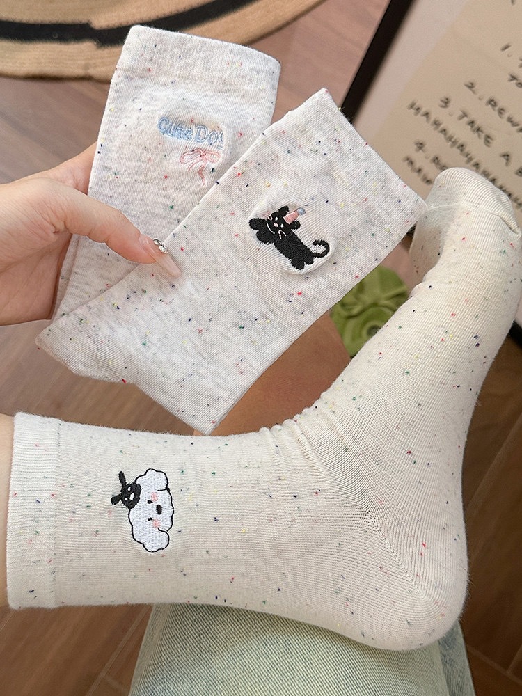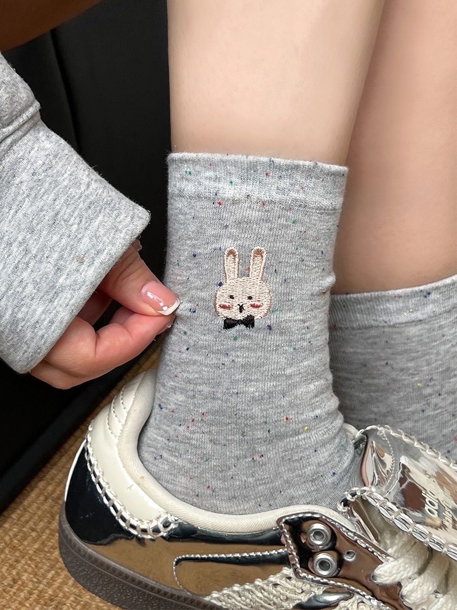 도트 원사 그레이 양말 여성 중간 길이 양말 봄과 가을 새로운 도착 만화 자수 일본 스타일 귀여운 가을과 겨울 포장 스타킹 스타킹스토어 가기