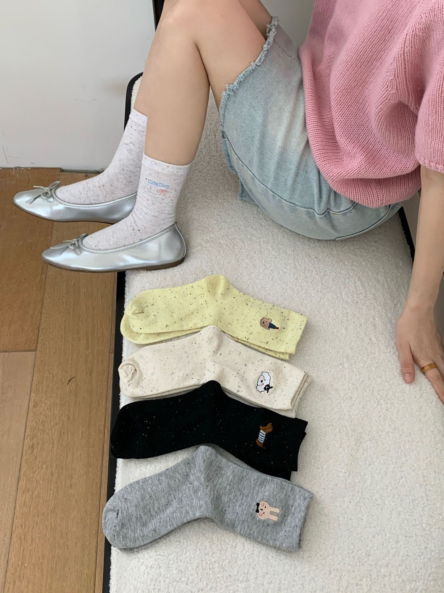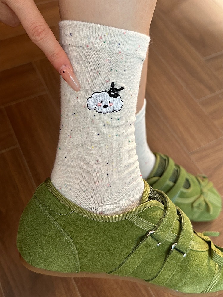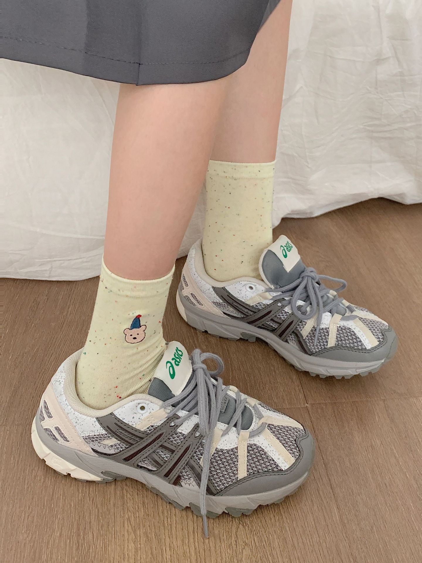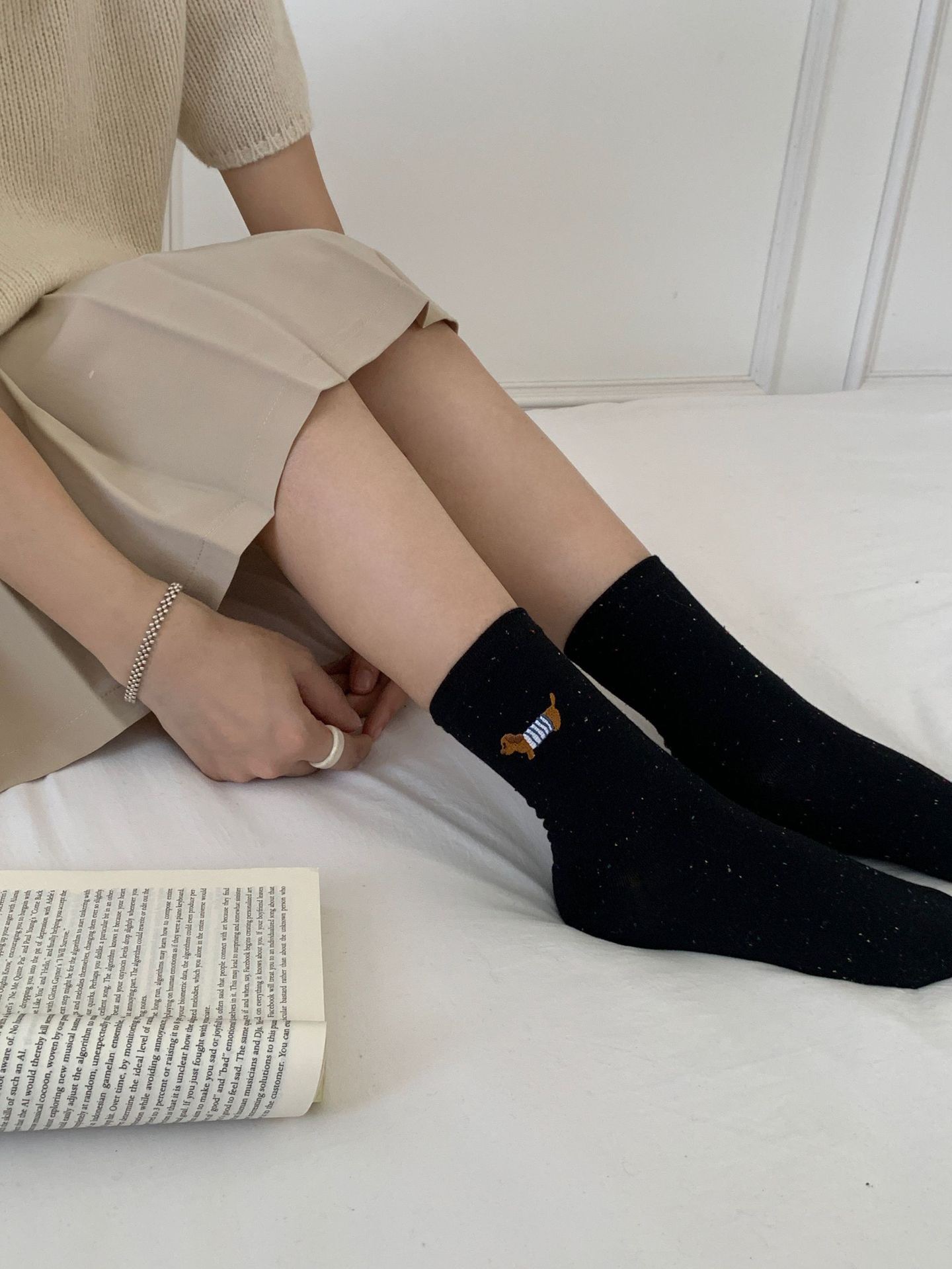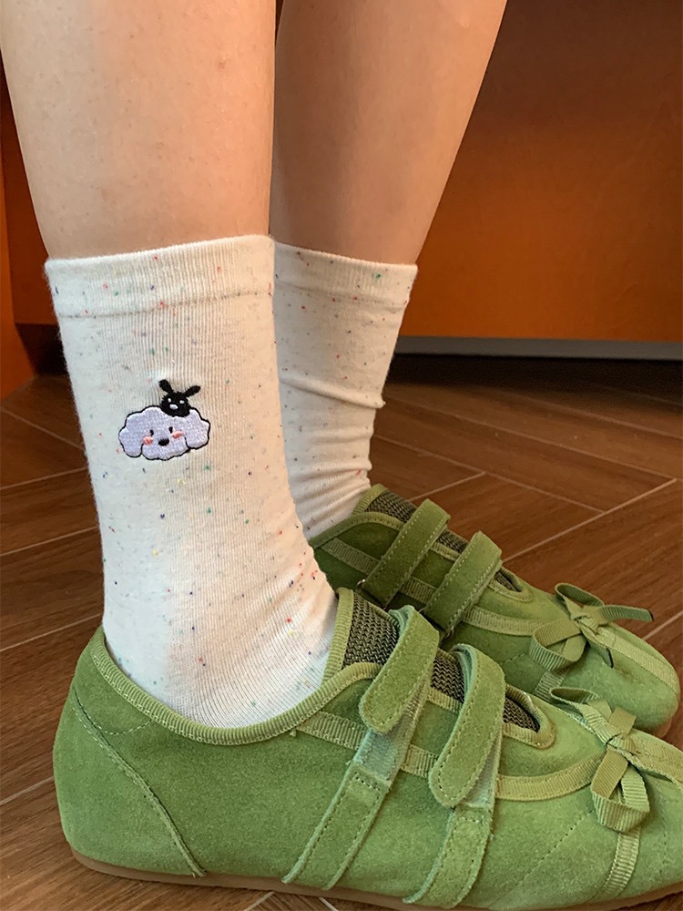 도트 원사 그레이 양말 여성 중간 길이 양말 봄과 가을 새로운 도착 만화 자수 일본 스타일 귀여운 가을과 겨울 포장 스타킹 스타킹스토어 가기