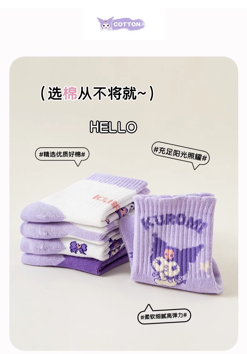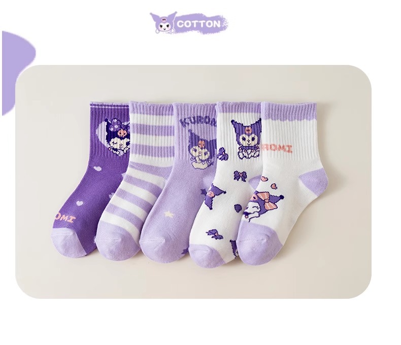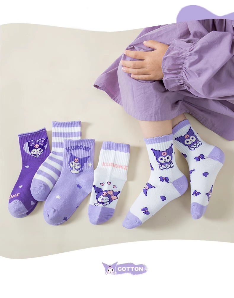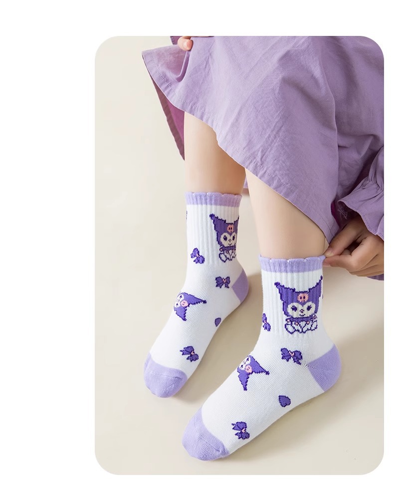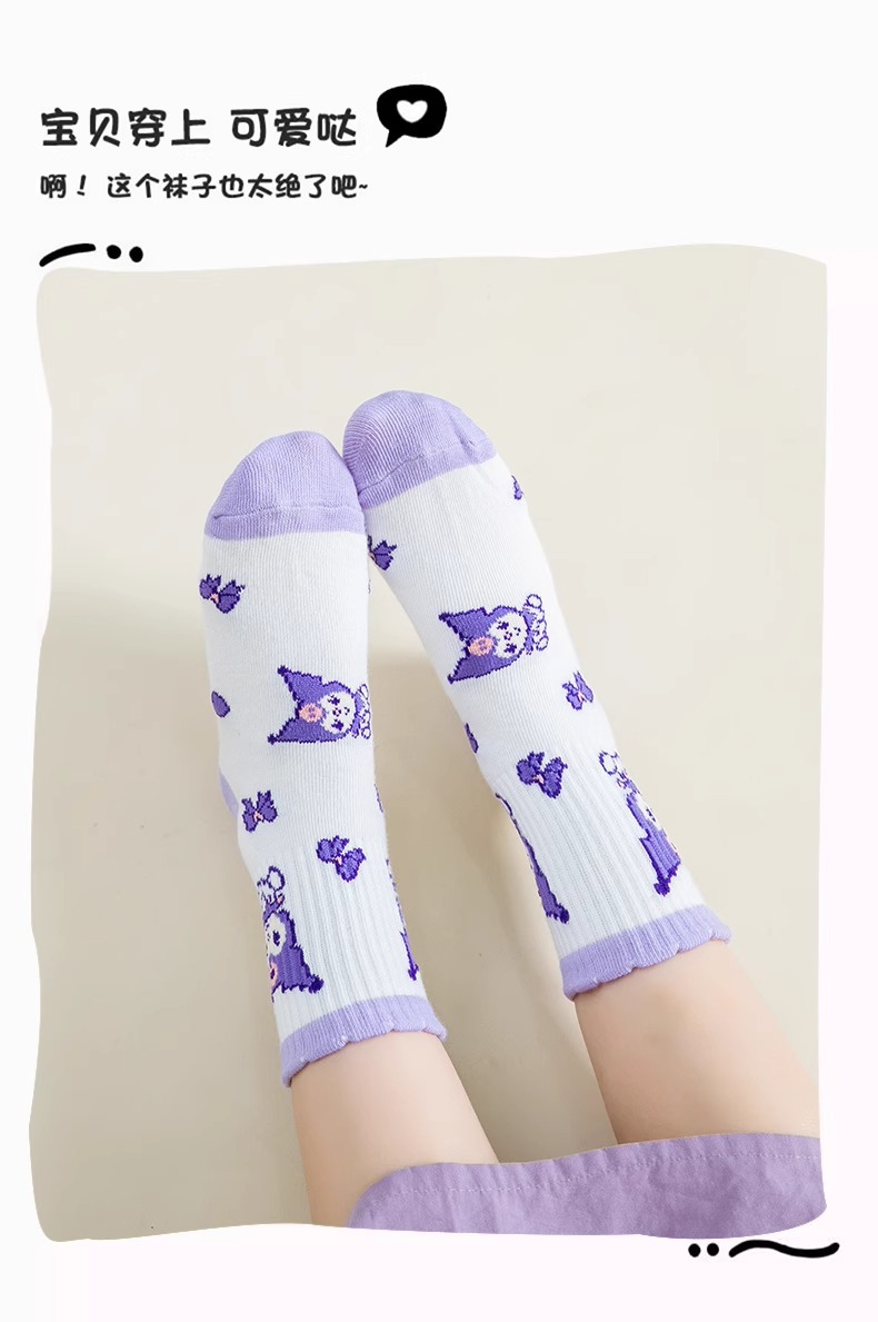 • 보라색과 흰색 종아리 중간 아동용 양말