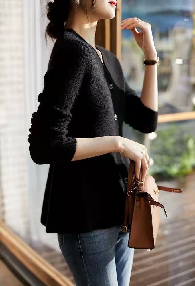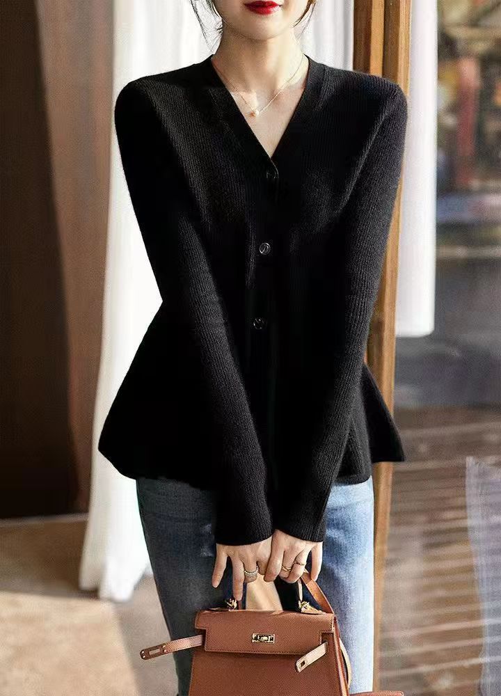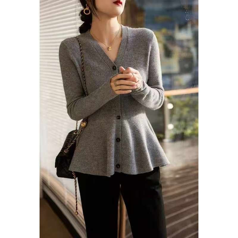 디자인된 물고기 꼬리 허리 슬리밍 스웨터 여성 25 가을 겨울 신작 브이넥 다용도 스웨터 가디건 탑