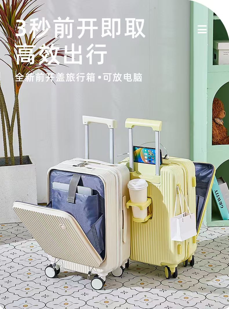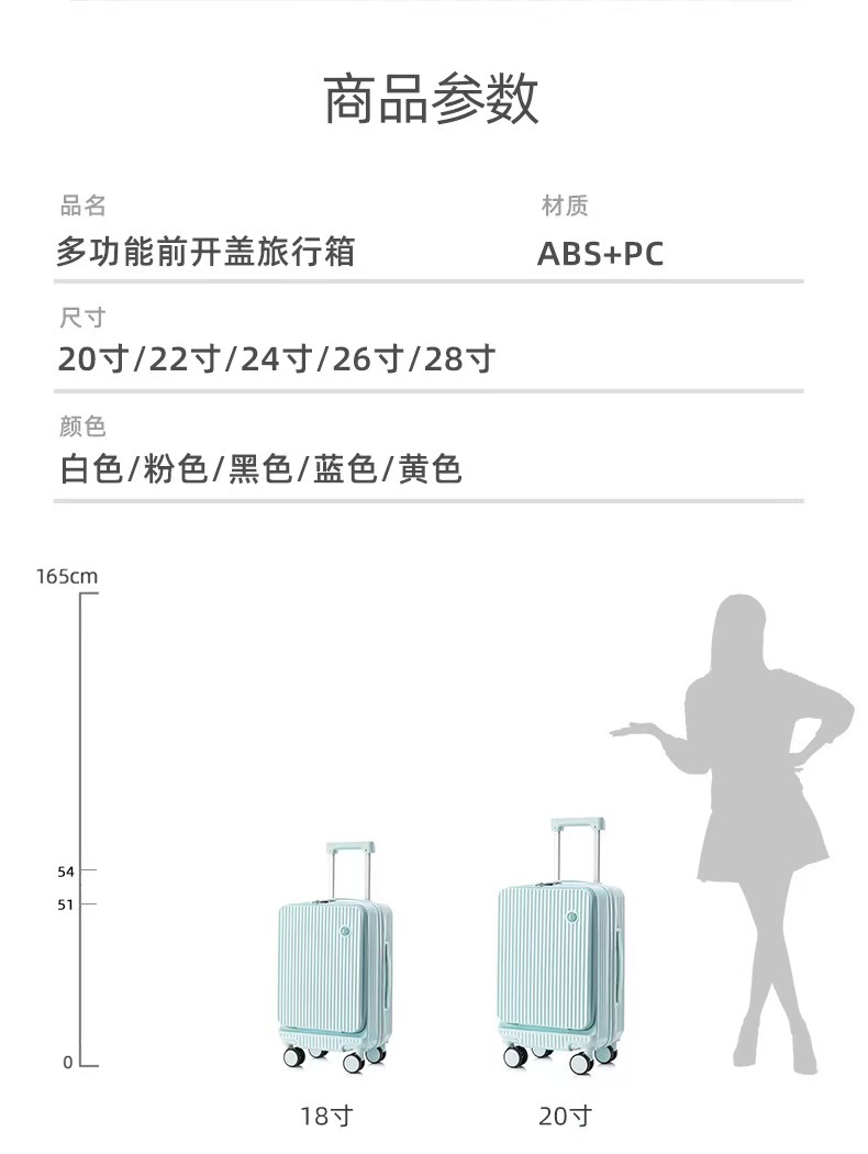 전면 개방 수하물 상자 여성의 탑승 상자 18 인치 소형 트롤리 케이스 강력하고 내구성있는 암호 상자 남성 여행 상자스토어 가기