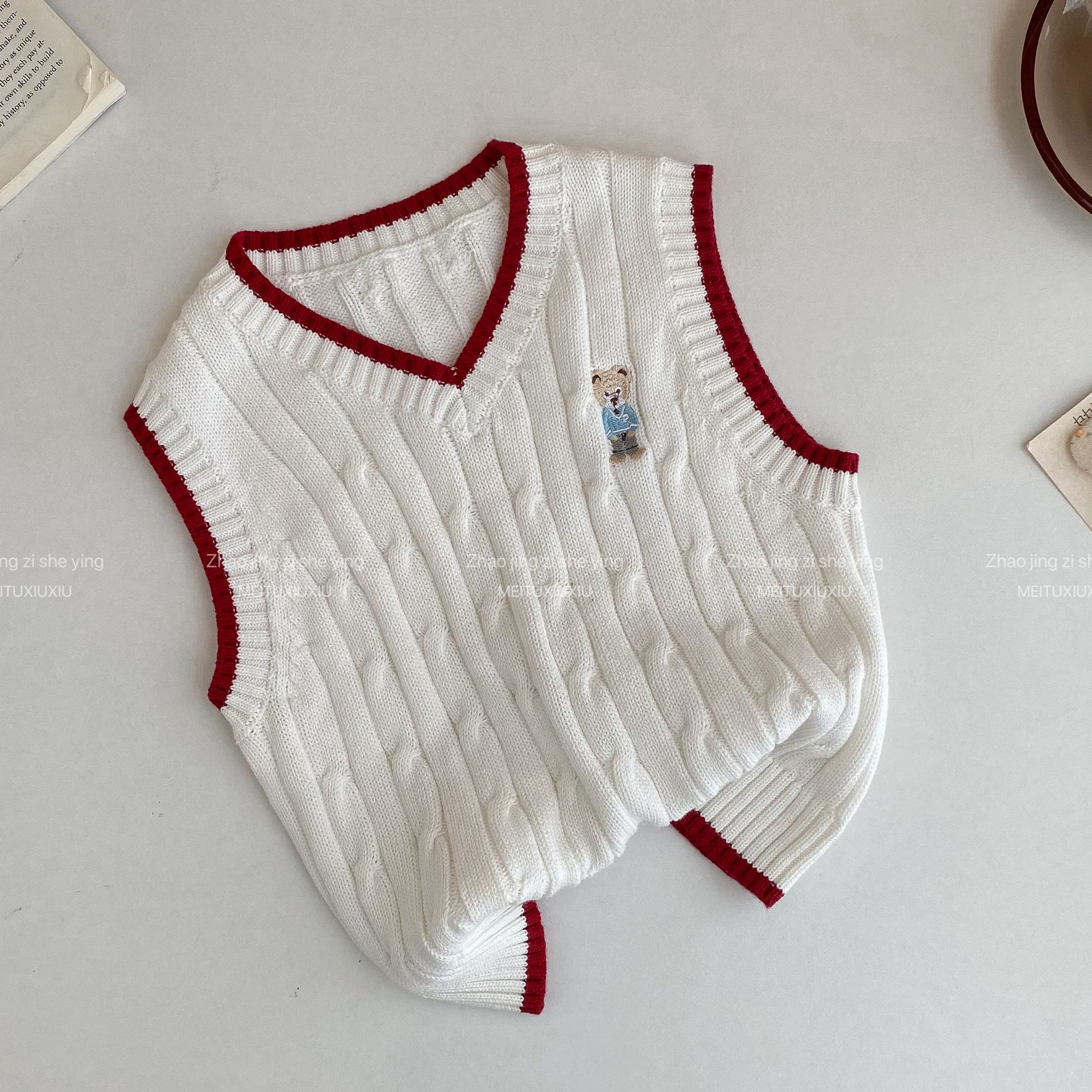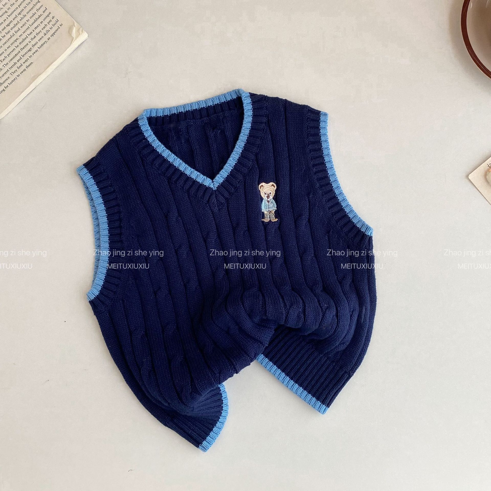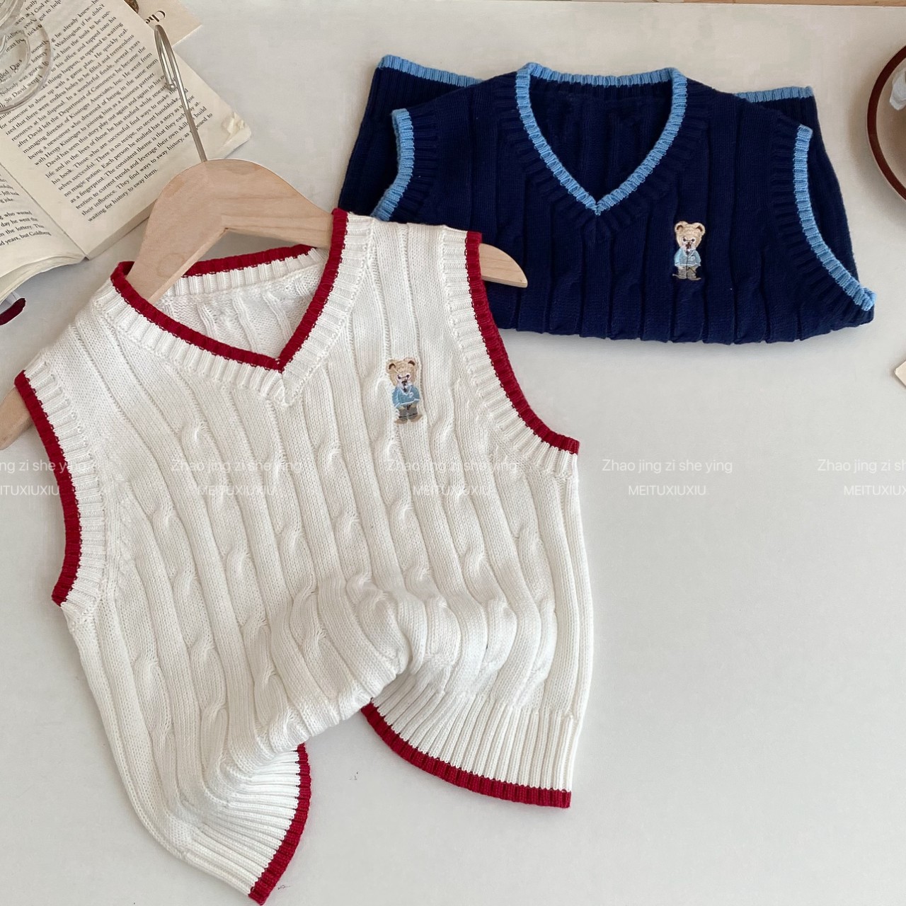 아동복 스웨터 2024 가을과 겨울 새로운 만화 곰 아동복 새로운 소년과 소녀 조끼 작은 대학 스타일 조끼스토어 가기
