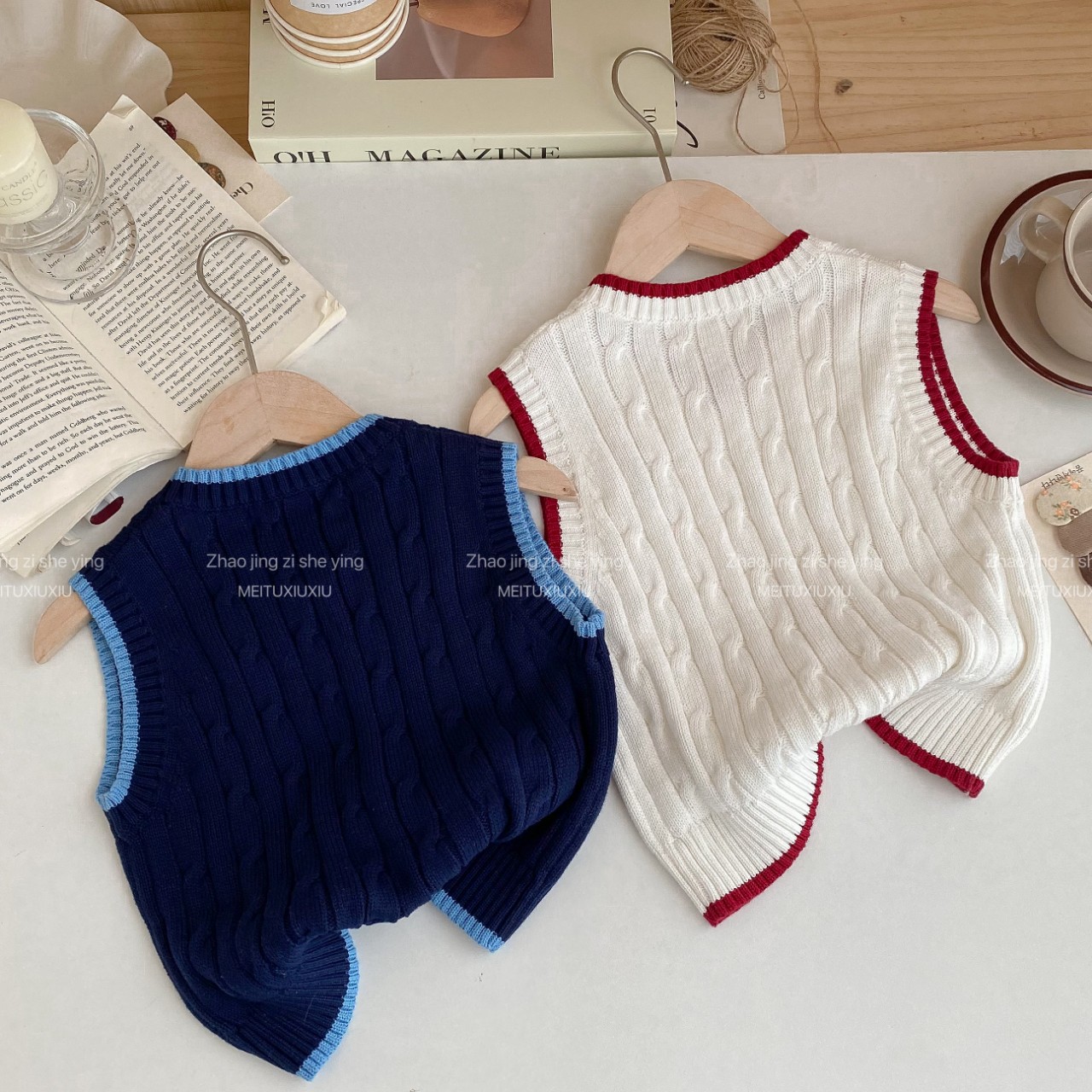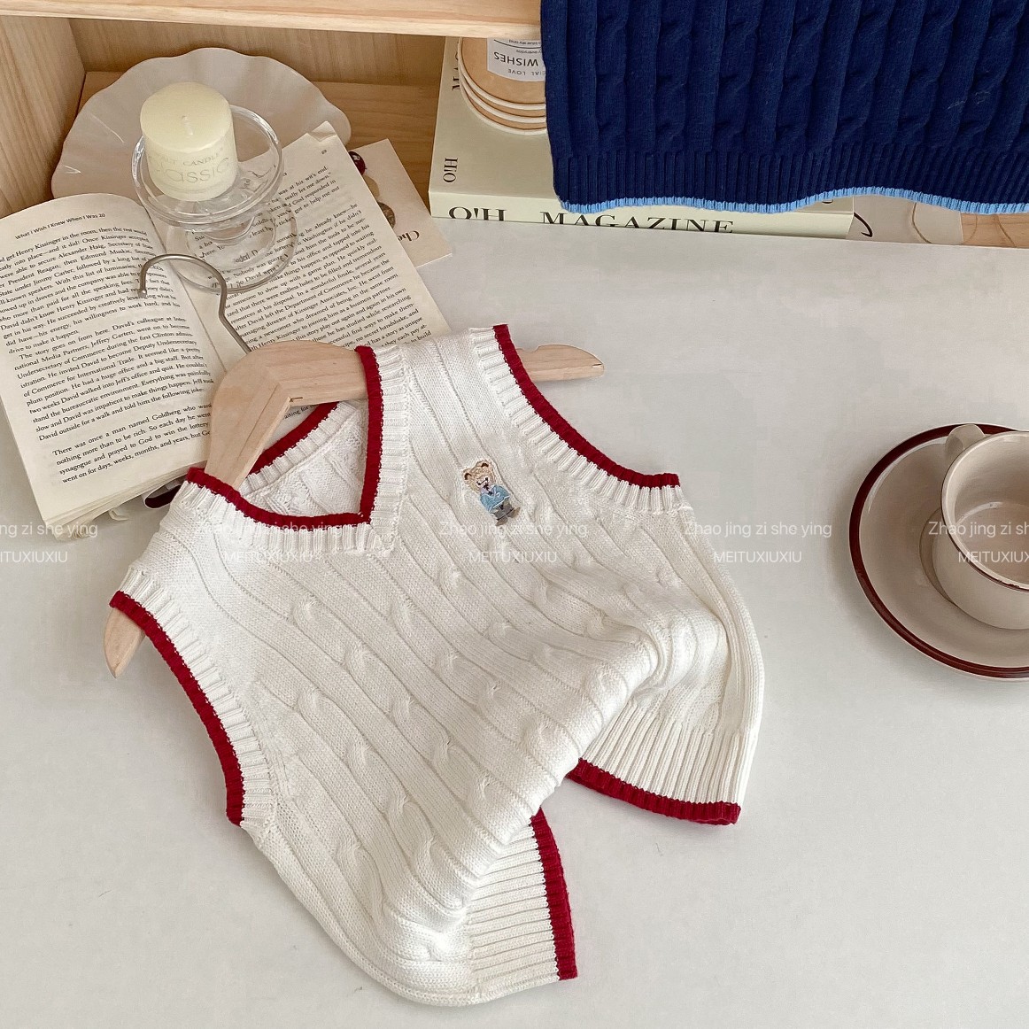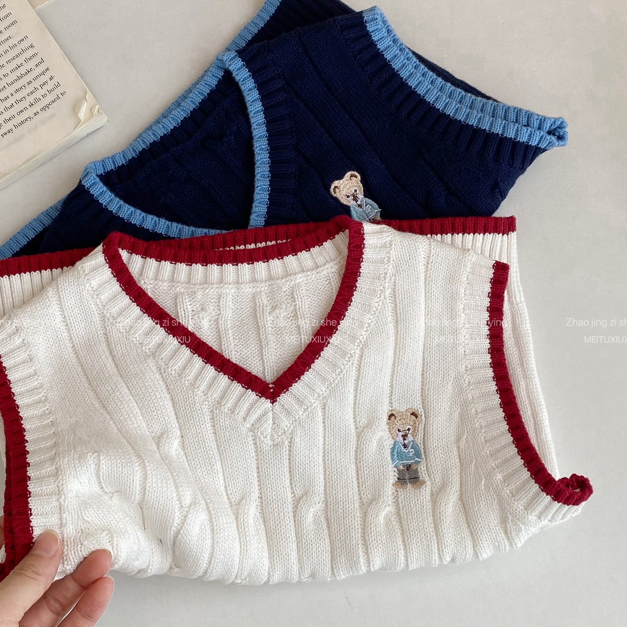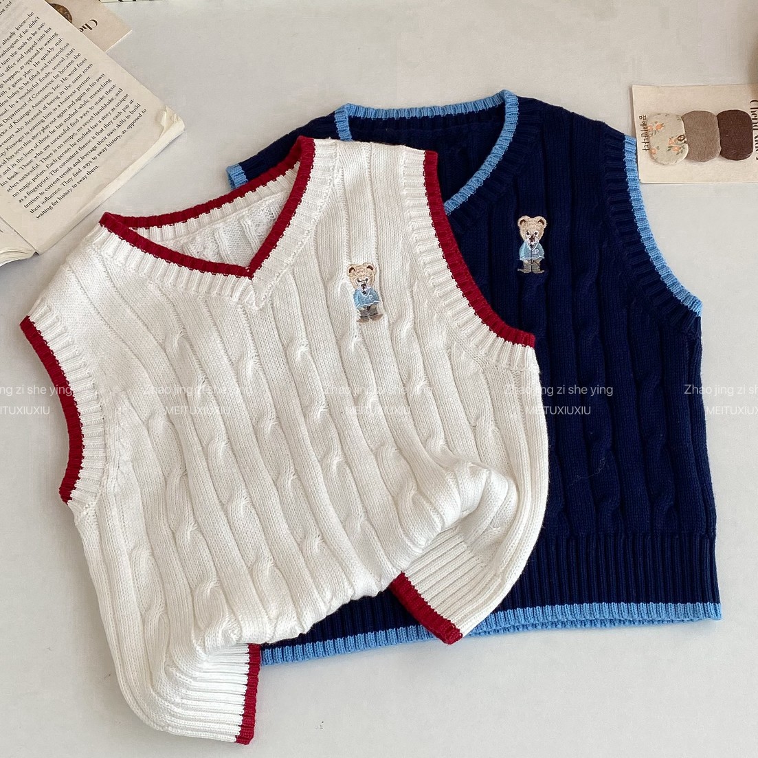 아동복 스웨터 2024 가을과 겨울 새로운 만화 곰 아동복 새로운 소년과 소녀 조끼 작은 대학 스타일 조끼스토어 가기