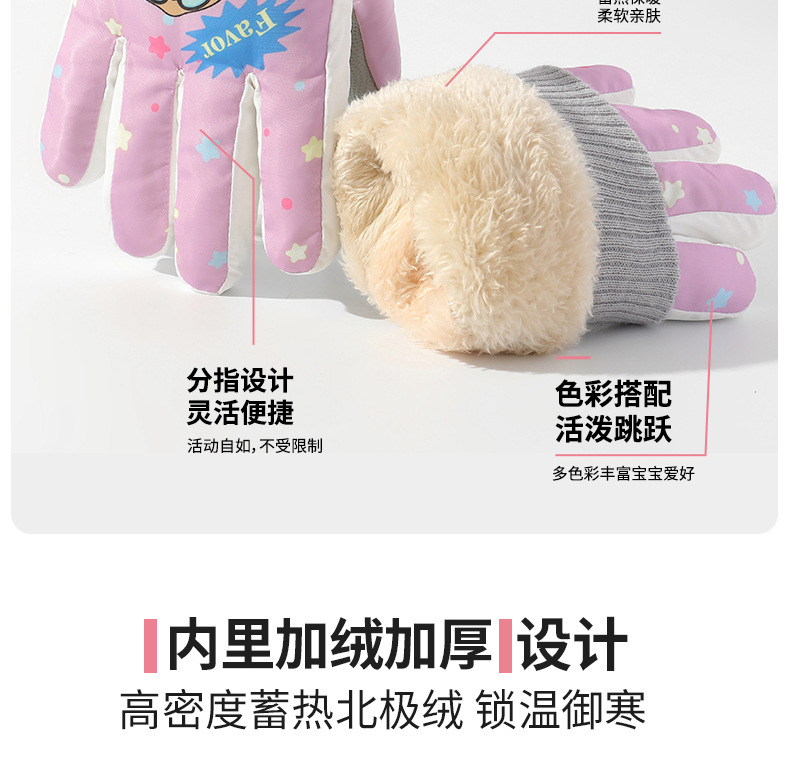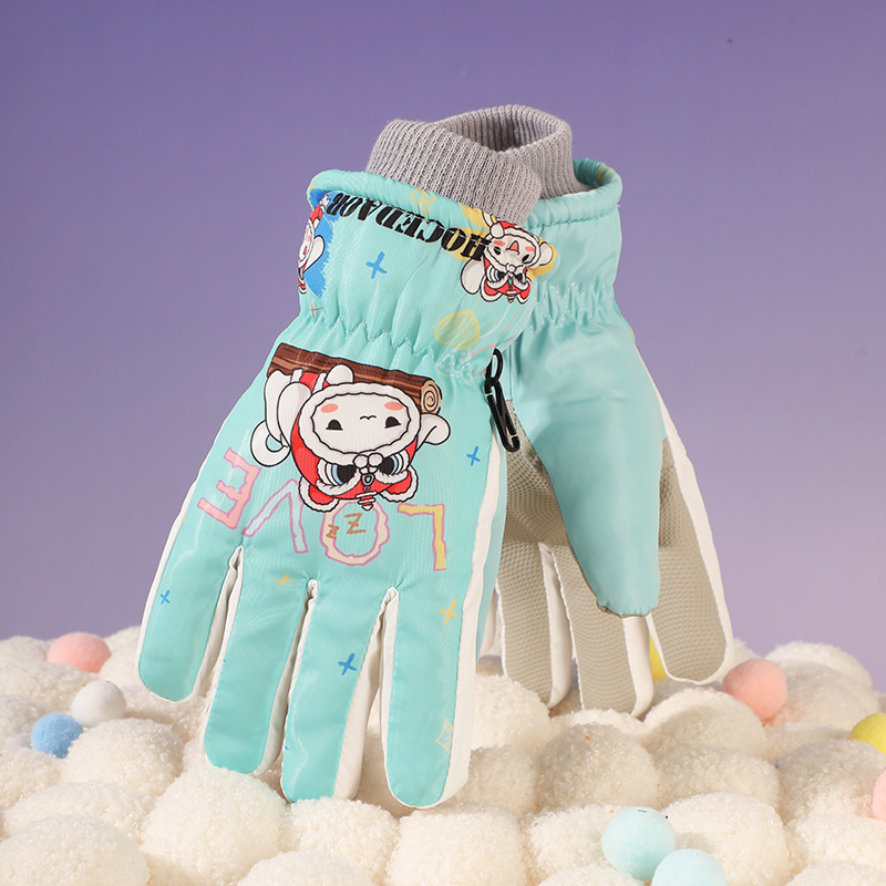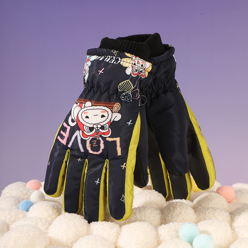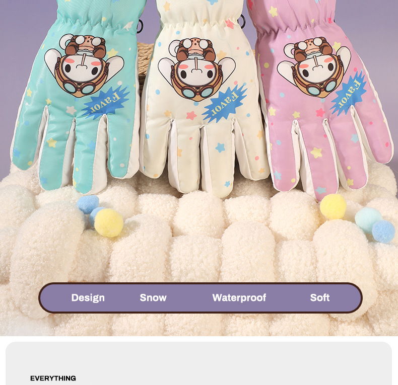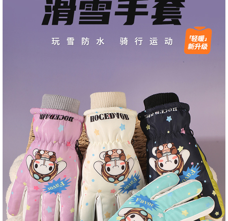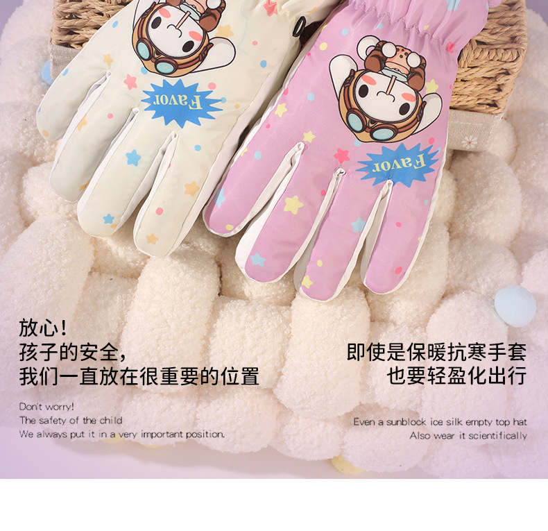 어린이 겨울 장갑 새로운 야외 방수 방풍 기모 두꺼운 따뜻한 만화 남녀 스키 장갑 도매