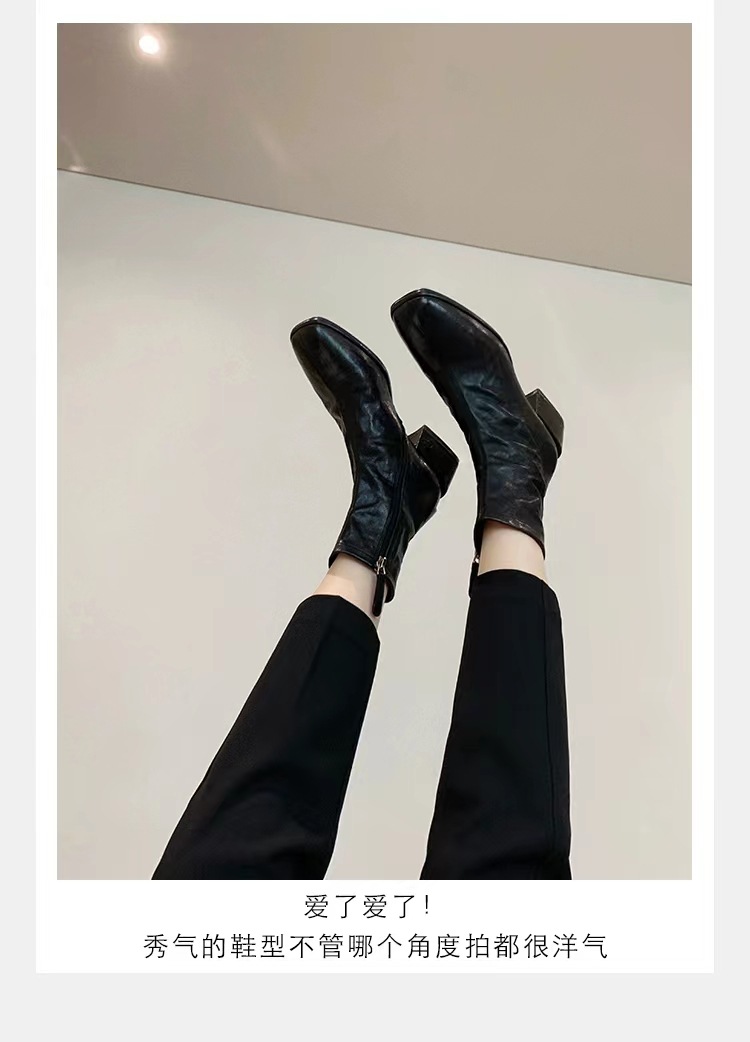 2025년 신상 한국 스타일~ 가을 겨울 신상 스퀘어토 워싱 말가죽 슬림 숏부츠 굵은 굽 마틴부츠 여성용스토어 가기