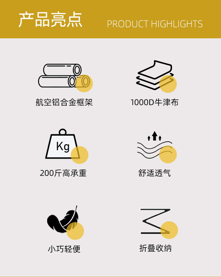 • 【편안한 스타일】 넉넉한 등받이 간이 의자 - 발 받침대 및 메시 포켓/수납 가방 포함