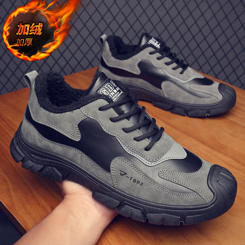 겨울 기모 노동 보험 신발 패션 작업복 신발 면 따뜻한 등산 신발 소프트 단독 통근 작업 남성 신발 크로스 테두리